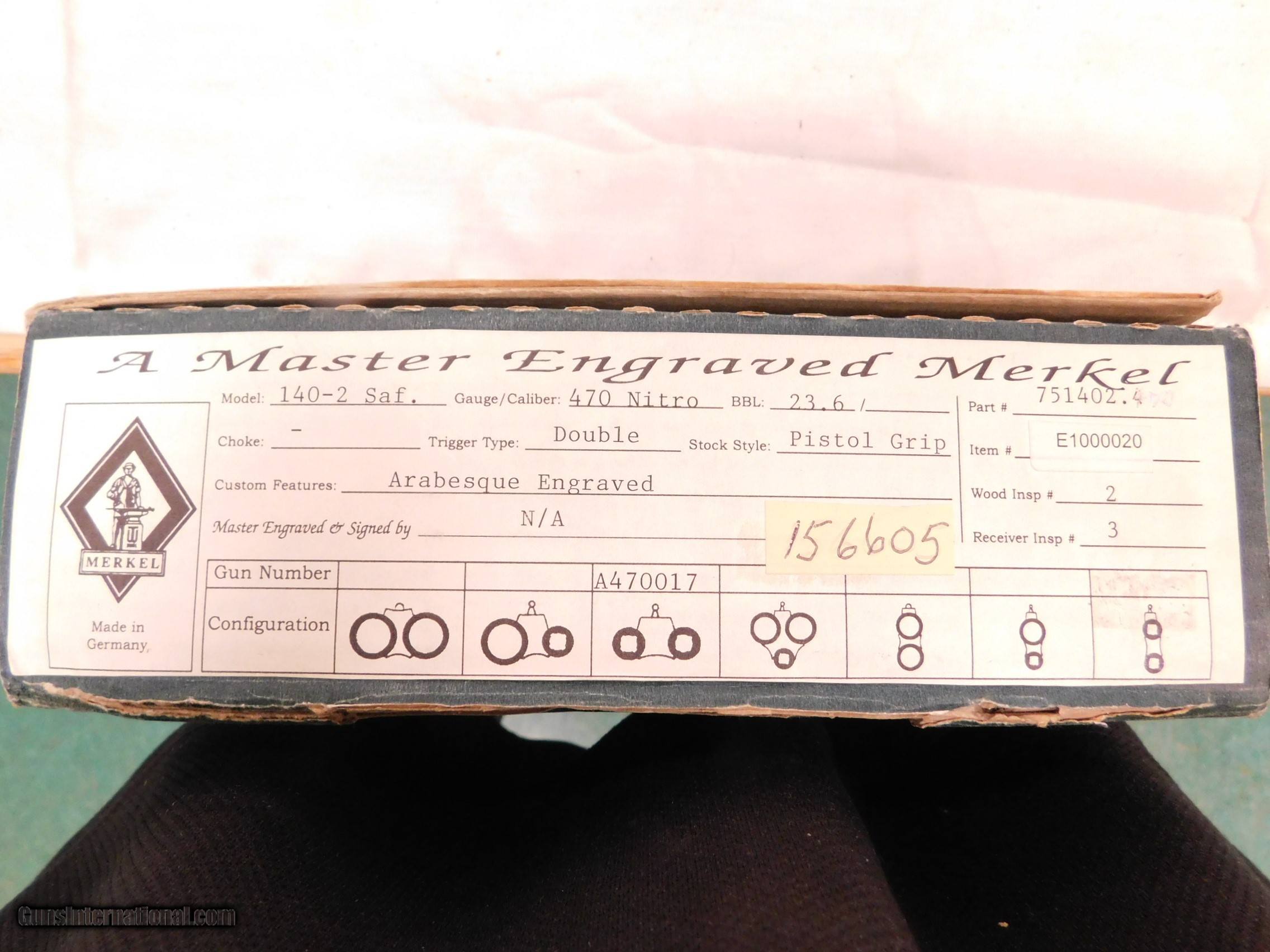 Description: Merkel Double Rifle 470 Nitro, model 140-2 Arabesque Scroll Engraved #17 of the first 25 guns. Gun is NEW IN THE BOX!!!!! Manufactured 1999. Price $7500and $25 shipping and handling. SOLD Rifle Caliber: .470 Nitro Express Manufacturer: merkel Condition: NEW IN THE BOX |