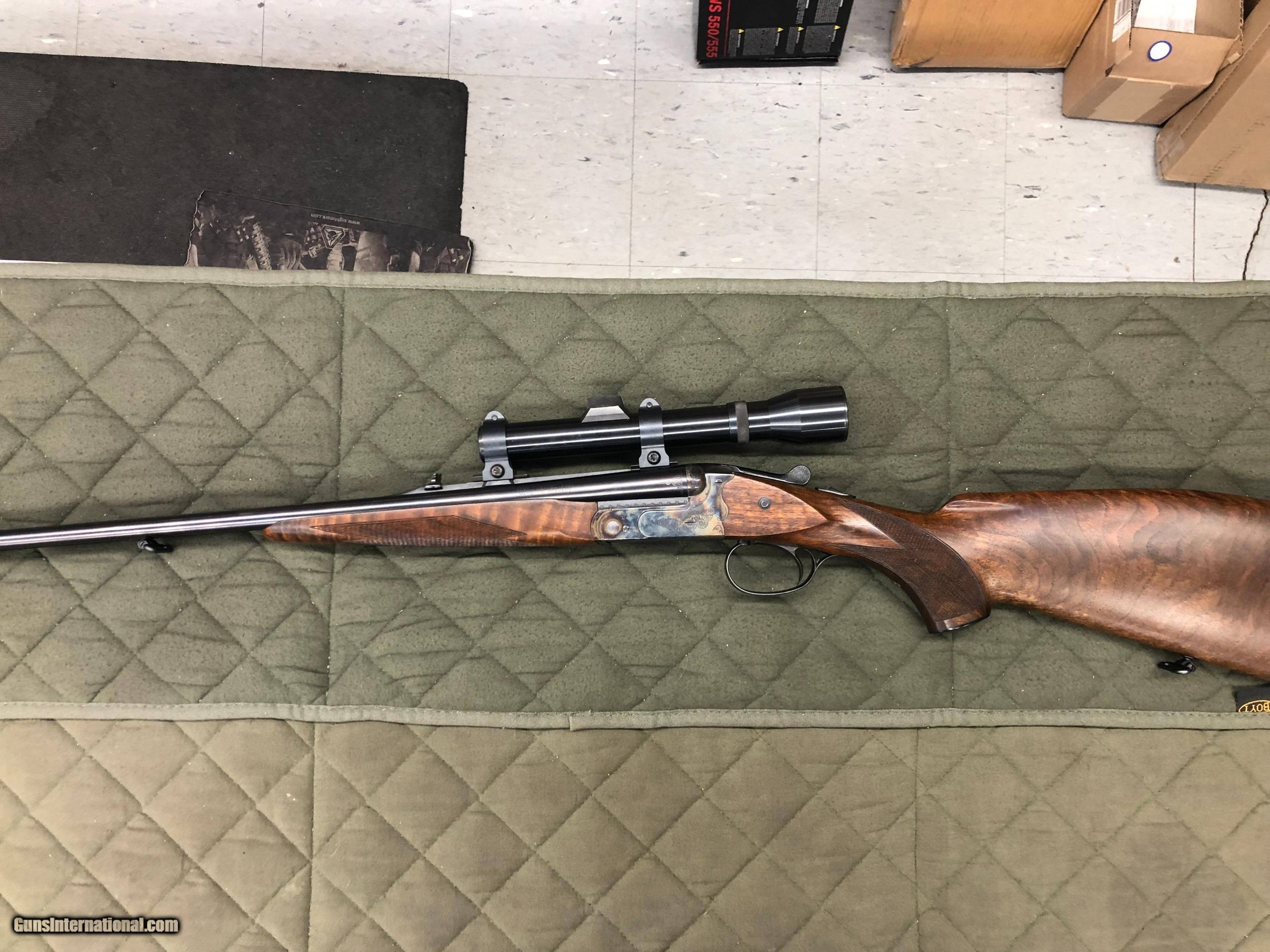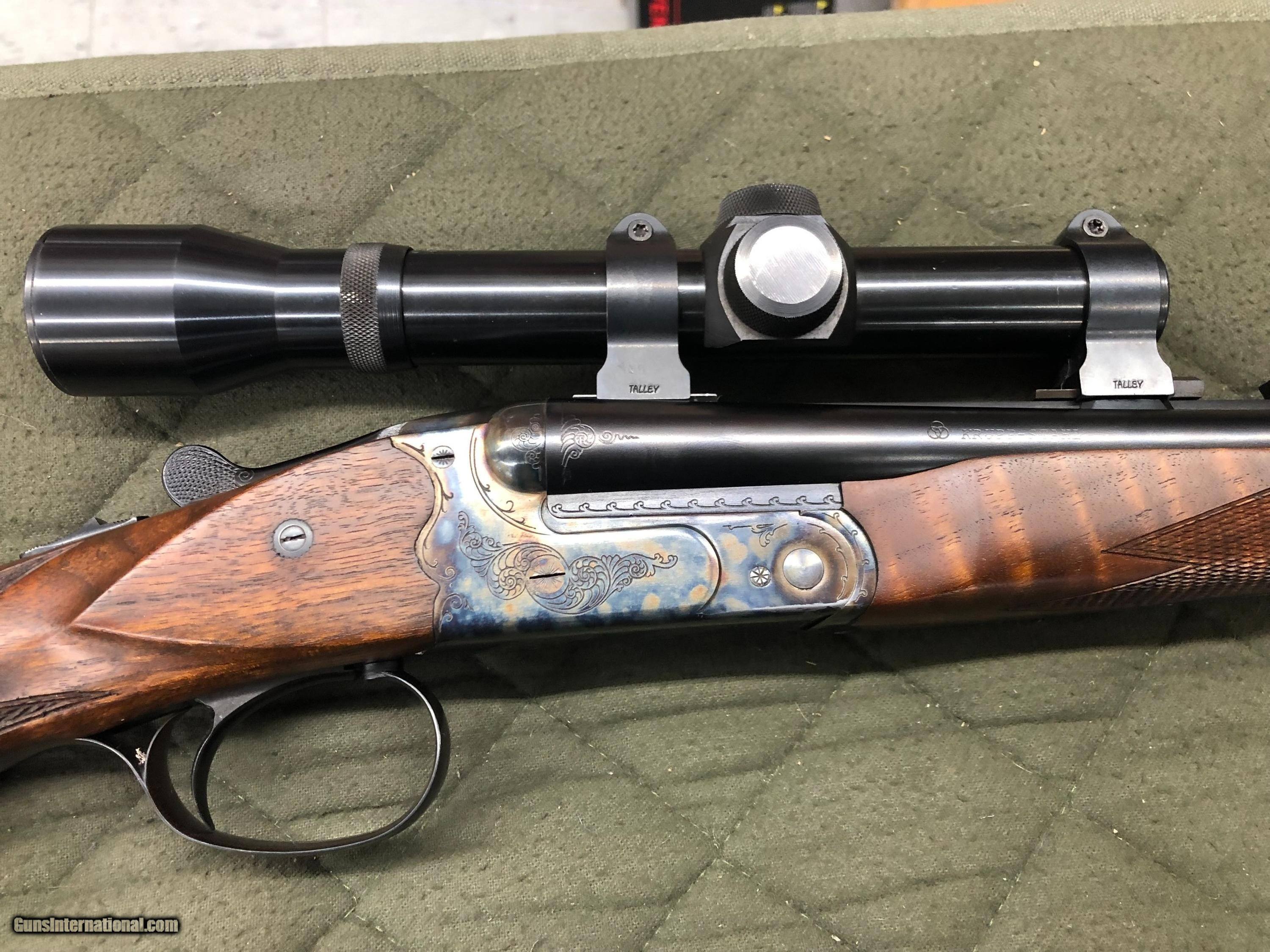 Description: A beautiful Merkel 140 double rifle 21.5" bbls,8x57 JRS,with sights and a weaver K 1.5 and Talley rings,sling swivels,beautiful wood,in excellent shape.Also comes with 2 full boxes of ammo and one empty brass. SOLD Rifle Caliber: 8x57mm JRS |