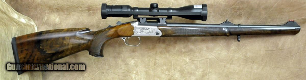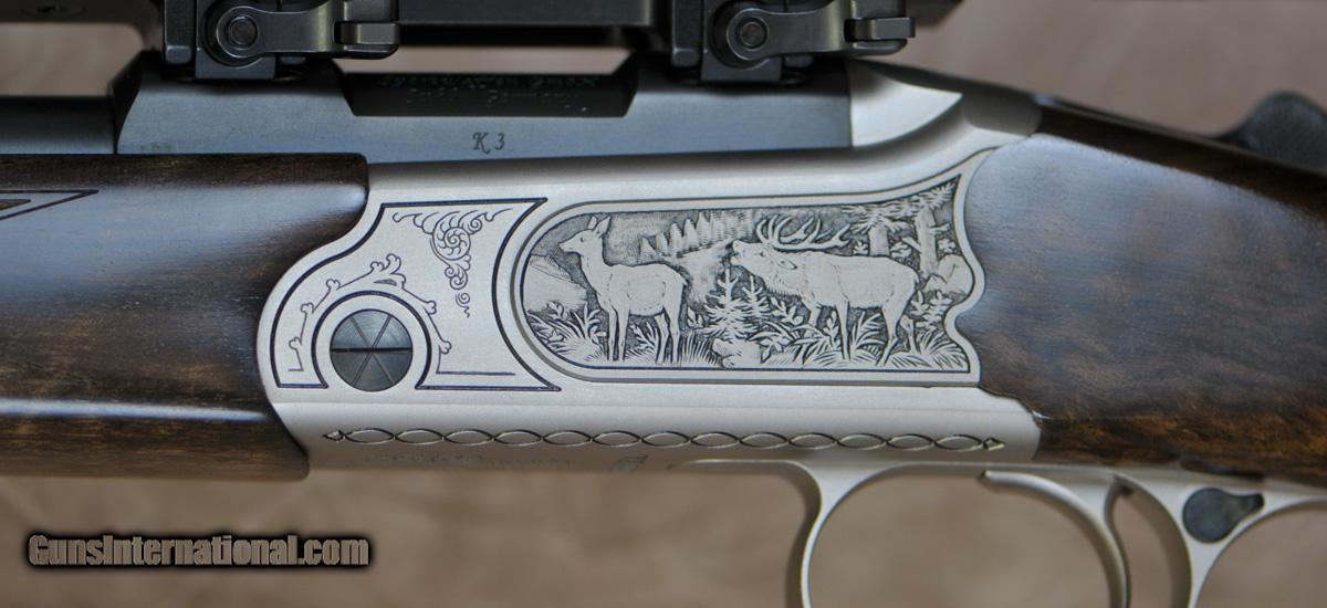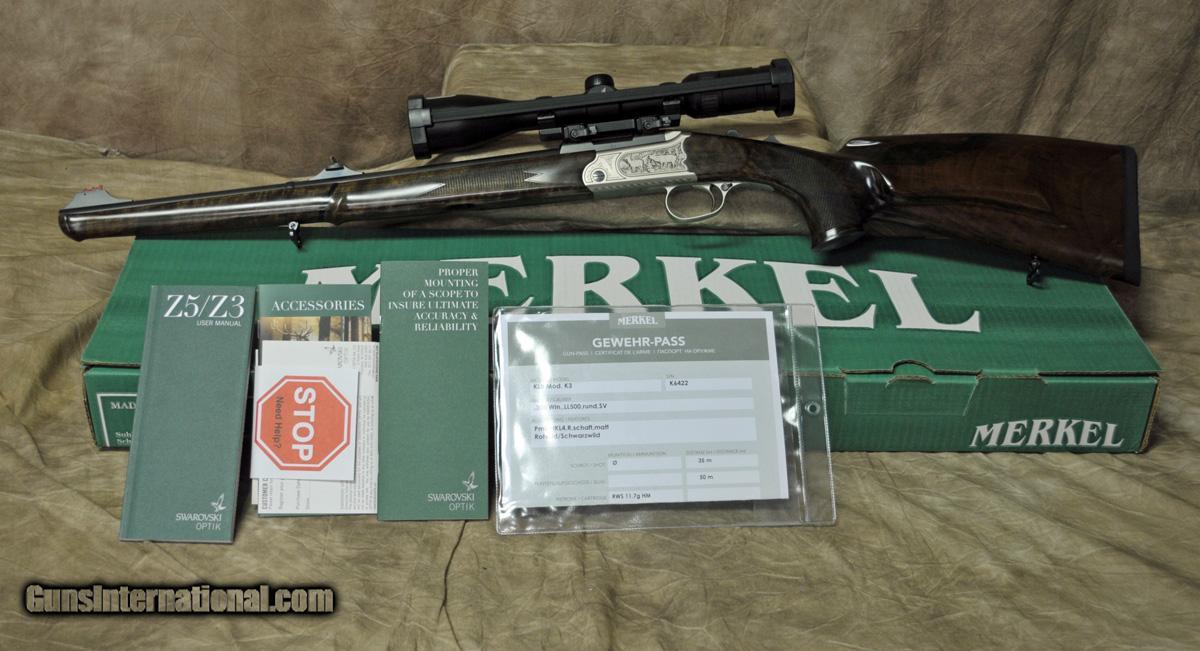 Description: Merkel K-3 Stutzen .308 Winchester 20" Barrel. Includes Z3 Swarovski 3x10-42 Scope. The single barrel rifle is a special gun. Aficionados value its optimised shot performance to weight ratio. A special form of single-barrel rifle, the Stutzen, is mainly found in Alpine regions. The K3 single shot Stutzen is a variation on the K class, which combines the short rifle with the full barrel stock forearm. Lovers of this special gun appreciate its handiness in practice – when stalking, in the raised hide and also in transport. The K3 Stutzen combines impressive shortness with efficient gun technology. MEM single shot rifles of the Merkel K class have gained a special reputation for distance shooting among precision marksmen. These single barrel guns are predestined for hunting in mountainous regions and for stalking. They combine easy-to-handle size with low weight - ideal prerequisites for this physically demanding type of hunting. The K class locks with a typical MEM technology, which the Suhl gunmaker Franz Jäger patented in 1906, and which since then is considered one of the most rugged breech for single shot rifles. A steel block catches into a keyway of the barrel and locks it - the steel on steel principle applies. The tilted block breech allows a light duralumin receiver to be used, which enhances the responsiveness of the light-weight K3. The finely tuned trigger with perfectly adjustable trigger weight is a further indication that this gun class is designed for the precision shot; as does the simple but exactly repeatable Suhl tilt-up mount. Although technically innovative, the form of this hunting gun draws on the traditional Suhl style. The stock has the Merkel curvature; the side plates are inlayed in a prism and fastened with engraved screws. Includes factory box and manual. This gun is located at our NEW Michigan location at 8585 PGA Drive, Suite 104. Walled Lake, MI 48390. 248-960-7262. Refer to 422. SOLD |