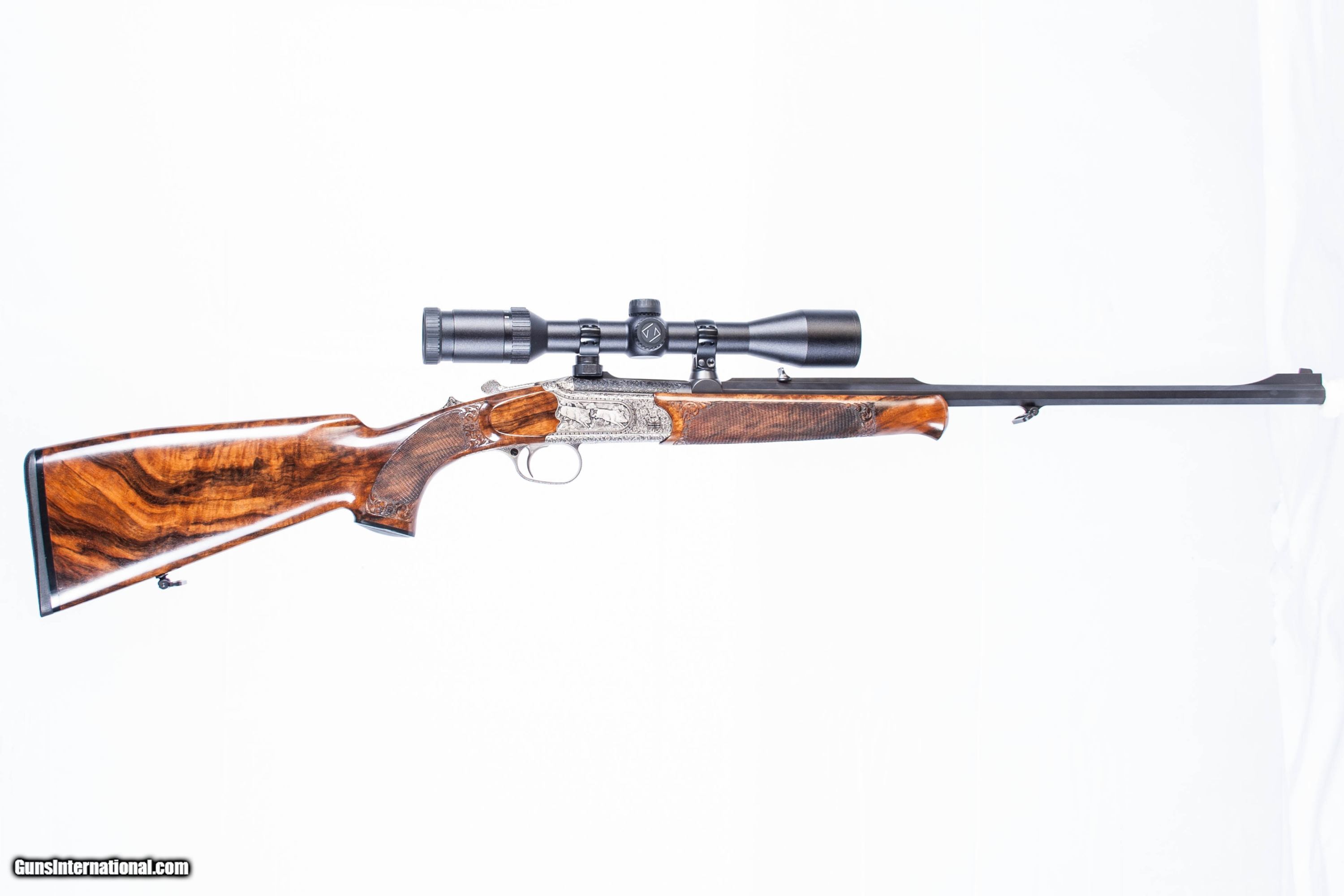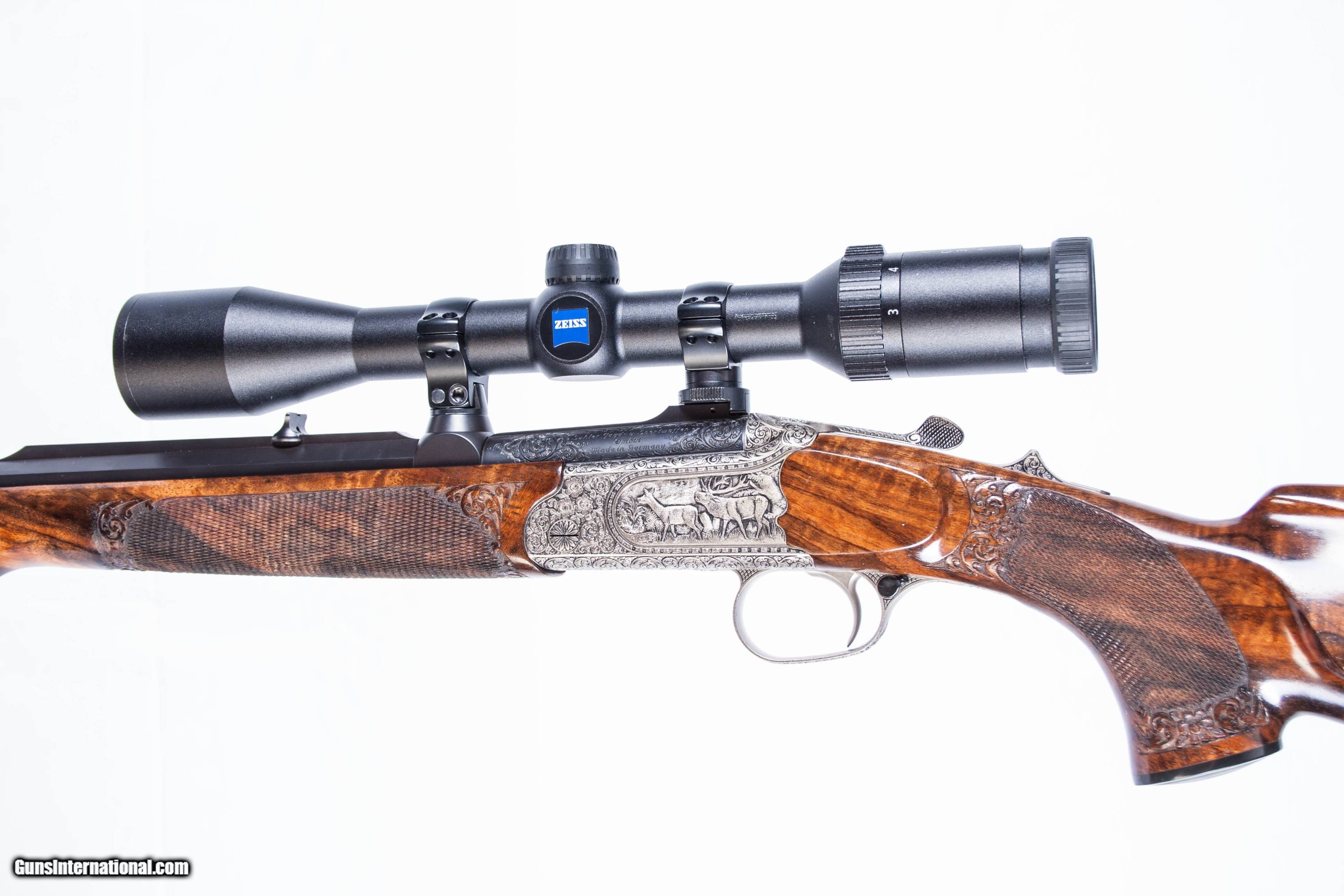 Merkel K-4 chambered in 30-06 Sprg with a 23 1/2 inch octagonal barrel bright bore and good grooves. This firearm has a Zeiss Conquest 2-9x40 scope mounted to it. This gun is in excellent condition and is covered by Dury's Lifetime Warranty.