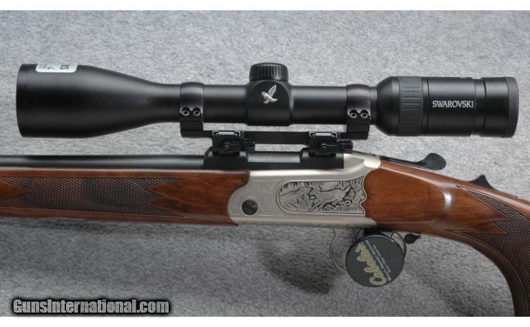 Description: Beautiful Merkel K3 Rifle. Mannlicher style stock and engraved receiver. Very light hunting rifle. Like new Swarovski Z3 scope. SOLD Caliber Info: 7mm-08 Remington Chambers: Single shot rifle Metal Condition: Excellent Wood Condition: Excellent Bore Condition: Excellent Barrels: 20 Inches Stock: Checkered pistol grip stock with Bavarian style cheek piece and a right hand palm swell. Stock Dimensions: 14 1/4" LOP. Fore End: Checkered Mannlicher style fore end. Butt Pad: Rubber butt pad. Weight: 6 lbs. 6 oz. as pictured. Sights: Swarovski Z3 3-10X42mm scope with a quick disconnect base. Also has a rear 3 dot and a red fiber optic front sight. Extras: Includes the box, scope cover and manuals. Item Location: Lone Tree, CO |