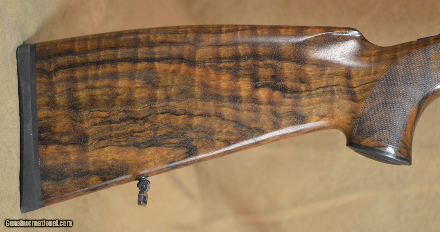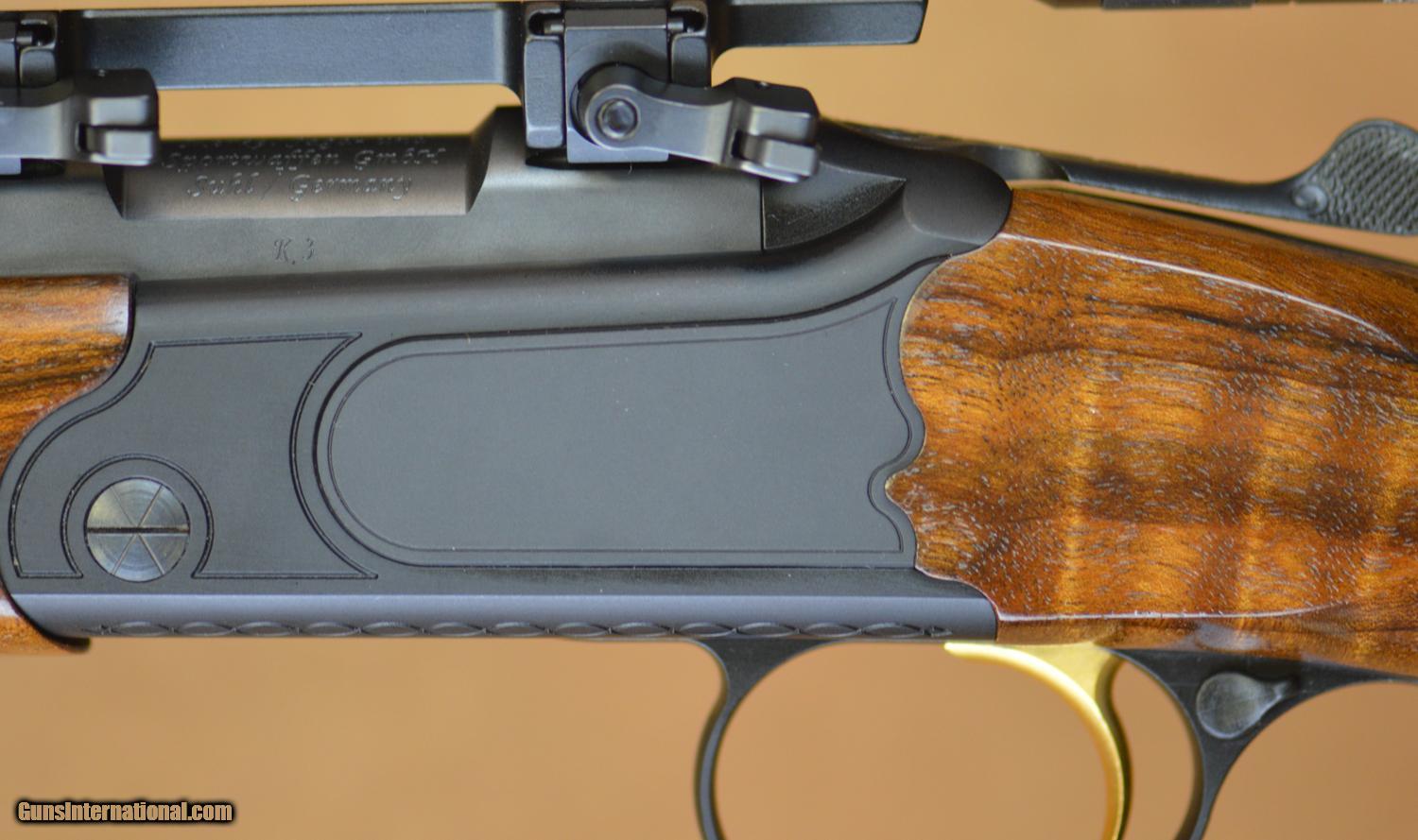 Description: New Merkel K3 Stutzen Stalking Rifle 7mm-08 with 20" barrel, factory iron sights with full Mannlicher style stock. Includes QD factory scope mounts and Swarovski Z3 3-10x42 scope. Factory plasma nitride finished action with gold trigger and gold washed internal parts. Outstanding factory Bavarian style stock with rabbit ear cheek rest. Includes factory case, tools. Call 626-633-1002 for best price! SOLD |