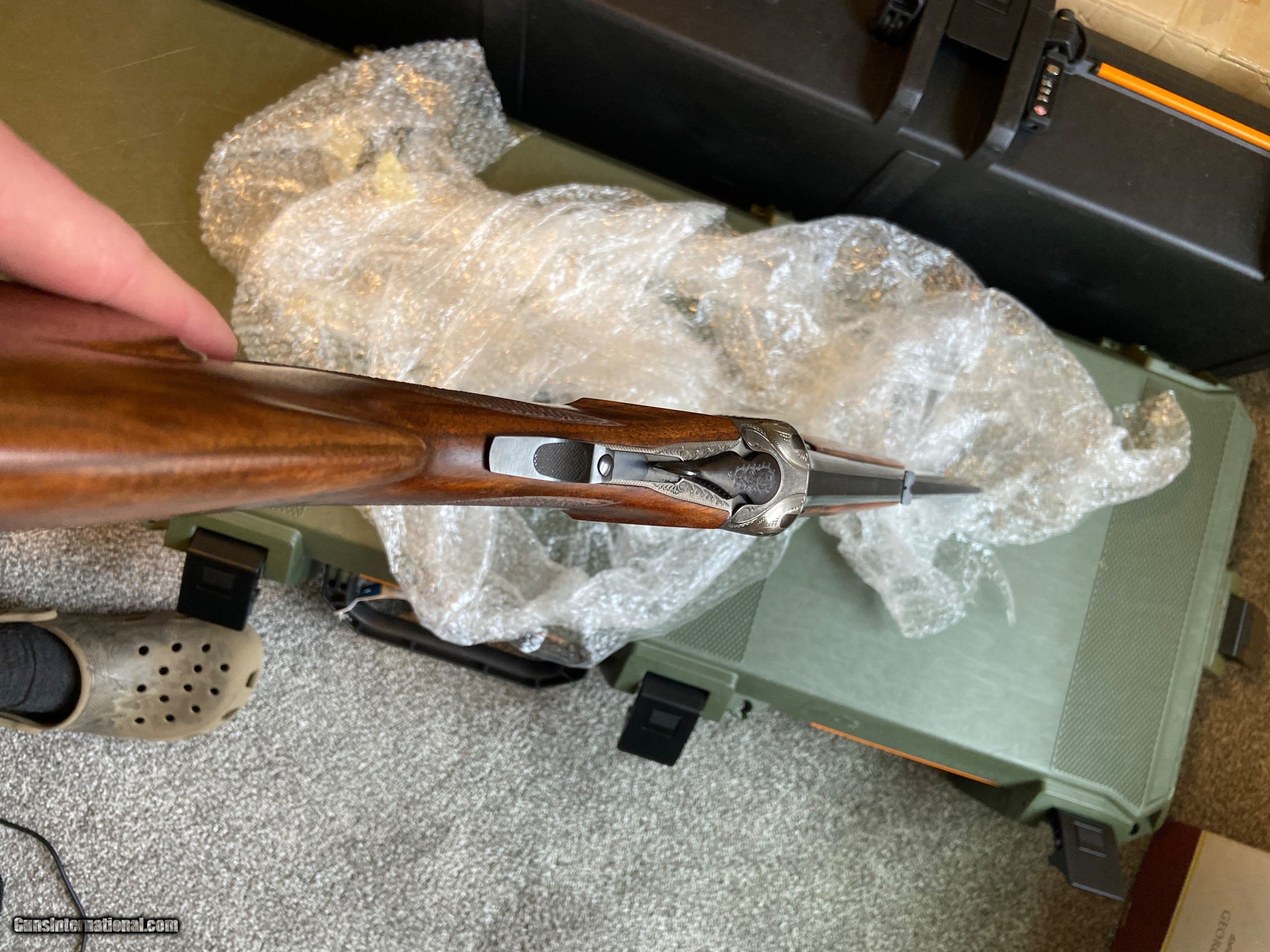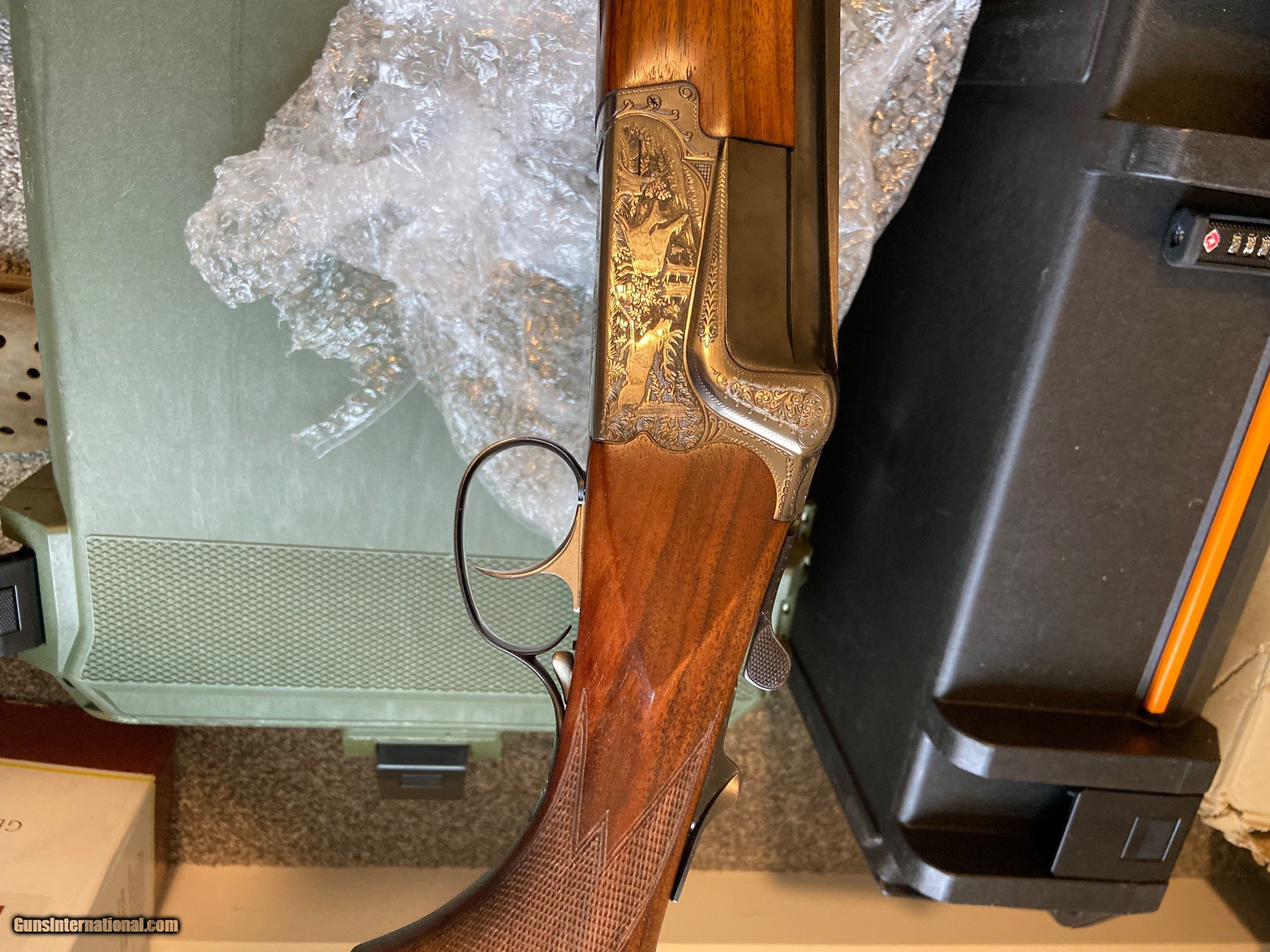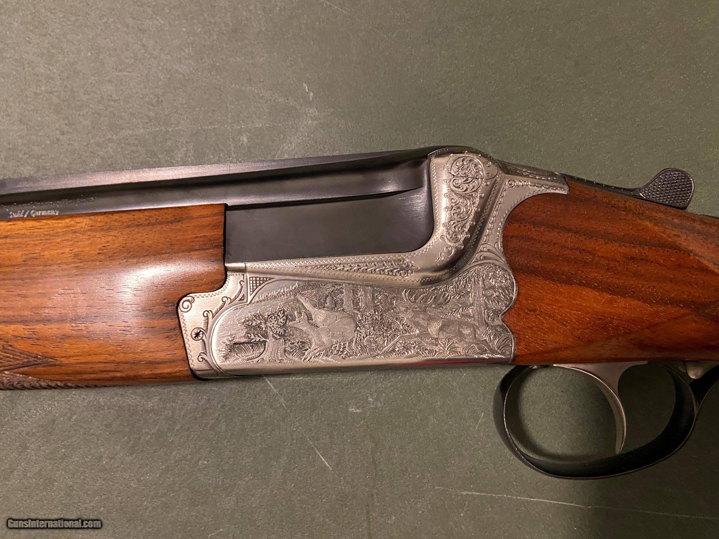 Description: Merkel "Bockbuchflinte" (over/under rifle) model 2011D: self-cocking, boxlock system. Breech: Kersten breech. Single trigger. With ejectors, and a selector to change between shotgun and rifle. Very stiff action; rifle has never been fired outside of the factory to the best of my knowledge. Safety: trigger safety by manual operation of the safety slide on the butt neck. Selector switch on the inside of the trigger guard. Barrel length 28 inches, clear, sharp and clean. Heavy coin engraving with arabesques of red fox, and fowl. Caliber in 12/76 (lower barrel) & the reliable 8x57IRS (upper barrel). Manfactured in 2010. 99% condition. Weapon was designed and built as a custom rifle, with a build cost of $8500~ several years ago. Comes with original box. More photos & details availble on request. Acquired by me while stationed in Germany several years ago; getting rid of my collection now. Weapon will be shipped inside the original box. Shipping will be $150~ (depending on buyer's location) from my FFL to yours. Will arrange for local pickup if so desired in Tulsa, OK/NW Arkansas area. SOLD Rifle Caliber: 8x57mm JR Shotgun Gauge: 12 Gauge Manufacturer: Merkel Model: 2011D Condition: Outstanding Metal Condition: Outstanding Wood Condition: Outstanding Bore Condition: Outstanding |