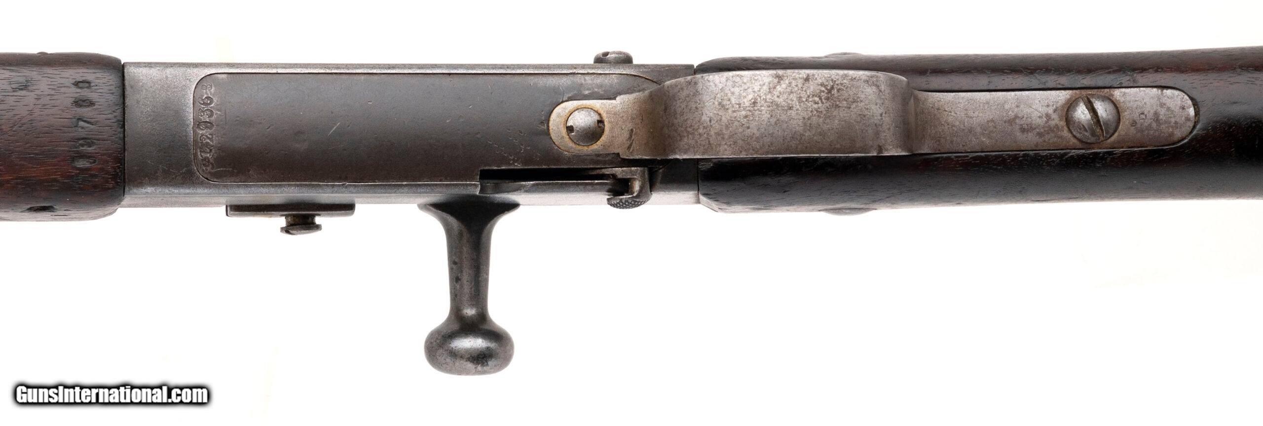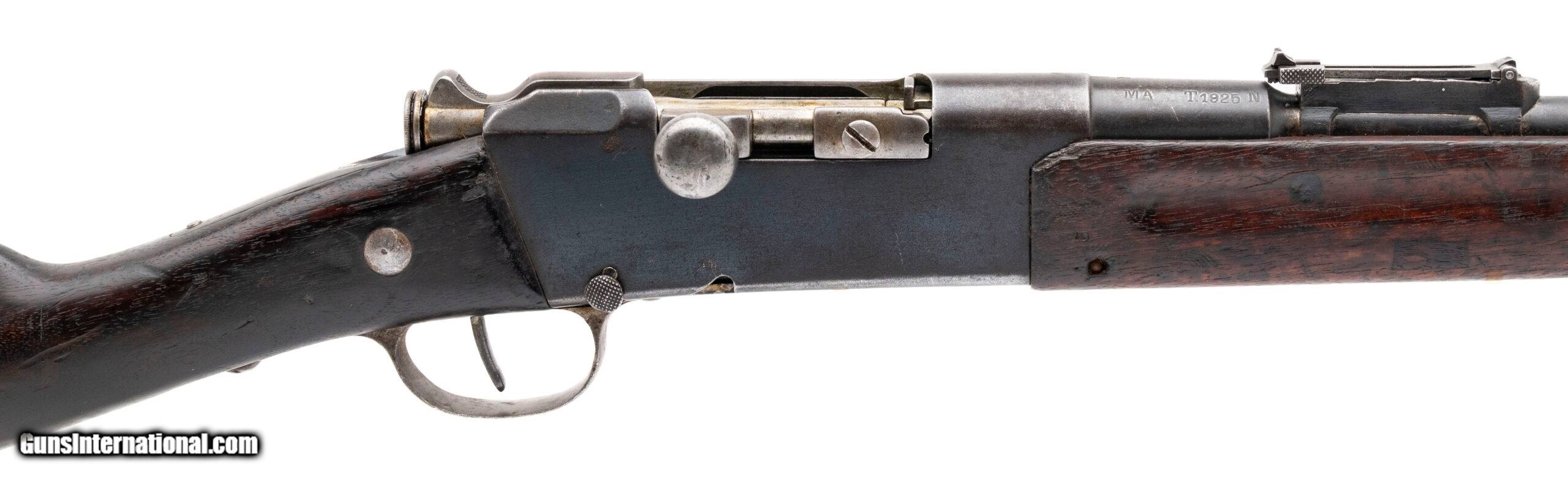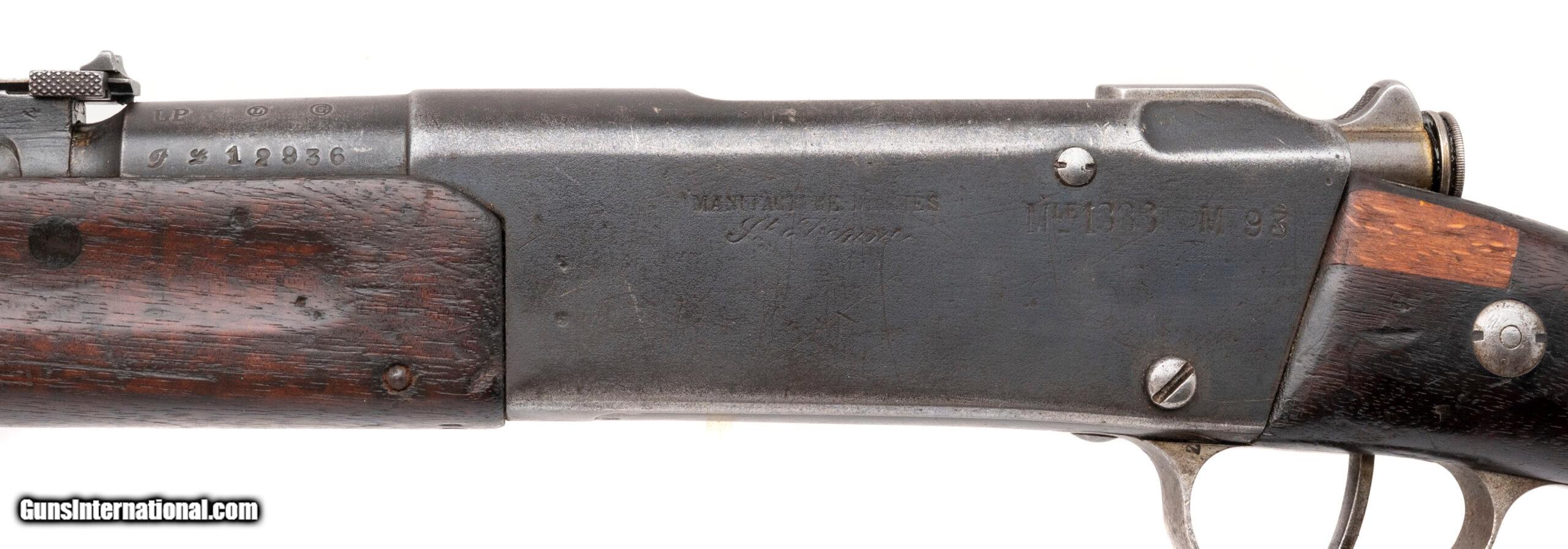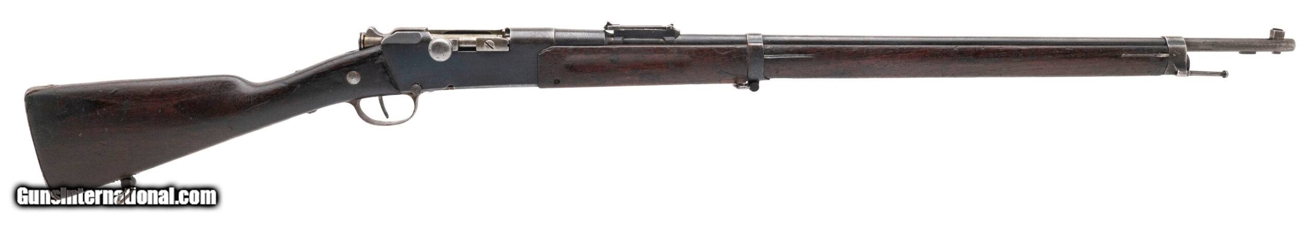 Description: "Serial No. L12936, manufactured circa 1905, chambered in 8mm Lebel, featuring a 31 ¾" round barrel. This classic Lebel rifle, the backbone of the French infantry during WWI, shows matching serial numbers throughout, with the exception of the fore-end stock. The barrel was arsenal replaced in 1925, a common modification during postwar refurbishment to extend service life. The metal surfaces exhibit a smooth dark grey patina, and the factory markings remain legible and well-preserved. The stock displays typical arsenal repairs and expected field wear, with scattered handling marks consistent with age and service. The action is smooth and functions correctly. A solid representative of a WWI French rifle! Curio/Relic: Yes Price: $1,895.00 Contact Seller |