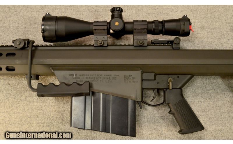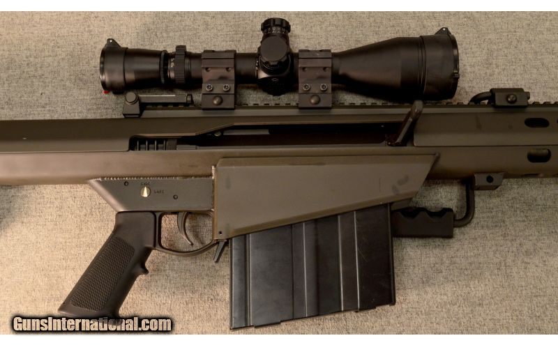 Description: This is a pre-owned Barrett model 82A1 semi-auto in .50 BMG SOLD Caliber Info: .50 BMG Chambers: Chromed Metal Condition: Very good with a few small scratches and rub marks Wood Condition: Very good with a few small scratches and rub marks Bore Condition: Clean with bright lands Barrels: 29" fluted match-grade Stock: Parkerized steel Stock Dimensions: 14 1/2" LOP Fore End: Parkerized steel Butt Pad: Sorbothabne pad Weight: 32 Lbs. Sights: Leupold Mark 4 4.5-14x50mm LRT riflescope with Mil-Dot Reticle Extras: Comes with a Pelican hard case, manual, Barrett cleaning system and three 10 round magazines Item Location: Reno, NV |