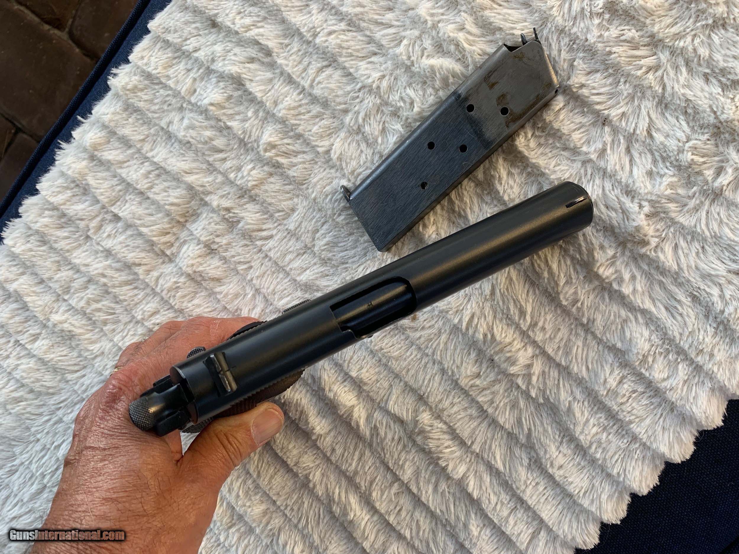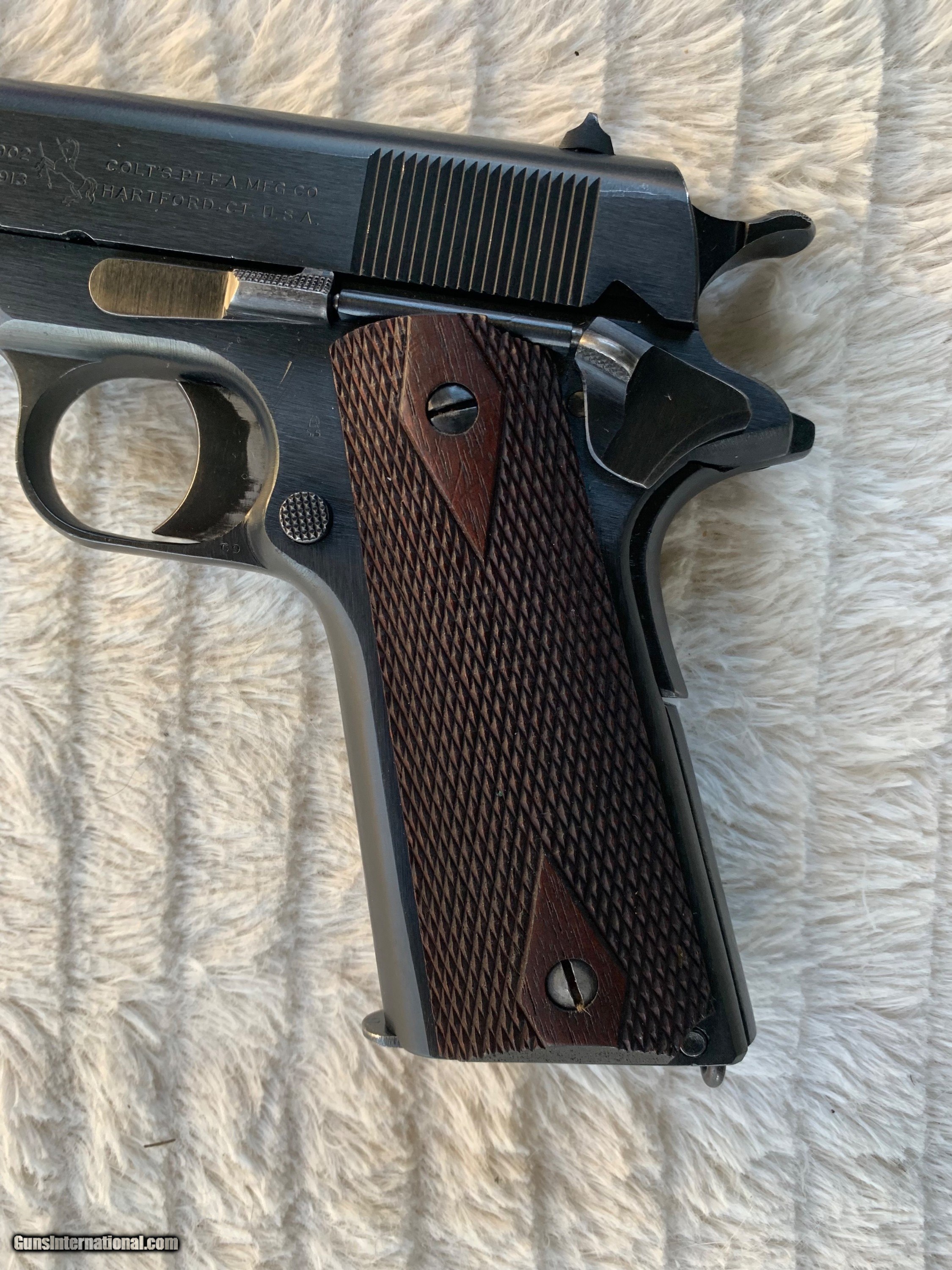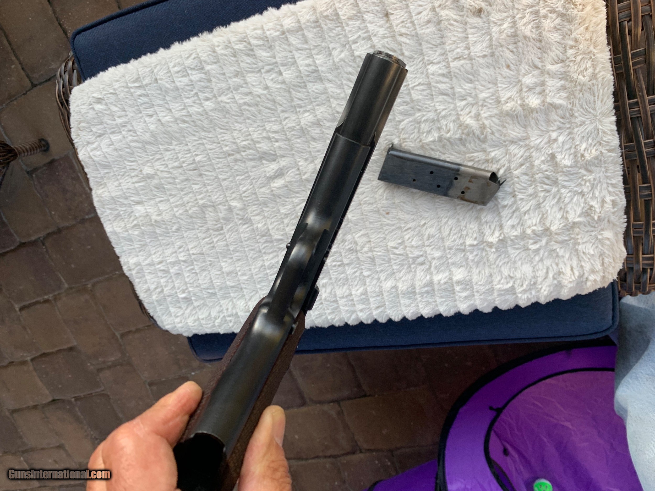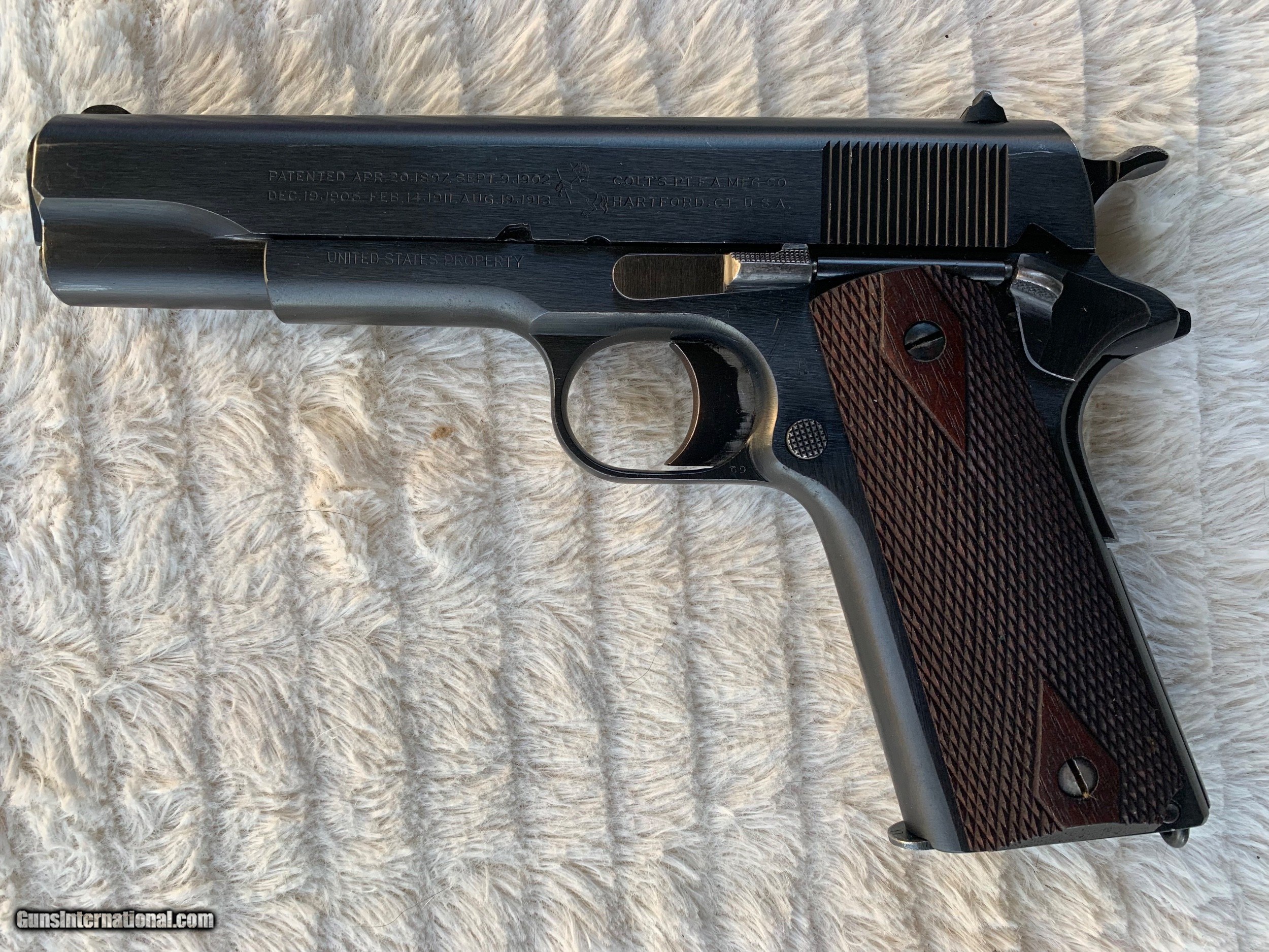 Description: Here's a stunning example of a WW1 Colt 1911 " Black Army " . Serial number 458,588. Gun is in excellent plus condition with lite handling marks. All of the solid finish is still remaining . Markings are sharp. Grips are in excellent plus condition. Bore and mechanics are in excellent plus condition ! Gun locks up tight . Gun is 100 percent all correct for a 1911 black army . Please review my photos and email me with any questions ? 3 day inspection as allways. Thank you for looking, Little Jo SOLD Curio/Relic: Yes Handgun Caliber: .45 ACP (.45 Auto) Manufacturer: Colt Model: 1912 Serial Number: 458,588 Condition: Excellent plus Bore Condition: Mint |
