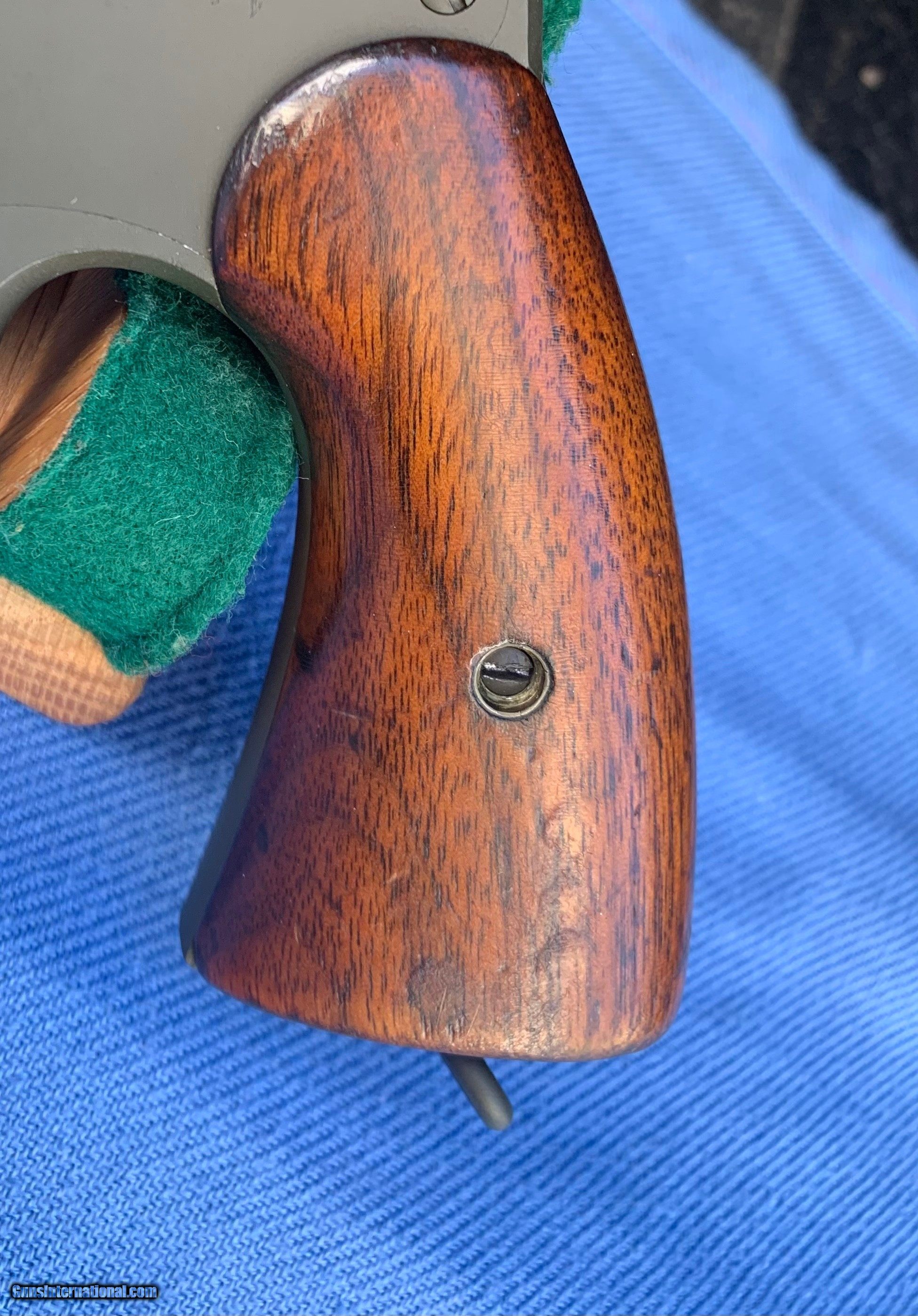 Description: Here's a Colt U.S.Model 1917 45 caliber Revolver. Serial number 29214 . Looks to be Arsenal Military Original Finish . Gun has 100 percent Parkerized Finish Still Remaining . Gun has a 2" barrel . All parts are properly Military Inspector Stamped . Original walnut grips are in excellent condition ! Bore and mechanics are in excellent plus condition . Gun locks up tight . Gun is in excellent working condition ! This is a rare variation of a colt 1917 revolver ! Please review my photos and please email me with any questions ? 3 day inspection as allways ! Thank you for looking, Little Jo SOLD Curio/Relic: Yes Handgun Caliber: .45 ACP (.45 Auto) Manufacturer: Colt Model: U.S.Model 1917 Serial Number: 29214 Condition: Mint |