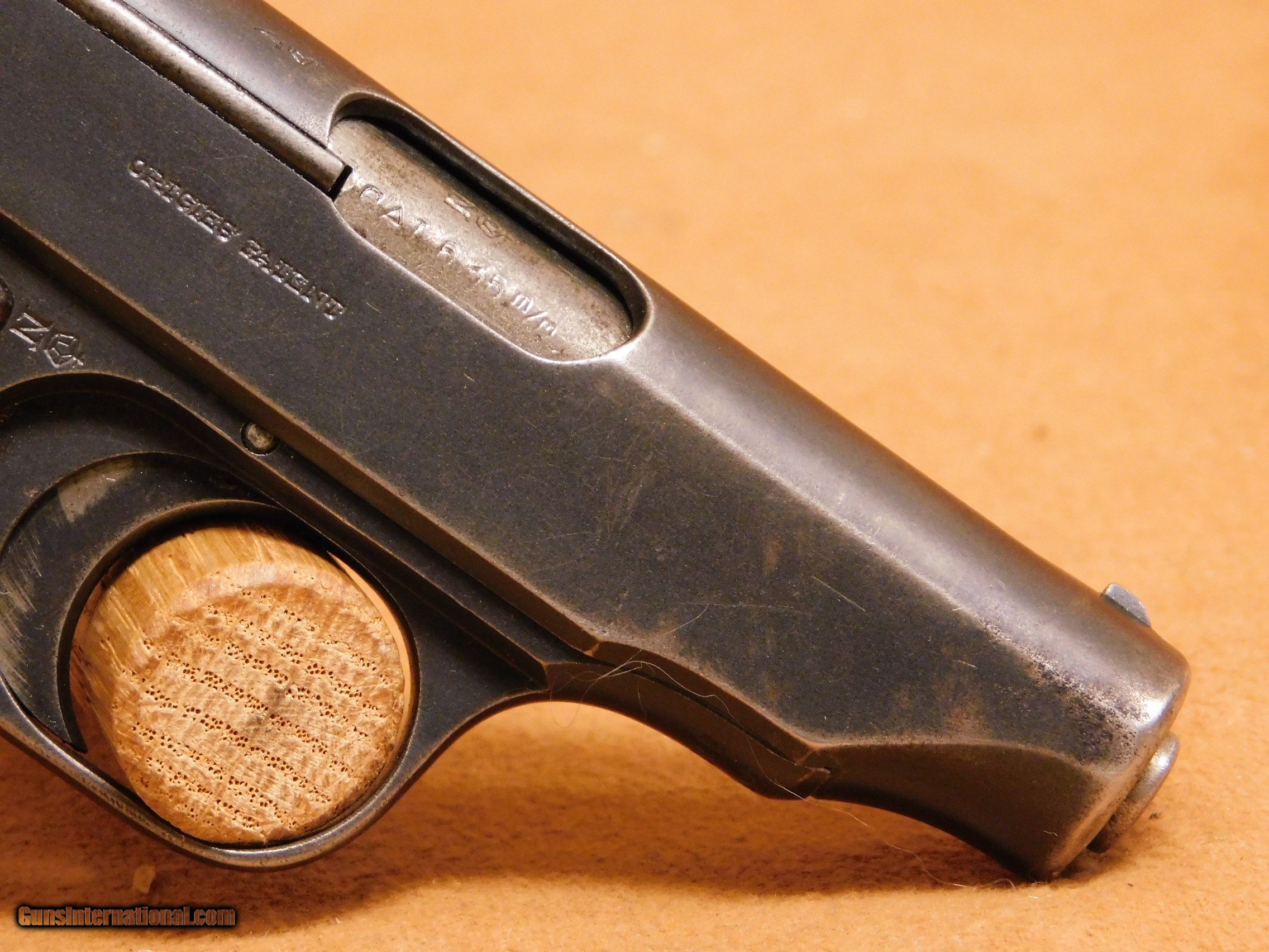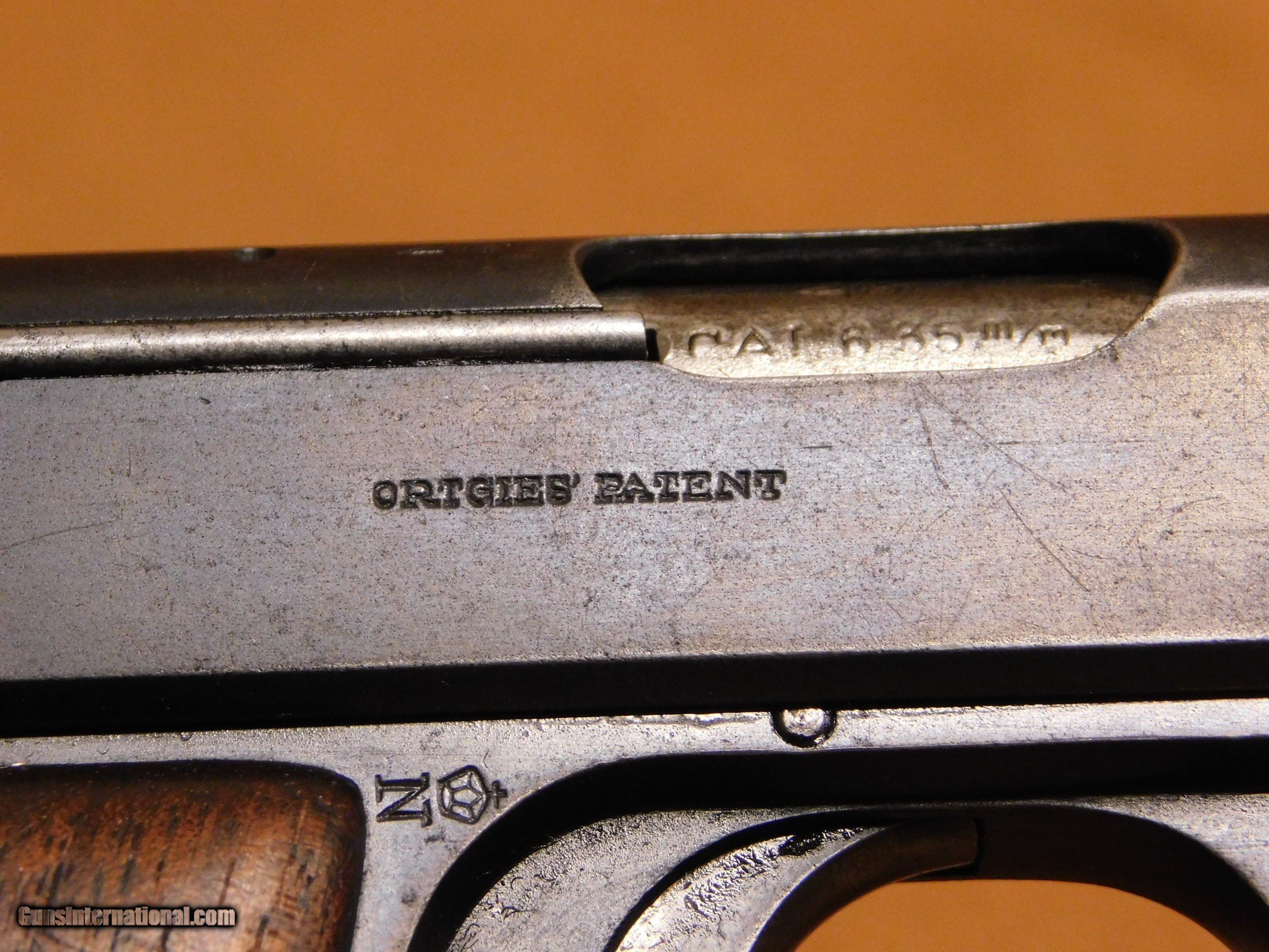 Description: The Ortgies 7.65 mm pistol was a hammerless semi-automatic pistol produced in Germany in the years immediately after World War I, first by its inventor Heinrich Ortgies and then by Deutsche Werke. This German pistol has a 2¾” barrel, fixed sights, a heel magazine release, a grip safety, and hardwood grips. It is in excellent condition, but has a dark bore with distinct lands and grooves. It comes with a modified PPK holster. All items are also available for sale in our brick & mortar store and are subject to prior sale. Think long, think wrong. Payment On firearms, we typically only accept credit cards or money orders/cashier's checks.