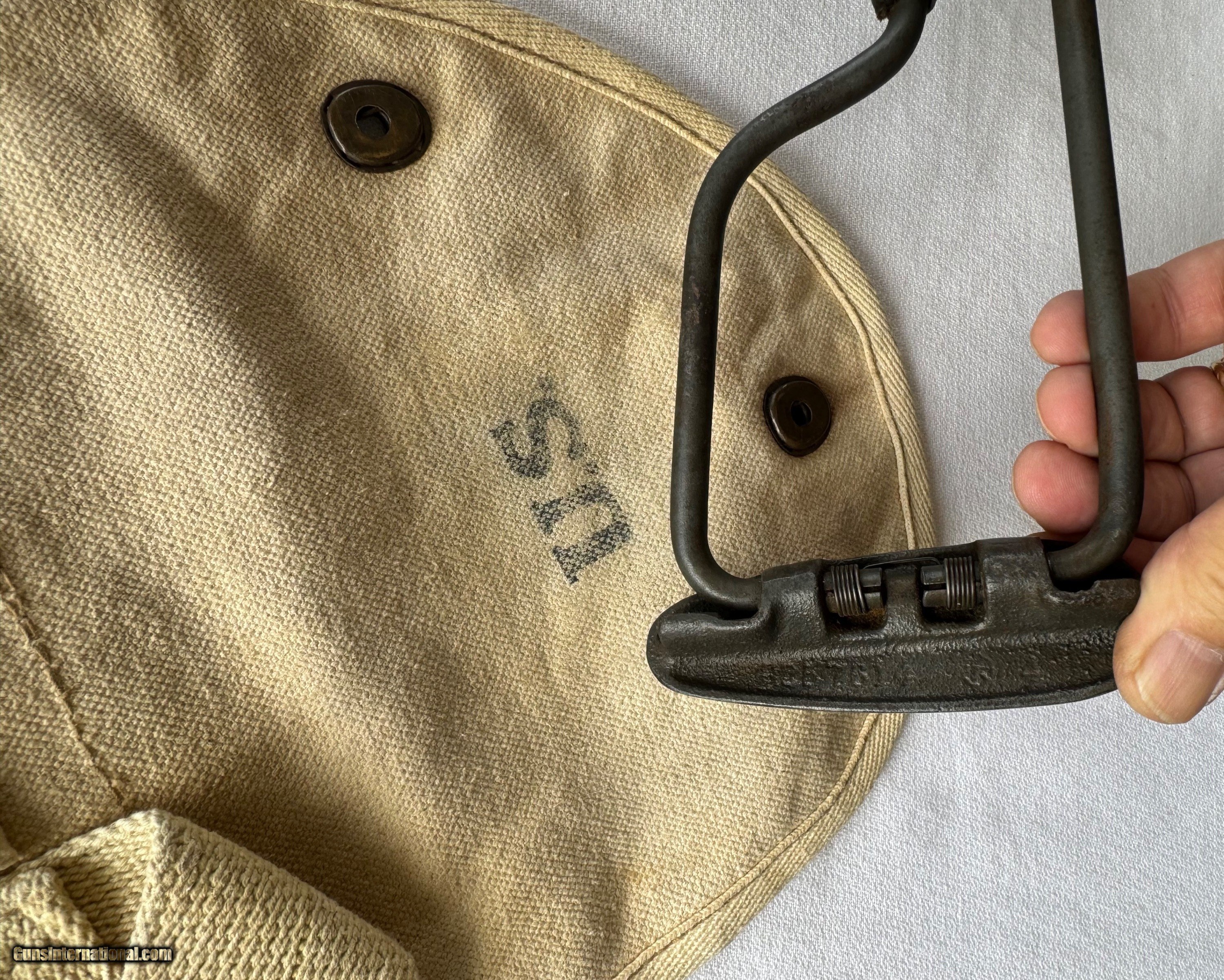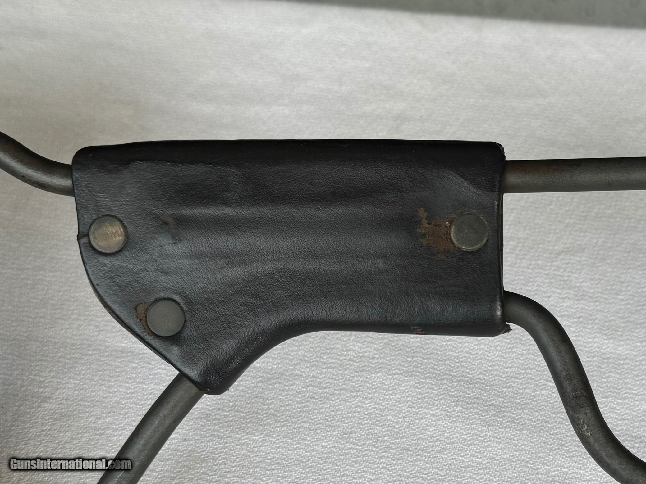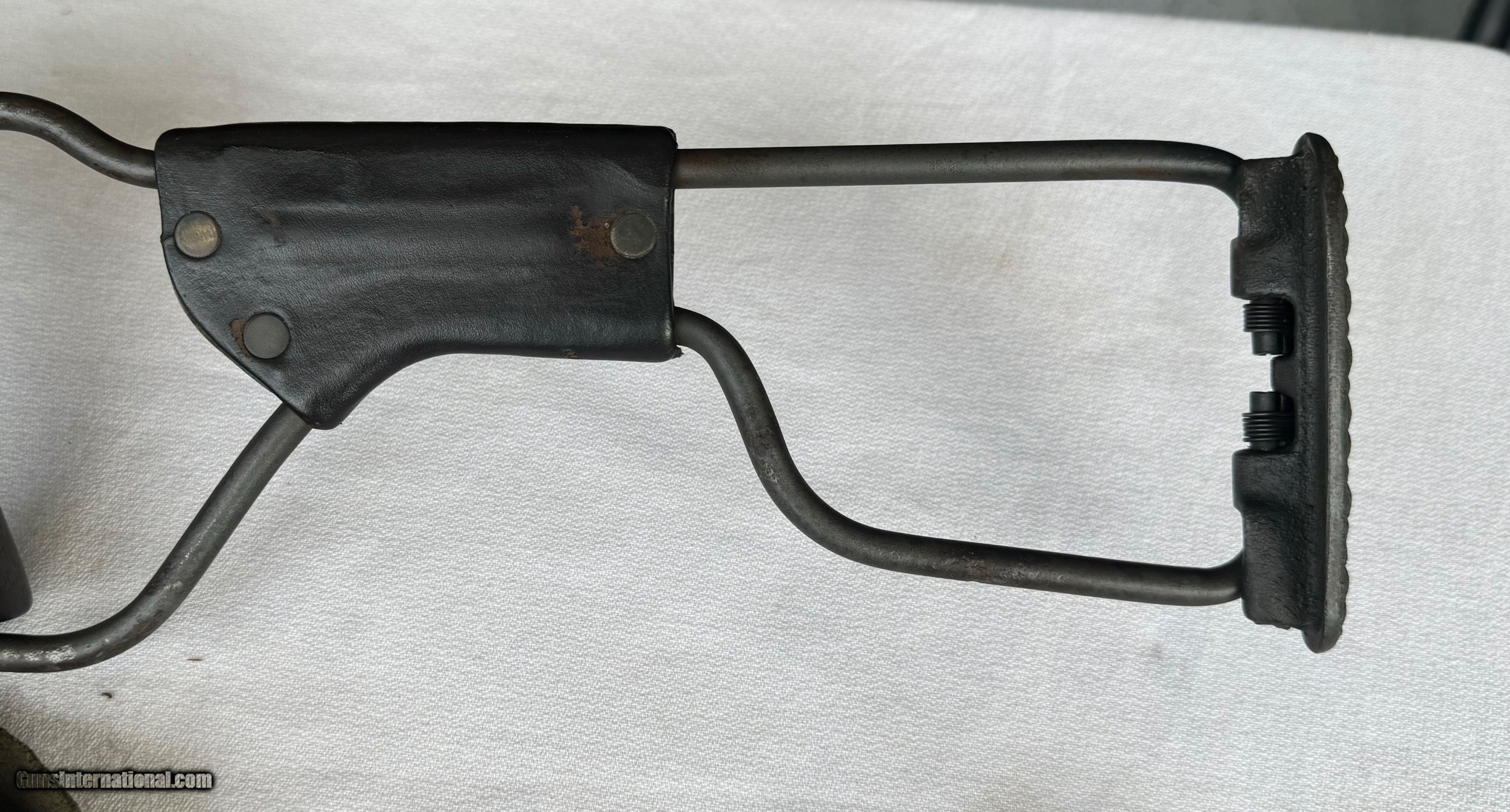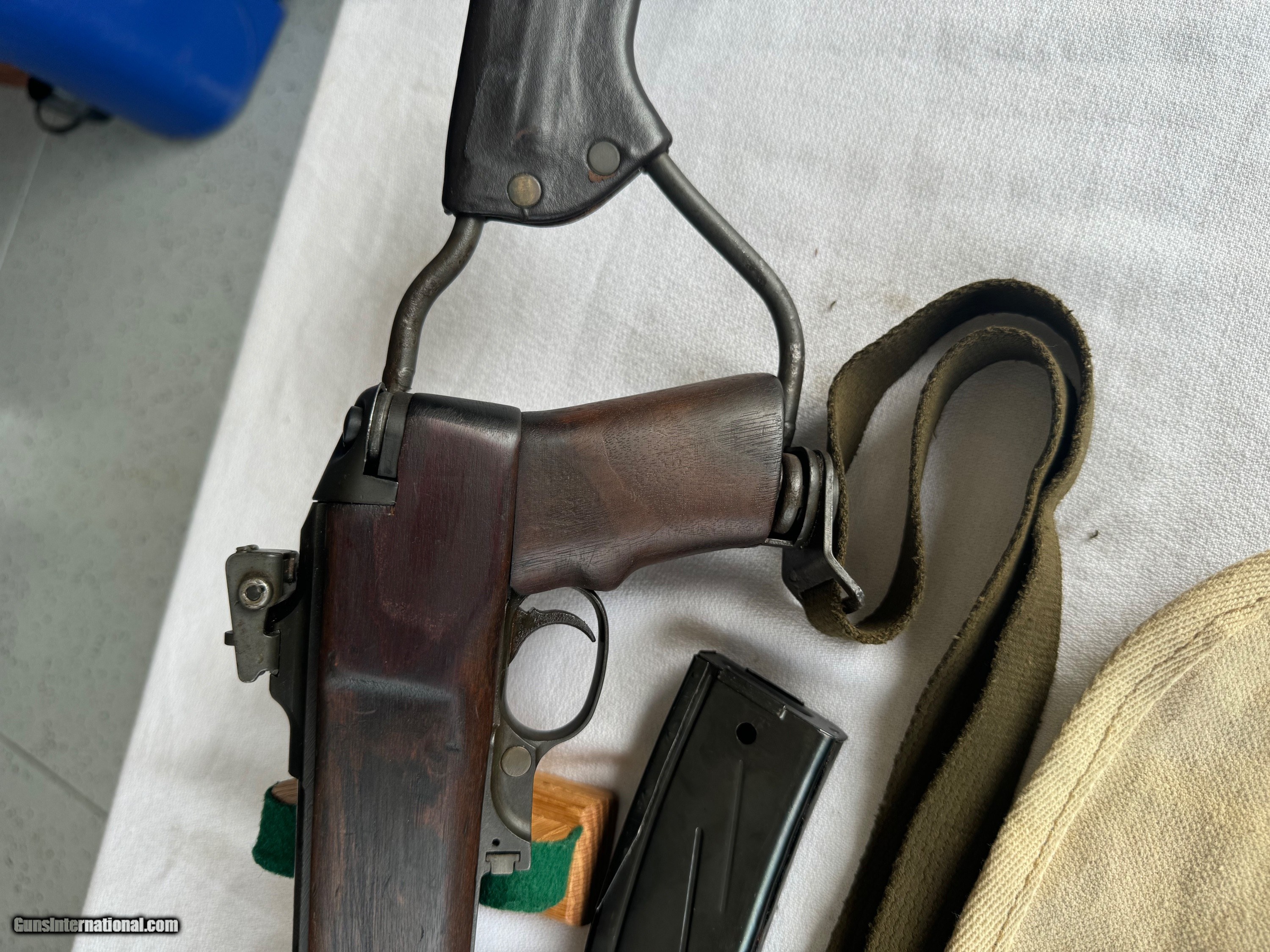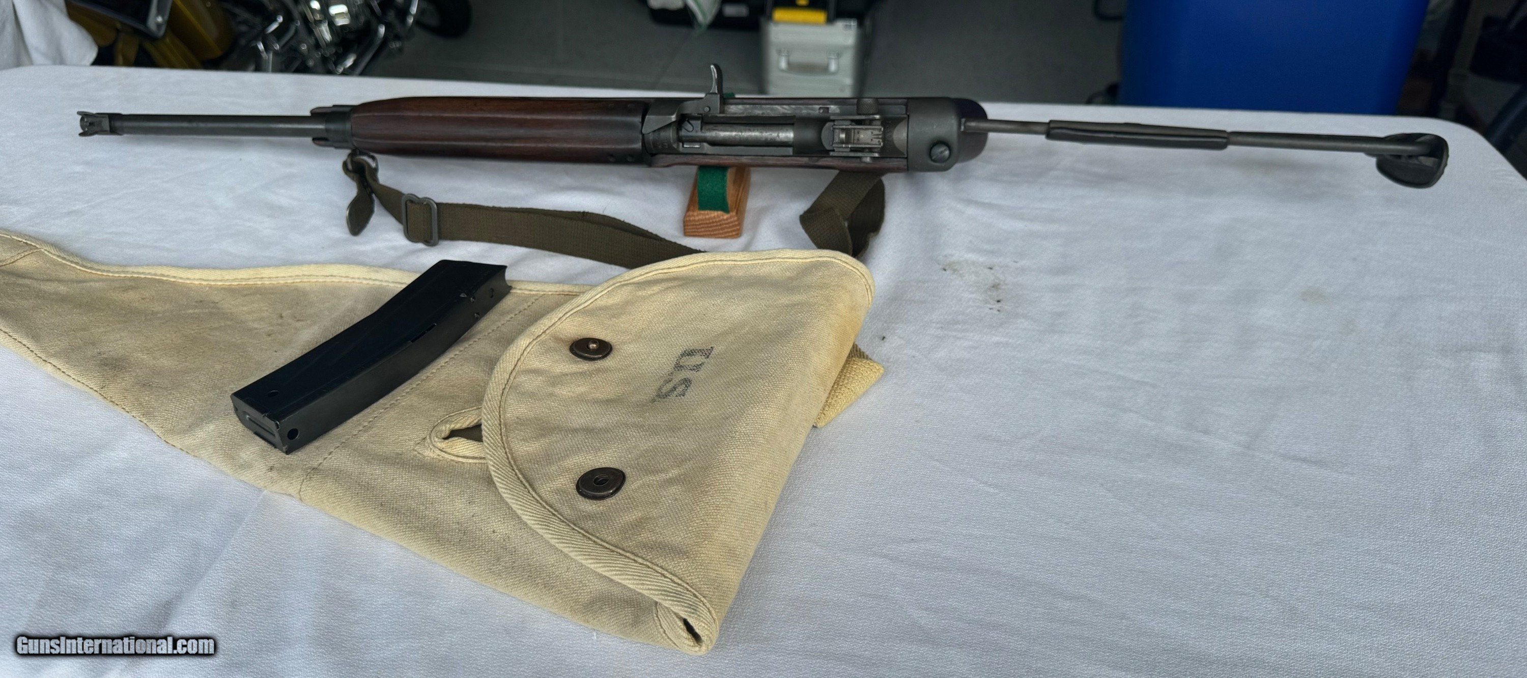 Description: Here's a Genuine Original WW2 Inland Paratrooper with extras ! Serial number 5,474,526 . Shipped in March 1944. Text book WW2 Example ! Bore and mechanics are in excellent condition. Excellent working condition. Comes with original Sling , 30 round mag and 2 - 15 round mags with U.S. pouch . Also comes with a U.S.M.C marked Jump case with dates and maker marked . Also comes with a Practice Hand Grenade. Gun has most of its original finish with wear and tear to the finish from use . Wood is original and has a neat repair on stock on right side below bolt and forend . With correct P stamp on stock indicating Arsenal wood repair . This gun seen action and shows wear from use . Comes with correct sights and inland parts throughout . Wood is also correct Inland Marked . Gun has a Inland barrel with 3/44 date. Original Folding stock is in excellent condition. Overall a Great WW2 Used but not abused correct and original Inland Paratrooper! Please review my photos and email me with any questions ? 3 day inspection as allways. Thank you for looking, Little Jo SOLD Curio/Relic: Yes Rifle Caliber: .30 Carbine Manufacturer: Inland Model: Paratrooper Serial Number: 5,474,526 Condition: Excellent |