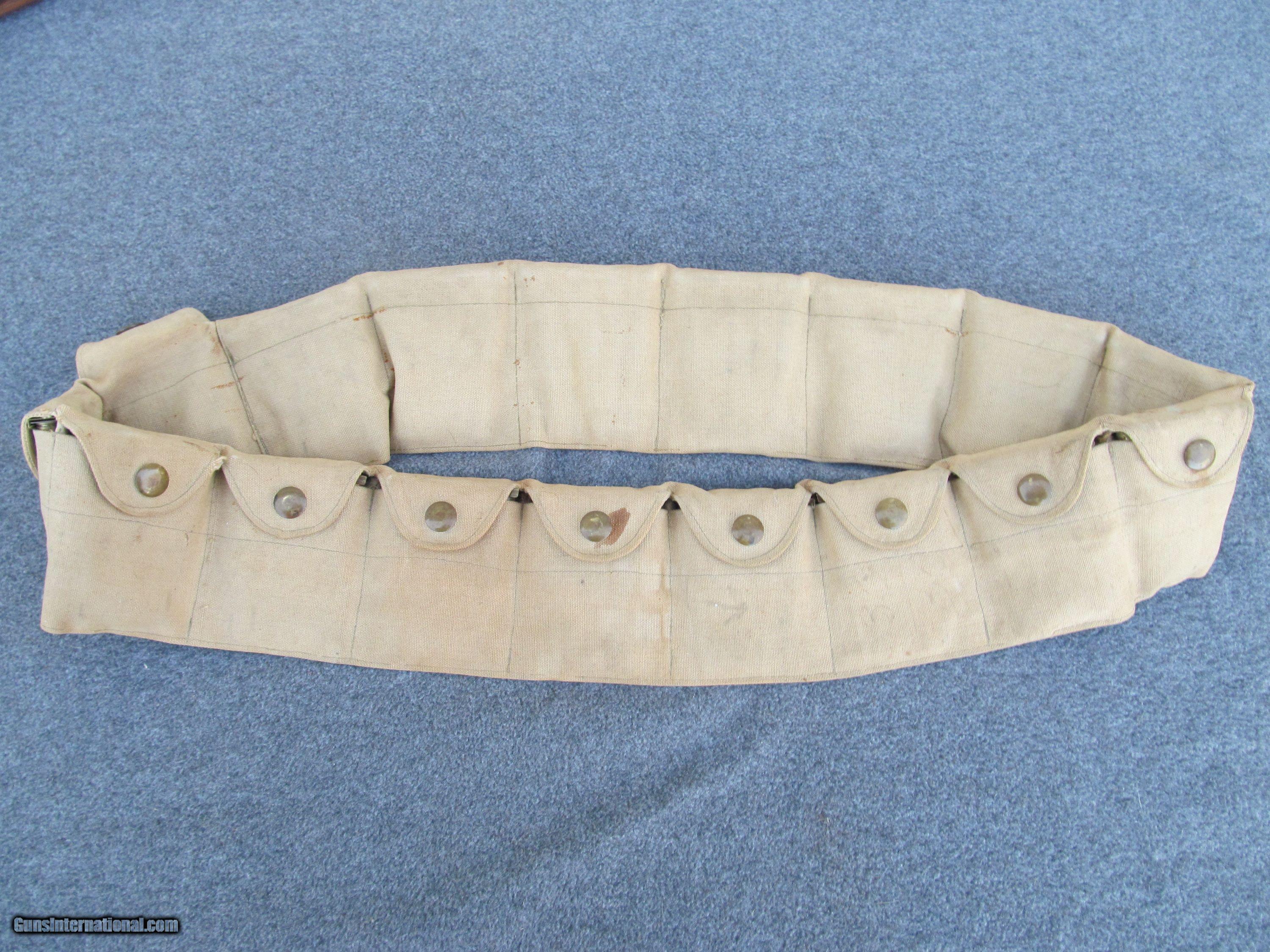 Description: This is a very rare item for the Japanese collector. The caracters written on the inside of the bandoleer are translated to: MA No.1 180 See all photos. This item has been used and hs some soiling and staining. SOLD |