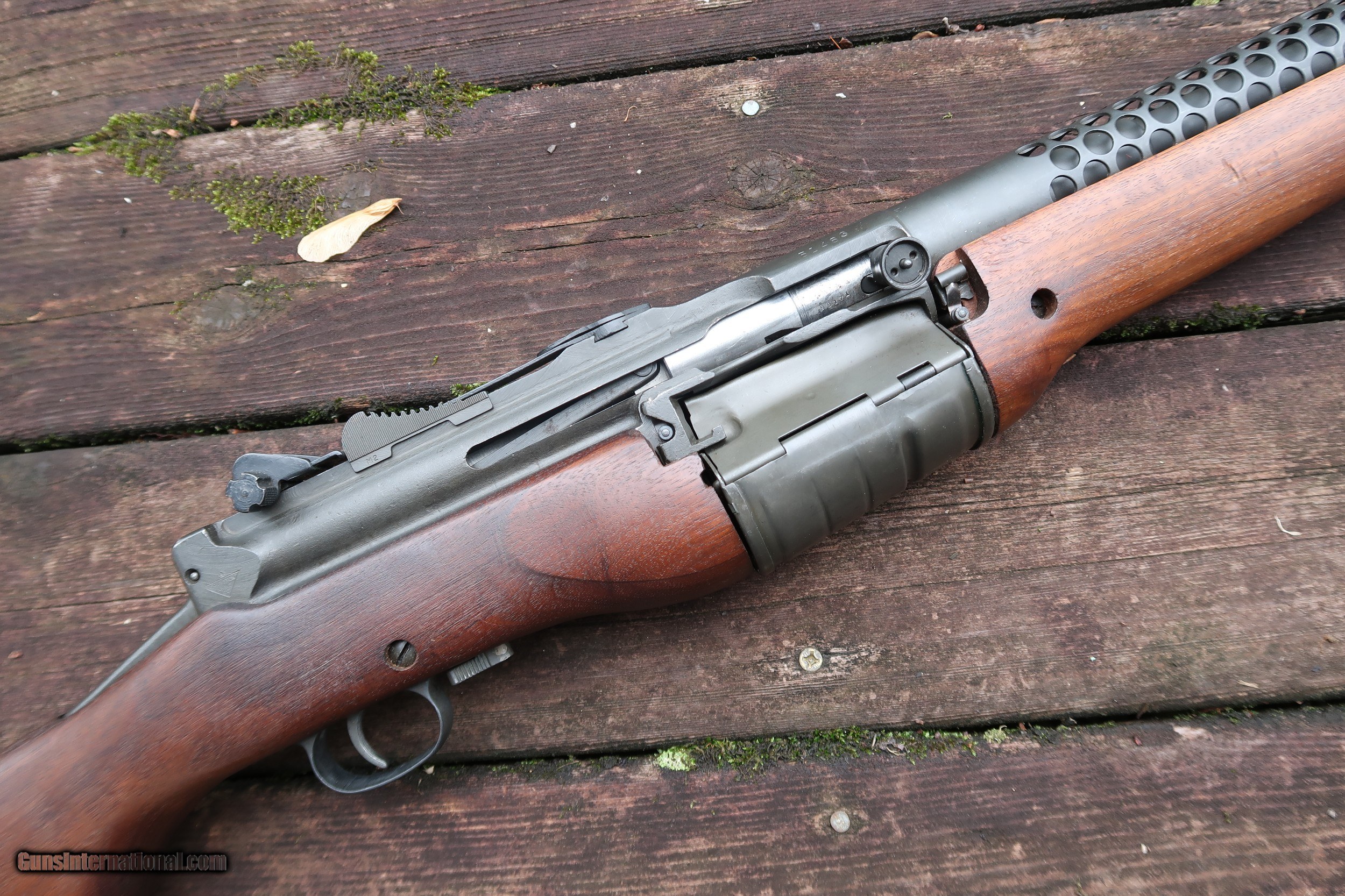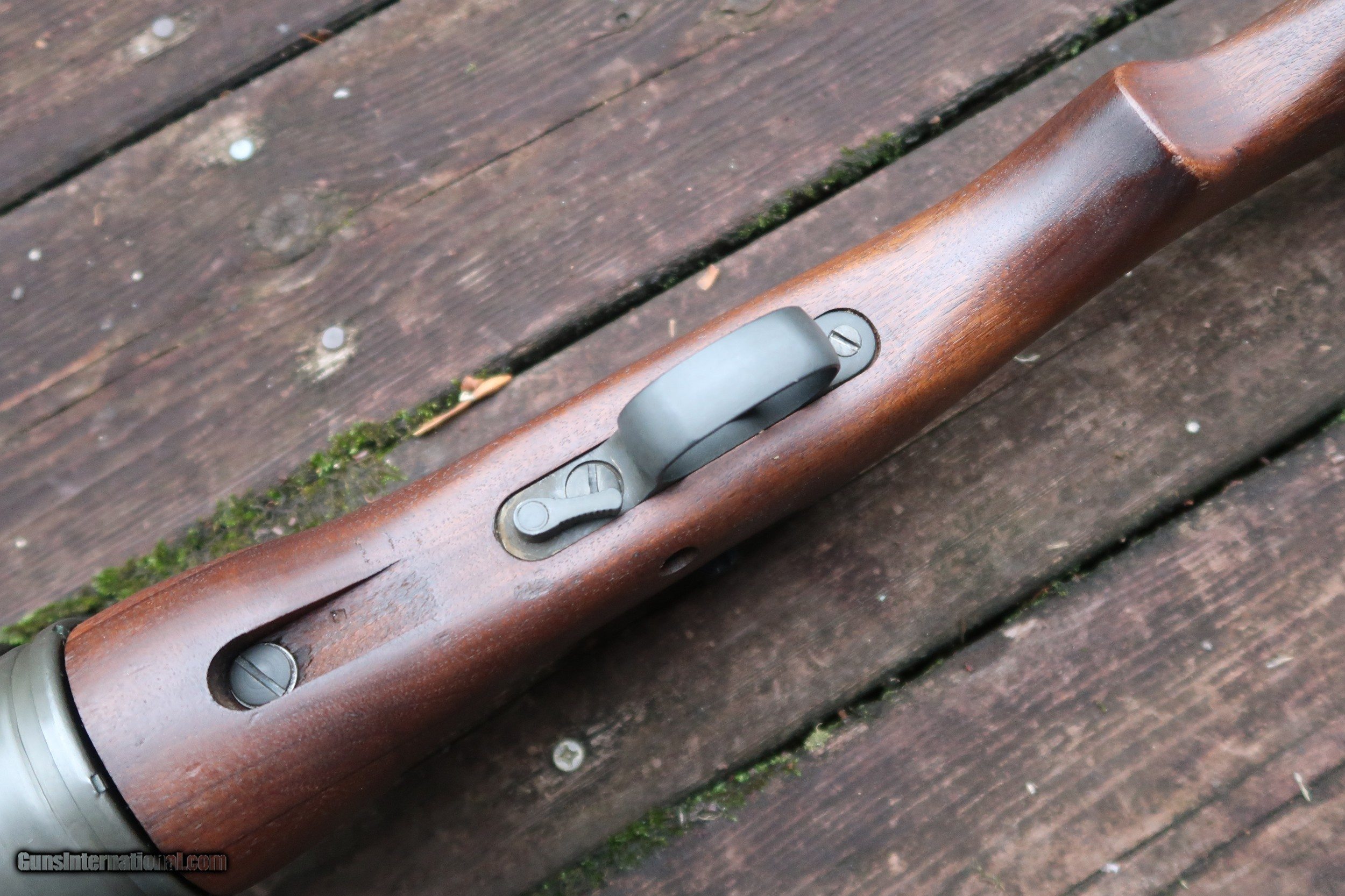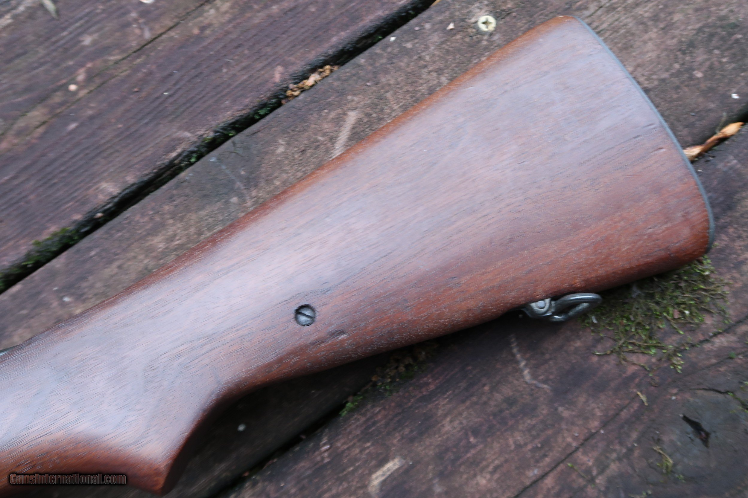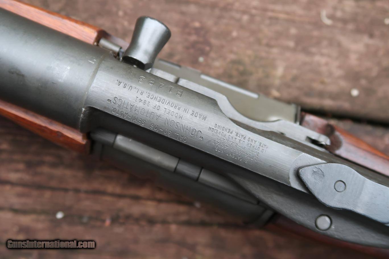 Description: Standard configuration 1941 Johnson rifle in 7mm Mauser, made to fulfill a Chilean contract with 7mm caliber requirement. Except for the barrel, the rifle is otherwise finished and marked as per the standard rifle used during WWII, principally by the Marines in the Pacific. Of the 21,400 rifles that were manufactured, only 1000 were made for Chile in 1943. These guns were assembled with standard parts and a special 7mm barrel made by the National Arsenal in Mexico, then marked on the right rear receiver with “CRANSTON/ARMS/CO” in a triangle below a small five-pointed Dutch star as often seen on Johnson rifles. The top of the receiver is marked "CAL. 30-'06 SEMI-AUTO./"JOHNSON AUTOMATICS"/MODEL OF 1941/MADE IN PROVIDENCE, R.I., U.S.A." As true for virtually all Johnsons, the serial number "B1483" on top of the receiver is separate from the bolt that is numbered "B8171". Standard two piece walnut stock and forend. Synopsis: Outstanding Johnson 1941 Chilean contract rifle, one of 1000 manufactured during WWII. Condition: Stunning 98-99% original parkerized finish with comparable condition wood. Mirror bore. Perfect manual mechanics. It would be virtually impossible to improve upon the condition of this example, sure to please the most advanced collector. ~~Insured shipping fee of $140; most packages shipped using FedEx 2nd Day.~~ SOLD Curio/Relic: Yes Manufacturer: Johnson Serial Number: B1483 Caliber Info: 7mm |