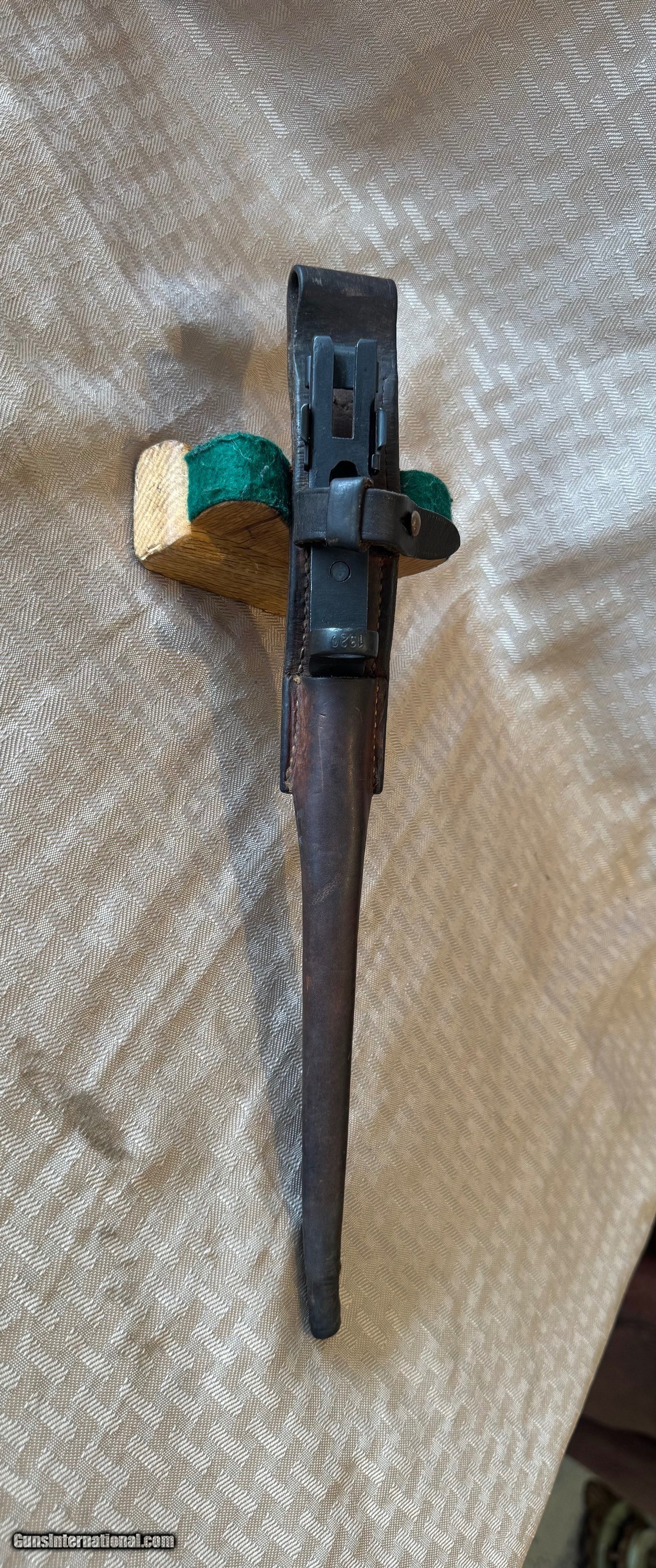 Description: Here's a Excellent Example of a Genuine Johnson Rifle Bayonet with original scabbard! Bayonet is numbered with original scabbard. Both Scabbard and Bayonet are in Excellent Original condition. This is a Original 1941 Johnson Rifle Bayonet with scabbard! Not a Reproduction. It's in Super Nice Condition ! Please review my photos and email me with any questions? 3 day inspection as allways! Thank you for looking, Little Jo SOLD Antique: Yes Manufacturer: Johnson Model: Bayonet Condition: Excellent |