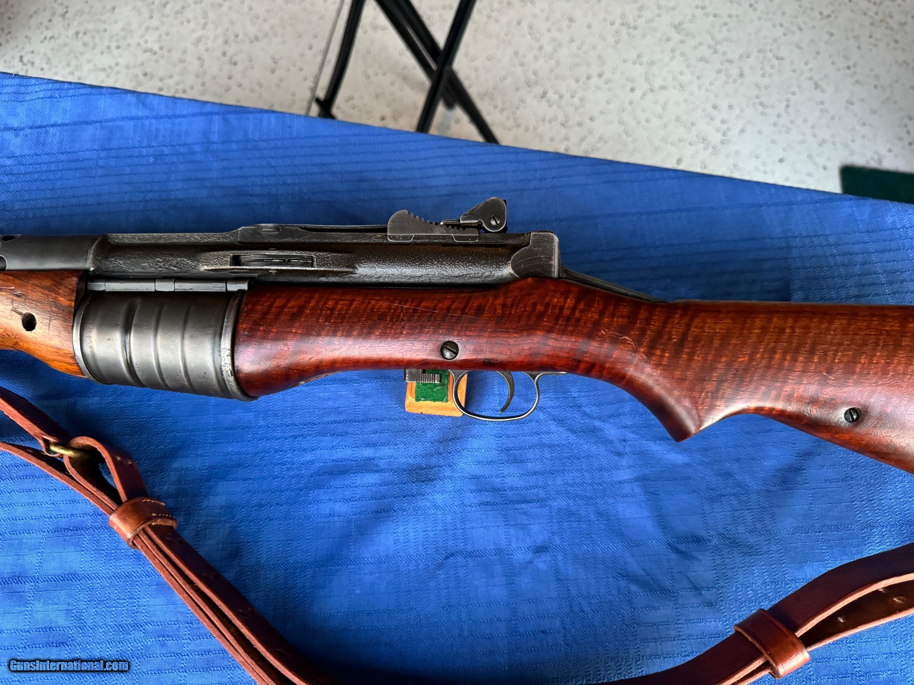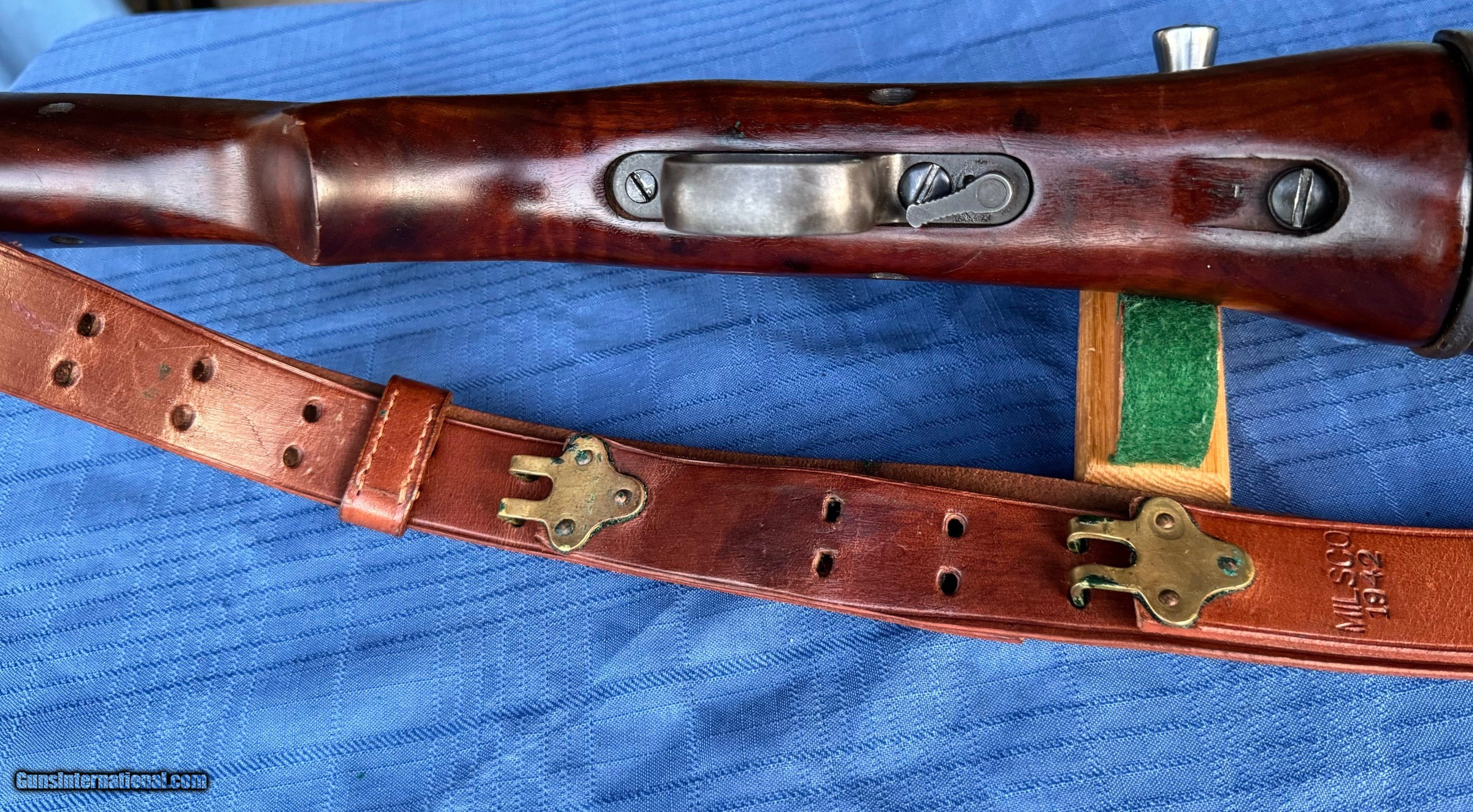 Description: Here's is a Stunning Johnson Rifle WW2 1941 ! Serial number B2270 this gun is in the correct range as the U.S.M.C. Issued Johnson Rifles according to the book . Gun has most all of its military finish still remaining! With some wear and lite scratches . Original sights . Wood is in excellent condition! Wood has some Fantastic Tiger Stripe Grain ! Wood to metal fit is Excellent. Comes with a Milsco 1942 dated sling . And Johnson bayonet . Bore and mechanics are in excellent condition. Gun is in excellent working condition. Super nice WW2 Johnson Automatic Rifle ! Please review my photos and email me with any questions ? 3 day inspection as allways ! Here's a Great Deal on the Holy Grail of all WW2 Weapons ! Thank you for looking, Little Jo SOLD Curio/Relic: Yes Manufacturer: Johnson Model: 1941 Serial Number: B2270 Condition: Excellent Plus |
