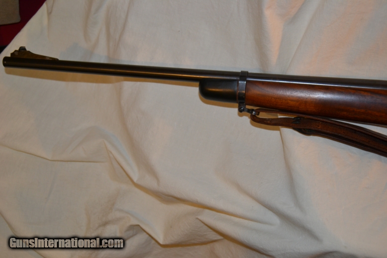 Description: Krag-Jorgensen - Ser No. 385-4XX (1898) Krag-Jorgensen - Carbine w/sporterized & Redfield Peep Sight and barrel length of 24". Good wood w/ pistol grip Barrel bore has twist and average. This gun could be easily rtored to 1998 Carbine w/available KJ stocks online (Ebay). Caliber 30-40 and comes w/2 boxes of remington Clean bore earlier shells. Includes militery leather sling. Blu about 50-60 % , No corrision, Bolt works smooth and tight. SOLD Antique: Yes |