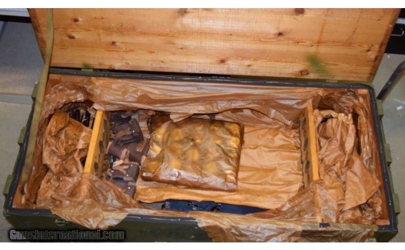 Description: Original wooden shipping crate (20 Qty.) Mosin Nagant rifles consecutively numbered by Importer PW Arms of Redmond WA. Rifles have hex receivers with various markings and stamps dating from WWII and before. This includes 5 line stamping, stars and various other markings. Crate contains bayonets with serial numbers matching guns, ammo pouches, tool pouches, oil cans and slings. Cannot be shipped, must be picked up at the Wheeling WV store. SOLD Manufacturer: WWII Era Caliber Info: 7.62x54R Russian Metal Condition: Very Good Wood Condition: Very Good Bore Condition: Very Good Barrels: 29" with Bayonet Lug Triggers: Original Stock: Smooth Hardwood Stock Dimensions: 13 1/2" LOP Fore End: Smooth Hardwood with Finger Grooves Butt Pad: Metal Butt Plate Weight: 9 LB Sights: Hooded Post Front - Adjustable Military Rear Item Location: Wheeling, WV |