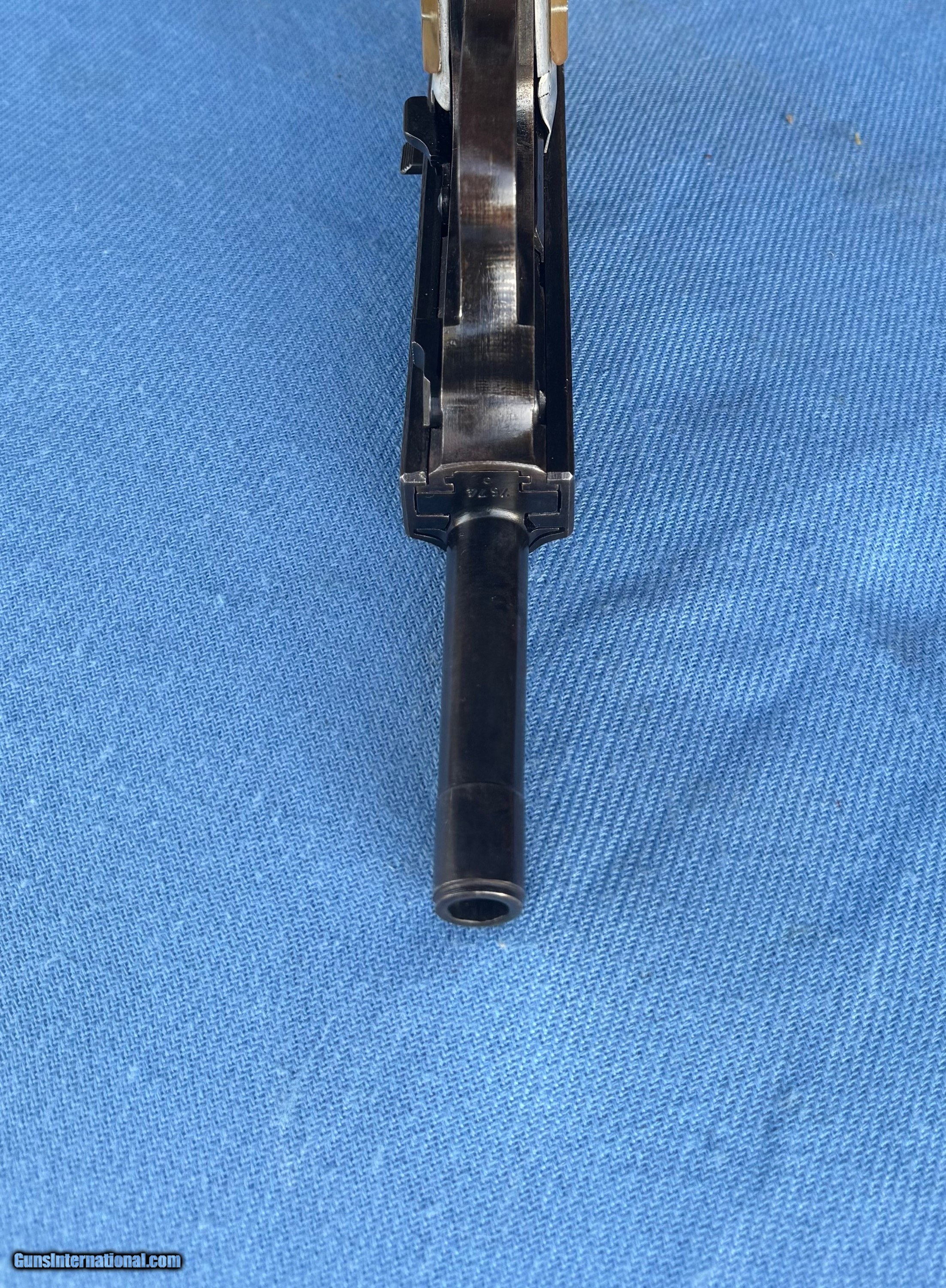 Description: Here's a Excellent Example of a BYF 43 with Sweetheart Grips ! Serial number 7574. All numbers are matching. Top end of gun is a phosphate finish and the bottom is blue .,most all of the original finish is still remaining thinning with some handling marks. Sweetheart grips are in excellent condition.bore and mechanics are in excellent condition! Gun is in excellent working condition. One of the Nicest WW2 P38's with "Sweetheart Grips " I've seen. Please review my photos and email me with any questions? 3 day inspection as allways! Thank you, Little Jo SOLD Curio/Relic: Yes Manufacturer: Walter Model: BYF43 Serial Number: 7574 Condition: Excellent |