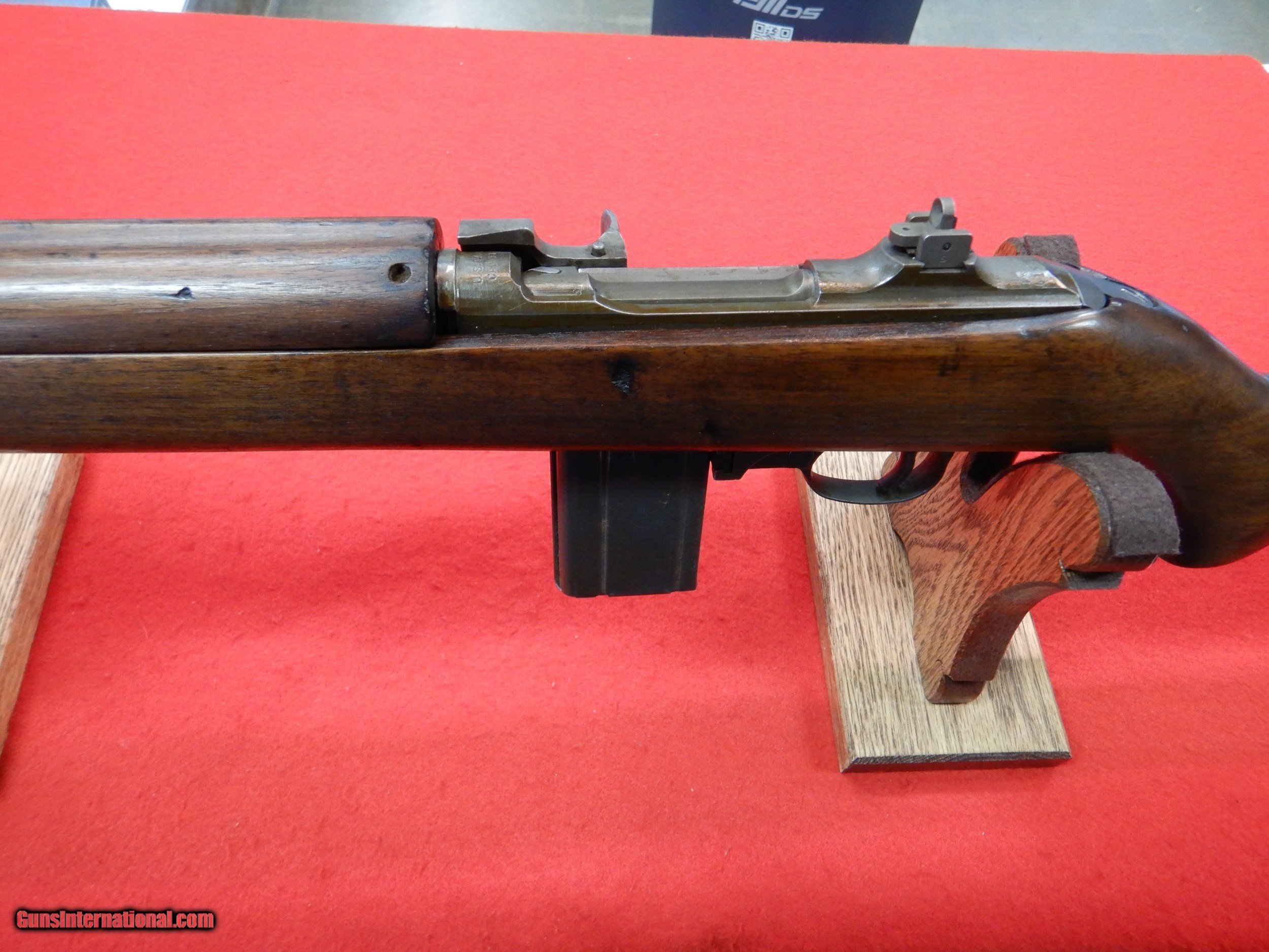 Description: We have a piece of history, a Postal Meter M1 Carbine, some of it's unique history is below, In 1942, as the shock of Pearl Harbor wore off, the war effort in the United States ramped up. There was a need for everything – especially weapons. The U.S. military needed more than 1 million carbines by the end of 1943. Companies that didn’t make weapons started making them. A company in Rochester, N.Y., that made metered mailing machines, postal scales, and letter-handling equipment, was one of them. The U.S. National Postal Meter company didn’t have the equipment, factory, or workers to produce a light, short-barrel rifle when it was awarded a contract, but it managed to produce 413,017 M1 carbines from 1942 to 1944. A U.S. National Postal Meter M1 is in the Feb. 16-18 Sporting and Collector . The company was one of 10 contractors who made the M1 Carbine. An M1 Carbine made by U.S. National Postal Meter Company is part of Lot 4601 in the Feb. 16-18 Sporting and Collector . M1 Carbines Needed The United States military had the semi-automatic M1 Garand rifle but there was a realization that something between a rifle and pistol was needed. The U.S. Army hadn’t had a carbine in use in 44 years. The call went out for a light rifle in 1938. The search for a carbine -- with a requirement that the gun weigh less than five pounds -- began in June, 1940, just 18 months before the attack on Pearl Harbor. The gun’s design was in part created by David Marshall “Carbine” Williams when he was an inmate in a North Carolina prison serving a murder sentence. Fourteen of his patents were used in the gun's design. David Marshall "Carbine" Williams (in the cowboy hat), who was instrumental in the invention of the M1 carbine, and Gen. Douglas MacArthur. The carbine’s design wasn’t adopted until October, 1941, when the early requirement was for 886,698 M1 carbines. That changed when the United States entered World War II. The War Munitions Program drafted in February, 1942 made the need for carbines far more urgent. Inland Manufacturing, Winchester Can’t Meet Demand Winchester, heavily involved in the carbine’s design, and Inland Manufacturing, a division of General Motors, were given the initial contracts to produce the guns but were unable to meet the suddenly increased demand. Companies with no gun-making experience were called upon for production. They included jukebox manufacturer Rock-Ola, typewriter company Underwood, business equipment maker IBM, and a postage equipment producer. Baby Furniture Maker, Other Companies Called On National Postal Meter’s carbines were made with parts mostly manufactured by other companies. Among these were New Haven Clock Company, National Lock Company, and Trimble Nurseryland Furniture Company, located about 6.5 miles away from National Postal in Rochester, that made baby furniture. Rochester is home to companies like Eastman-Kodak and Bausch + Lomb, and by some estimates manufactured as much as 75 percent of the optical equipment used by the U.S. Navy and U.S. Army during the war. The Folmer-Graflex camera Joe Rosenthal used to snap the picture of the U.S. Marines raising the flag atop Mount Suribachi on Iwo Jima was made in Rochester. By war’s end, Rochester companies had received about $1.2 billion in military orders. Raising of the flag atop Mount Suribachi on Iwo Jima. When the war started, Rochester mobilized. Industrial employment doubled, infused with students, minorities, and especially women. The number of women working in Rochester grew from 25,000 to 48,000 by war’s end. That included National Postal Meter. The company newsletter, Metered Impressions, while leading with news of guns, ammunition, and production times, also featured employees, splitting them between men and women. An article from the Rochester Democrat & Chronicle from January, 2018 noted women featured included a mother of six, one of whom served in the navy, a hairdresser, and a mother of three young children. A soldier props his M1 carbine against a fence post during a break. M1 Carbines from National Postal Meter But what about the company and their guns, you ask? The company received a contract to manufacture M1 carbines in April, 1942. It obtained a former automobile showroom and repair shop and drew supervisory and engineering personnel from across the country. National Postal Meter laid out a production line and did preliminary engineering and production. Each company had to provide 10 guns for production tests that included physical inspection along with accuracy, endurance, dust, mud, and rain. National Postal Meter delivered a pilot lot of five guns in January, 1943. Supreme Allied Commander Dwight Eisenhower, British Prime Minister Winston Churchill and U.S. Gen. Omar Bradley try out M1 carbines. The test guns were received as dirty, according to reports, with carbon present on the bolt and extractor and traces of light rust on the magazine catch spring on three of the guns. That said, their accuracy was satisfactory and endurance was excellent. The guns stood up well to excessive dust but were inoperative in excessive mud. They did well in a rain test and didn’t “freeze.” The National Postal Meter carbine stood up to rain better than any other company’s carbine tested up to that time. It was recommended for further study to determine why they did so well in the rain but no results were reported. The first lot of 1,000 was delivered the following month. The company reached its maximum production level of 45,500 carbines per month in December, 1943. The guns were made with barrels produced by Underwood and the stock assembly and hand guard manufactured by Trimble. When the company took on the contract, it was determined that National Postal Meter would make only the receiver, the operating slide, the bolt, and the trigger housing. The government furnished the barrels (mostly made by Underwood) and subcontracted out the other parts – hence