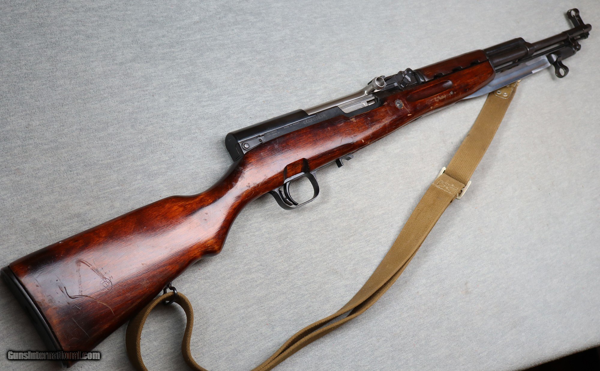 Description: The SKS is a semi-automatic carbine designed by Soviet small arms designer Sergei Gavrilovich Simonov in the 1940s. The SKS was first produced in the Soviet Union but was later widely exported and manufactured by various nations. Its distinguishing characteristics include a permanently attached folding bayonet. It was rendered obsolete in the Soviet Armed Forces by the introduction of the AK-47 in the 1950s. Nevertheless, SKS carbines continued to see service with the Soviet Border Troops and second-line and reserve army units for decades. Altogether, the Soviet Union produced 2.7 million SKS carbines. This example does not come with a magazine but does have a sling attached. Finish is good with the rifle showing normal wear. 7.62X39mm Curio/Relic: Yes Metal Condition: good Wood Condition: good Bore Condition: bright Barrels: 20.5" barrel Stock Dimensions: 12.5 Fore End: smooth wood Butt Pad: metal Weight: 8 lbs Sights: "Iron sights graduated from 100 to 1,000 meters Item Location: La Vista, NE Price: $649.99 Contact Seller |