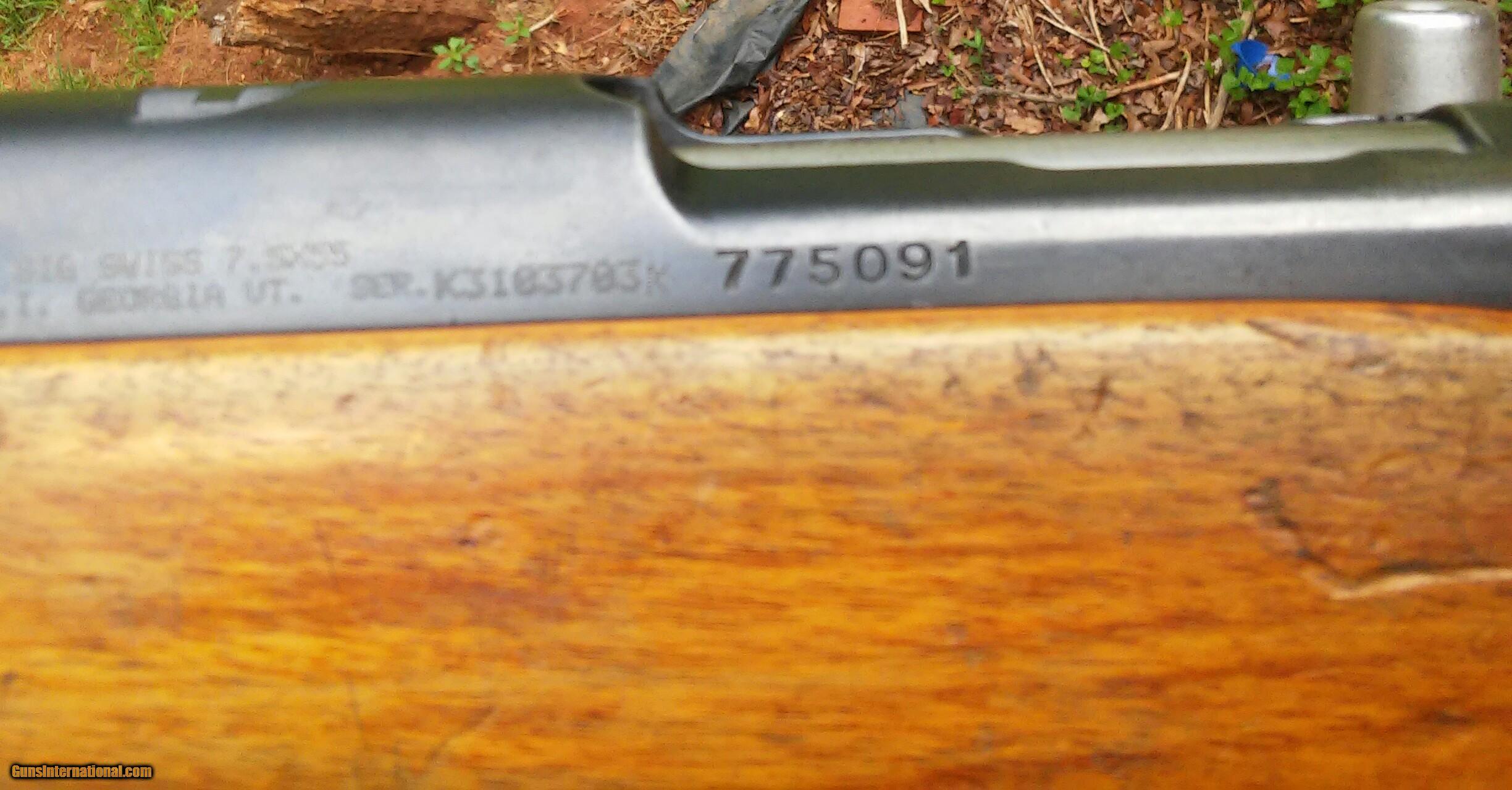 Description: This k31 is in very very good shape. All the numbers match. Very accurate. The reputation of these rifles are true. This one is dead on. SOLD Curio/Relic: Yes Manufacturer: Swiss made Model: k31 Serial Number: 775091 Caliber Info: 7.5x55 Bore: Excellent Chambers: Excellent Ejectors: Excellent Condition: Good Metal Condition: Excellent Wood Condition: Good Bore Condition: Excellent Barrels: Excellent Action: Straight pull bolt Triggers: Tight |