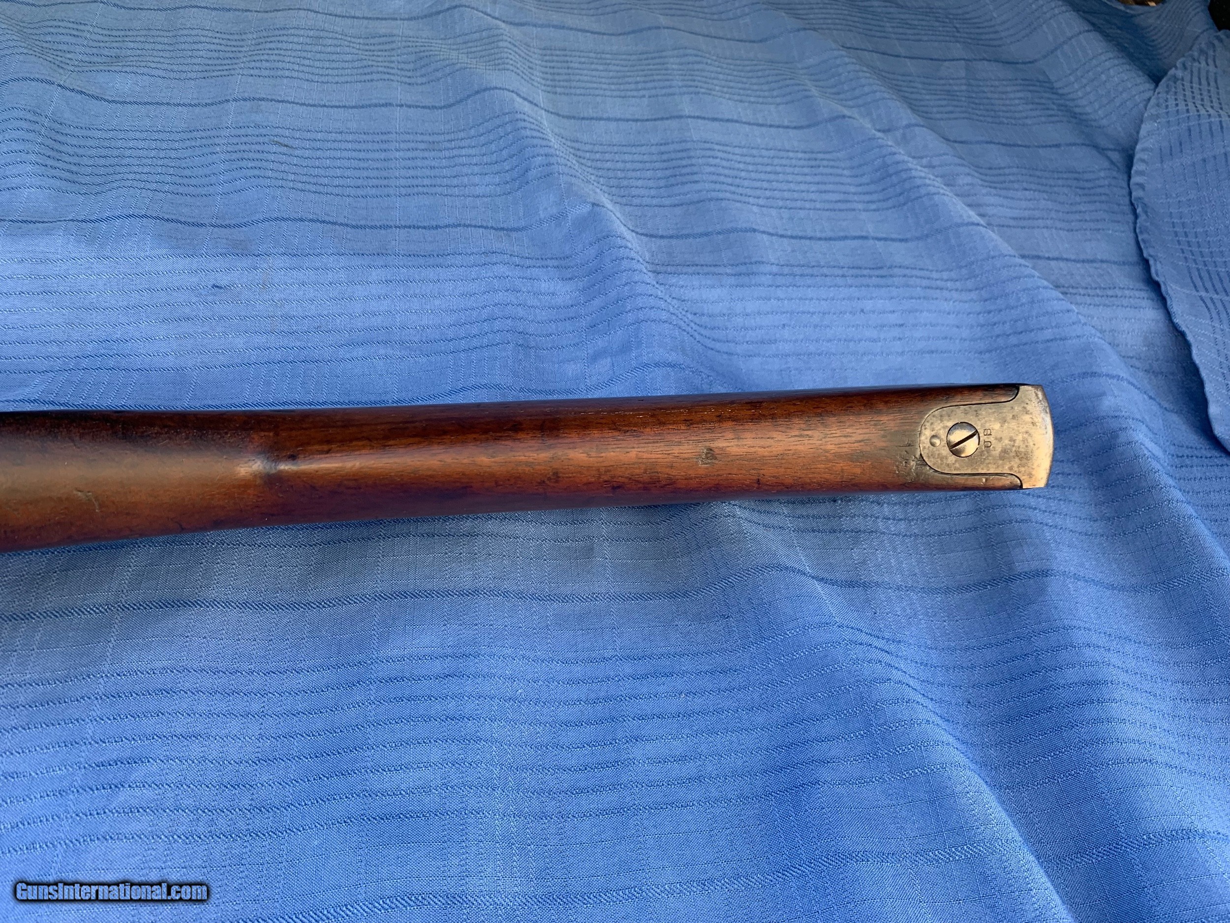 Description: Very nice Example of a True 1873 Trapdoor Saddle Ring Carbine ! Serial number 189229. Gun is In overall excellent condition! Barrel has all of the solid blue still remaining! Thinning but still bright . Some light handling marks . Frame and trapdoor also have all there original finish still remaining! Vivid Case Colors are remaining! Original wood stock is in excellent condition with handling marks . Cartouche is not visible. Outline partial visible . Wood to metal fit is Excellent . Gun has correct "C" marked rear sight and correct front sight . Correct original saddle ring still remaining. Correct carbine Butt plate . This is a all correct and original 1873 Trapdoor Carbine! Bore and mechanics are in excellent condition. Gun is in excellent working order. Please review my photos and please email me with any questions ? 3 day inspection as allways! Thank you for looking, Little Jo SOLD Antique: Yes Rifle Caliber: .45-70 Government Manufacturer: Springfield Model: 1873 Trapdoor Serial Number: 189229 Condition: Excellent |