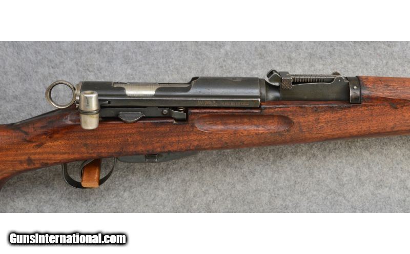 Description: Fair condition overall with handling wear. Has a 6 round capacity magazine. SOLD Curio/Relic: Yes Manufacturer: Circa: 1933 to 1958 Caliber Info: 7.5x55mm Metal Condition: Fair Wood Condition: Fair Bore Condition: Fair Barrels: 25.7 Triggers: Double Stage Military Style Stock: Military Style Pistol Grip Wood Stock Stock Dimensions: LOP: 12 5/8 Fore End: Wood Military Style Fore Arm Butt Pad: Steel Butt Plate Weight: 9 lbs. Sights: 1500 Meter Adjustable Rear Sight with a Blade Front Sight Item Location: Hamburg, PA |