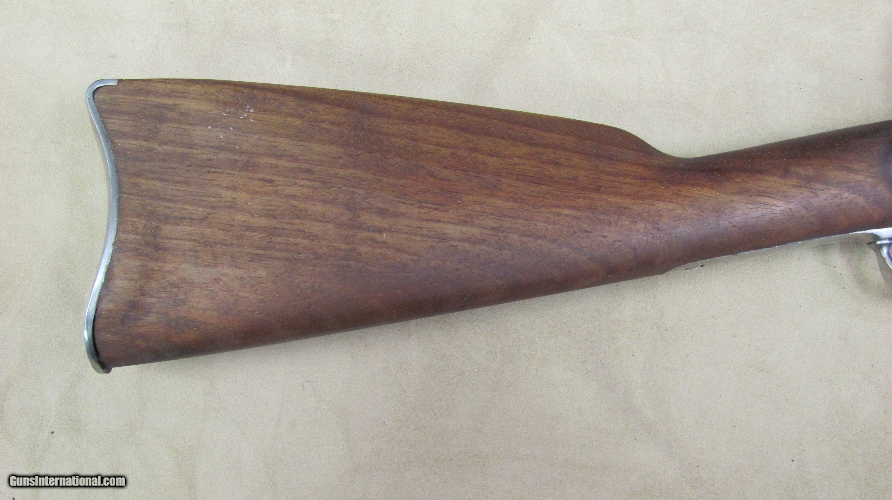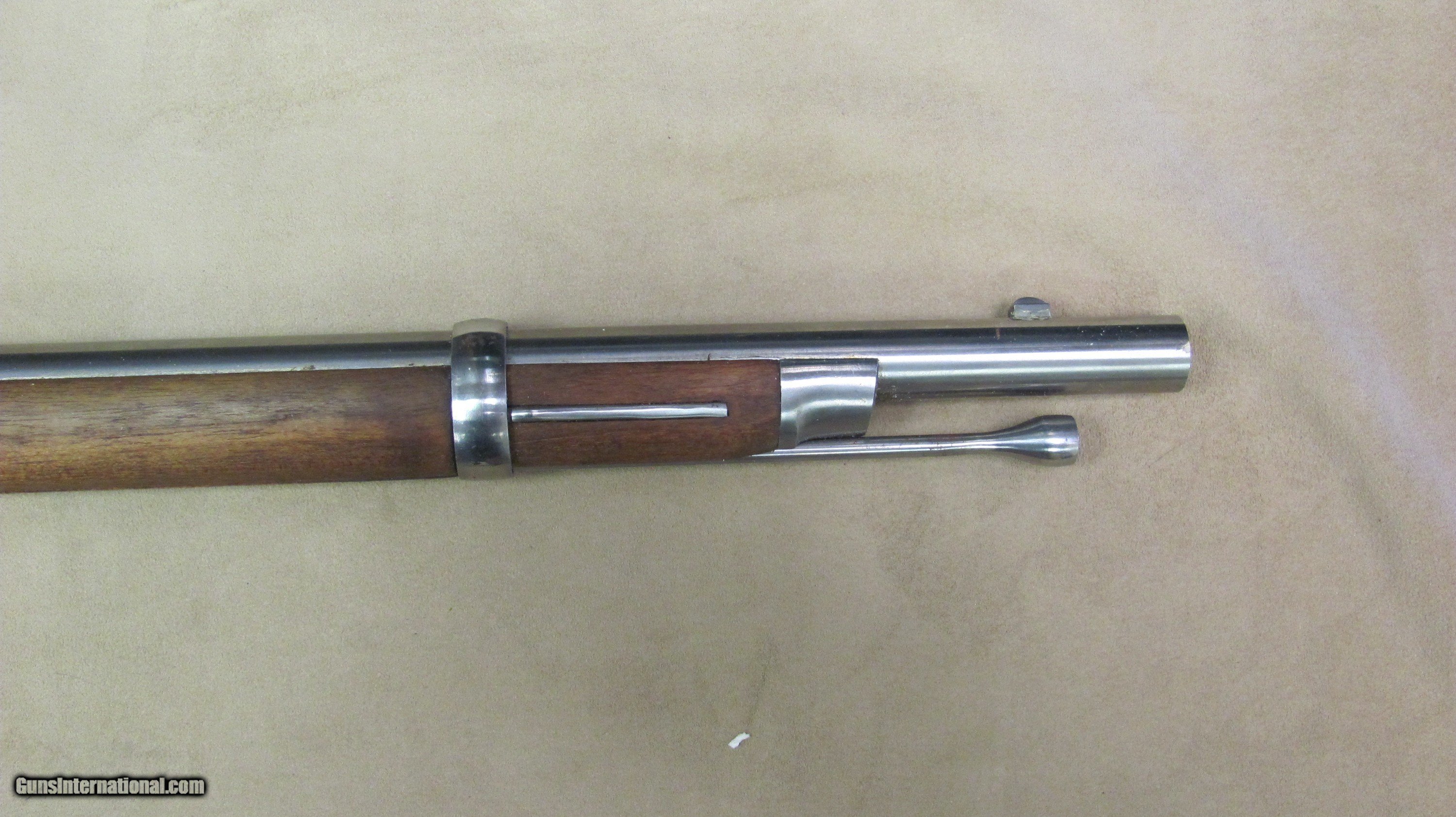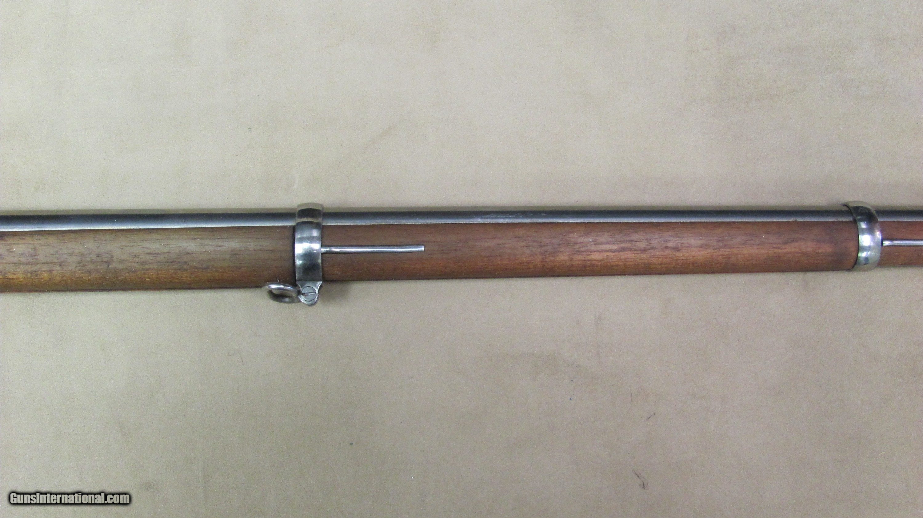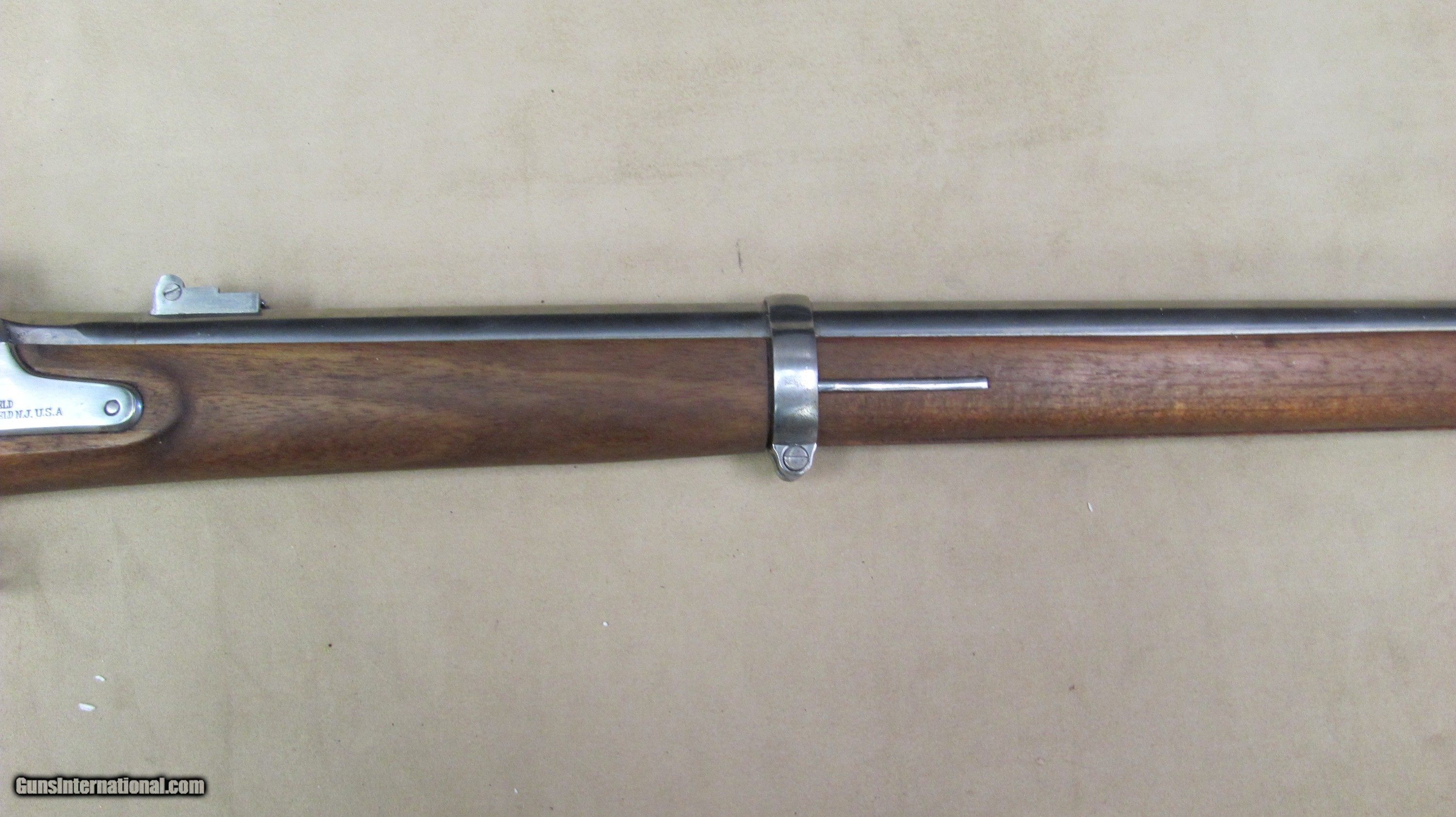 Description: This rifle musket is a Navy Arms, Ridgefield, NJ, authentic replica of the Springfield Model U.S. 1863. It is .58 caliber and the serial number is 1541. It is unfired and as new, with the original box it came in. All metal parts are finished bright except the case hardened lock. Eagle motif on the bolster and lock with a 1864 date on the lock. This was the last U.S. martial regulation for the muzzle-loading design. It was used extensively during the Civil War. A historically important firearm. SOLD Rifle Caliber: .58 Manufacturer: Made for Navy Arms Model: Springfield Model U.S. 1863 Serial Number: 1541 Condition: Excellent Metal Condition: Excellent Wood Condition: Excellent Bore Condition: Excellent |