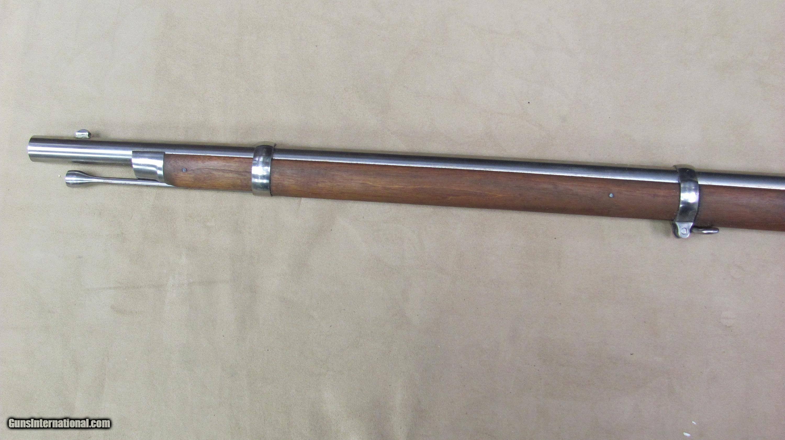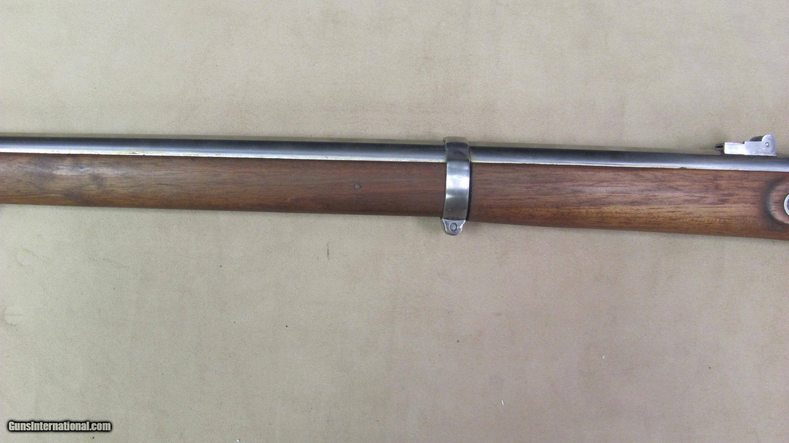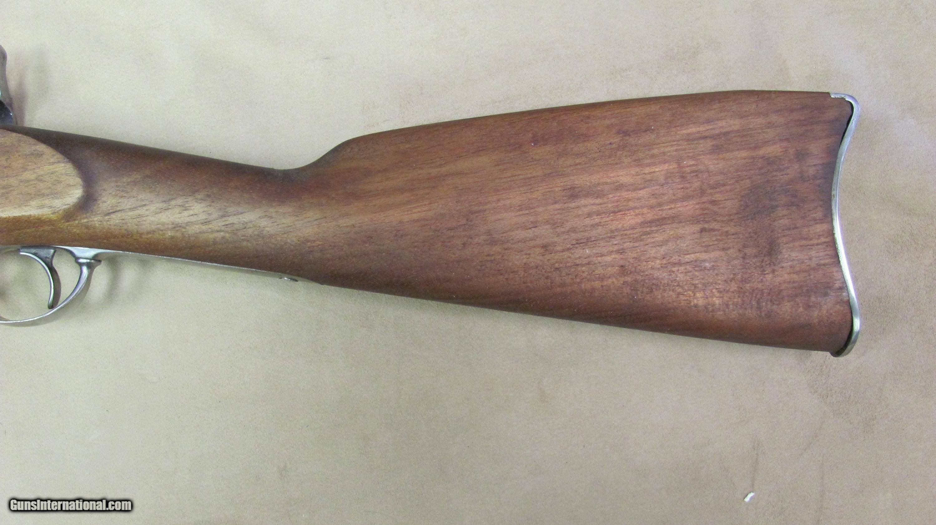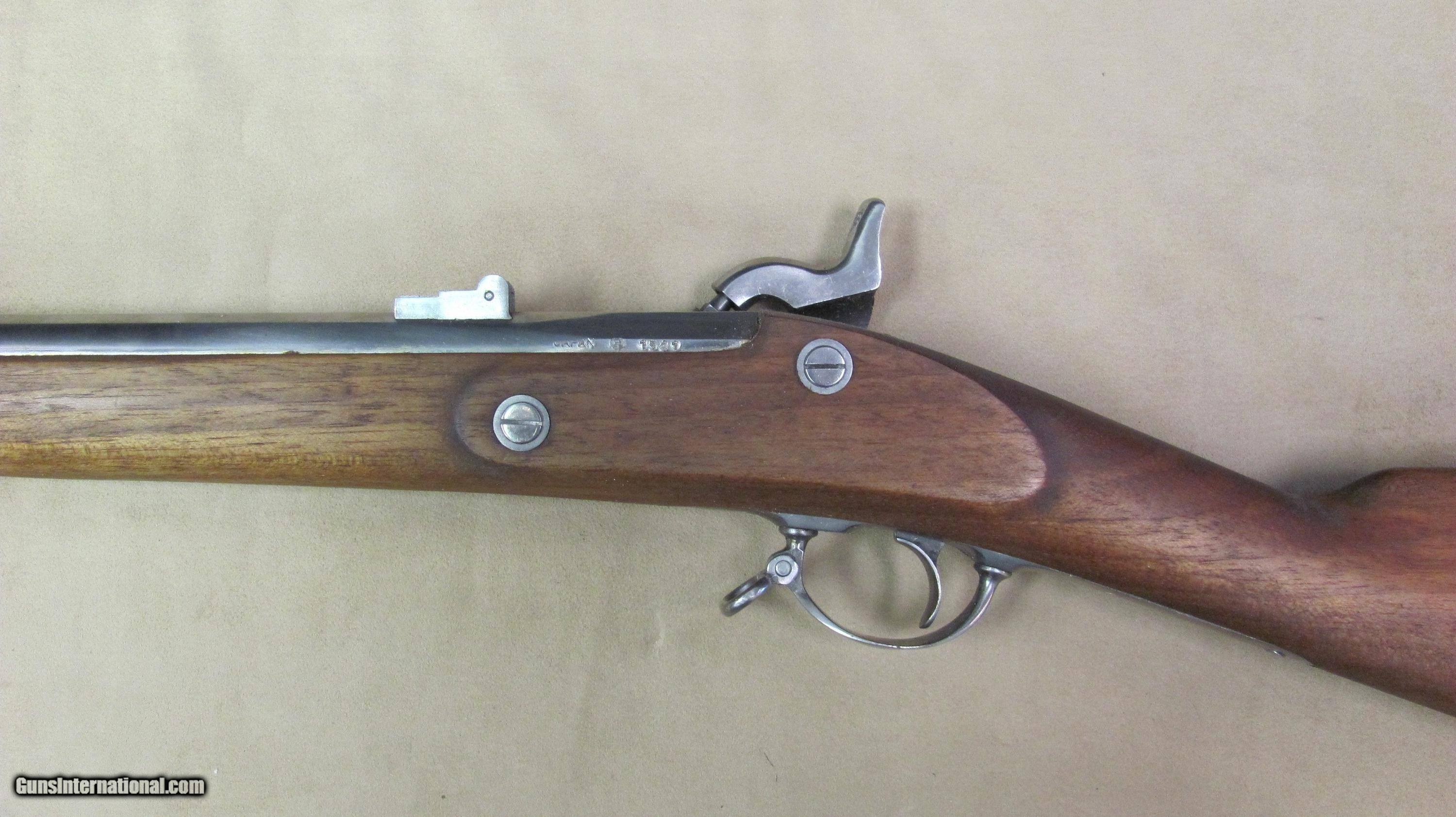 Description: This rifle musket is a Navy Arms, Ridgefield, NJ, authentic replica of the Springfield Model U.S. 1863. It is .58 caliber and the serial number is 1541. It is unfired and as new, with the original box it came in. All metal parts are finished bright except the case hardened lock. Eagle motif on the bolster and lock with a 1864 date on the lock. This was the last U.S. martial regulation for the muzzle-loading design. It was used extensively during the Civil War. A historically important firearm. SOLD Rifle Caliber: .58 Manufacturer: Made for Navy Arms Model: Springfield Model U.S. 1863 Serial Number: 1541 Condition: Excellent Metal Condition: Excellent Wood Condition: Excellent Bore Condition: Excellent |