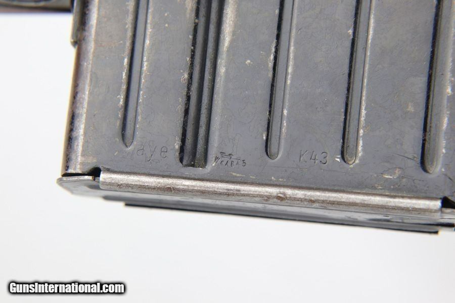 Description: This is a very nice Walther G43 sniper rifle, marked ac 44 on the receiver. All numbered parts are matching, including the stock. The rifle is all original and correct, with multiple proper waffen proofs on the stock, receiver and scope mount. Rifle has proper cleaning rod and site hood present. Original magazine is K43 marked with maker 'aye' and WaA843 markings on left side. The mount is original and has Walther WaA359 proofs. Scope is WW2 original, with nice, clear optics. Marked K43, then ddx. The stock is in very good, original condition no major cracks or chips, and has never been sanded. It is clearly serialized to the gun and has a strong waffen stamp. The bore has strong rifling with only minor frosting. The butt stock is empty. Original sling. No import marks. SOLD Curio/Relic: Yes Rifle Caliber: 7.92x57mm Mauser Manufacturer: Walther Model: G43 Serial Number: 7159a Condition: ~90% Bore Condition: 8/10 Manufacture Date: 1944 |