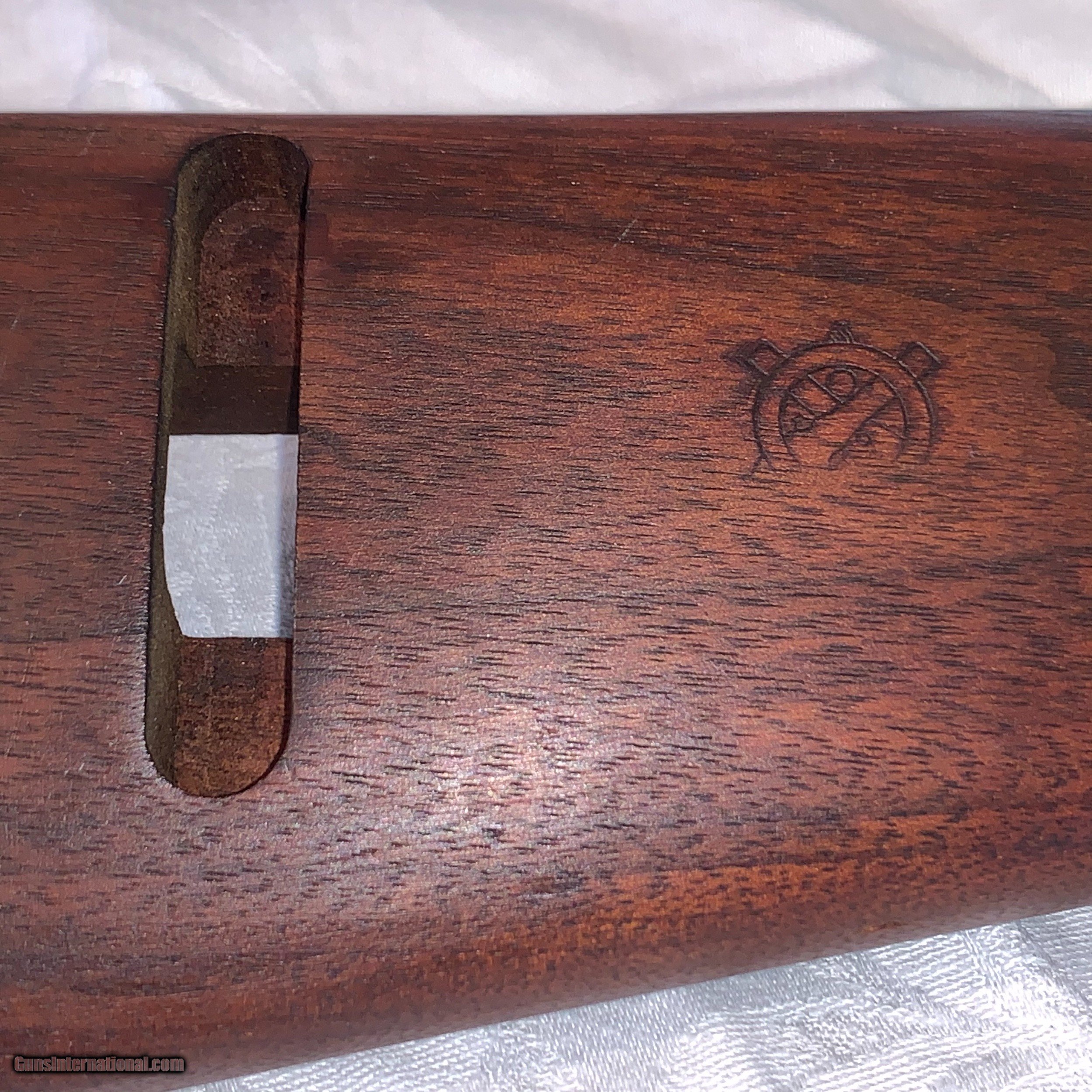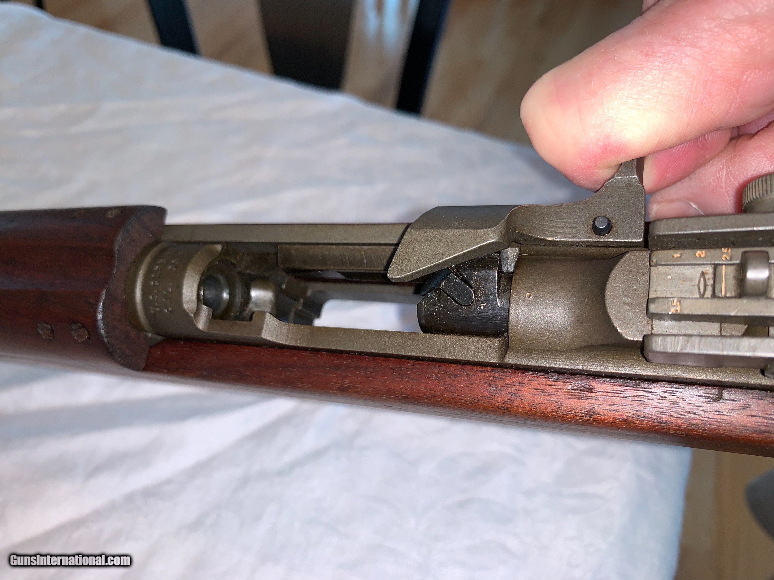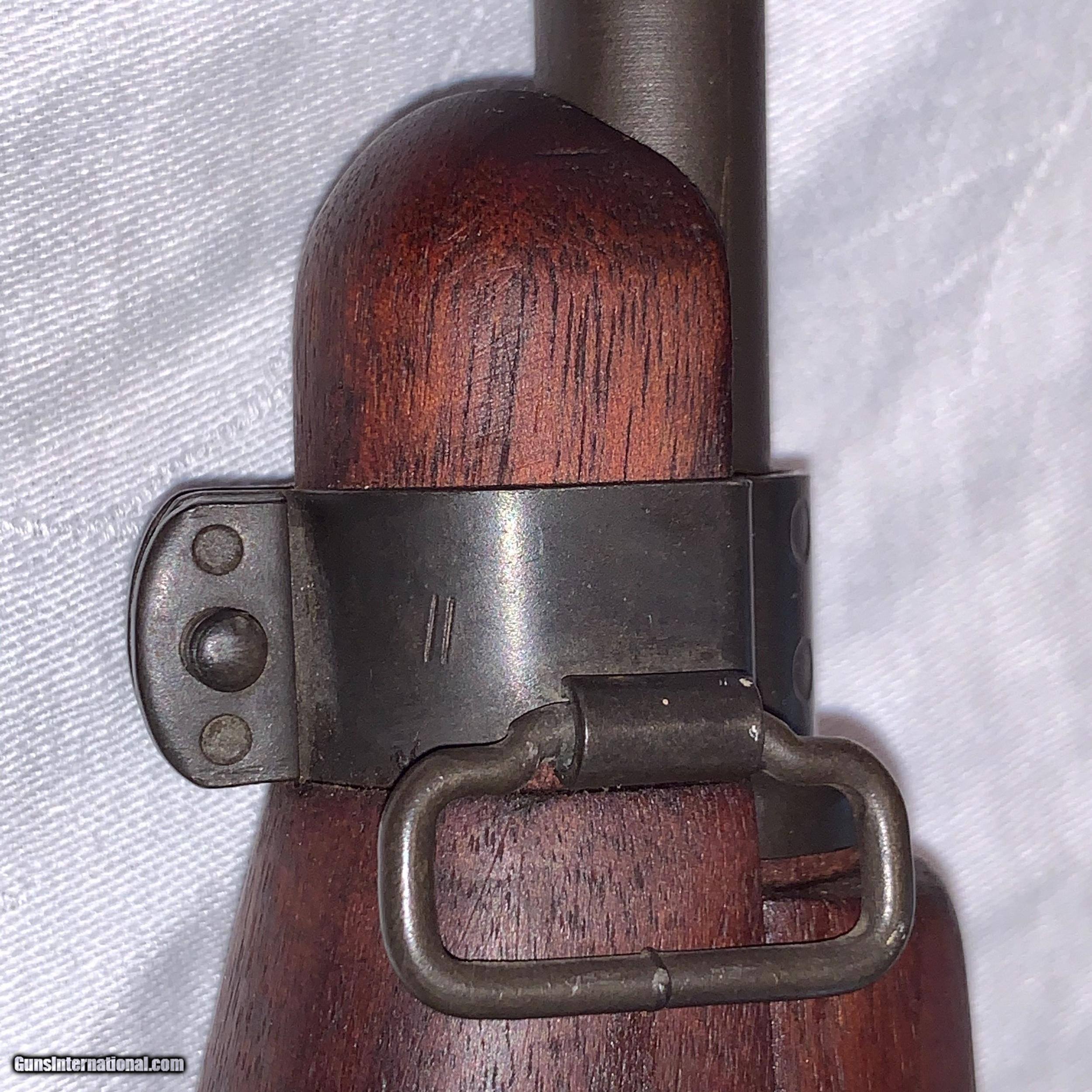 Description: M1 Carbine semi-automatic rifle — Manufactured by Inland Div. The carbine's serial number is 5372179; Barrel markings are Inland Mfg. Div., General Motors, 7-44. Carbine has been in the family since purchase from NRA in 1963; has been in storage and not used since 1984. Carbine has a type III low wood walnut stock in very good condition with only several light blemishes. The stock has the ordnance wheel on the right side near the oiler cut out. Bottom of pistol grip is marked with a Y. Very visible I0 stamped in the oval cut sling slot. Square checkered butt plate. Sliding ramp-type adjustable rear sight is marked PI, also for Inland. The handguard is the 4 rivet late style. It has the type 2 barrel band. Weapon does not have a bayonet lug. Proof mark "p" on top of barrel approximately 2" from barrel band. No obvious markings on front sight. The barrel has a mirror bright clean bore with strong rifling. Plain unmarked push button type safety. Magazine release tab is marked with M on face. Magazine is 15 round marked BW. No indication of reimportation or arsenal rebuild. Carbine looks original but I have not broken it down to clean and inspect it. Overall, the carbine's condition is very good to excellent. Shipping charge is $35.00 plus insurance SOLD Curio/Relic: Yes Rifle Caliber: .30 Carbine Manufacturer: Inland Div Model: M1 Serial Number: 5372179 Condition: very good to excellent Metal Condition: very good Wood Condition: very good Bore Condition: mirror finish |