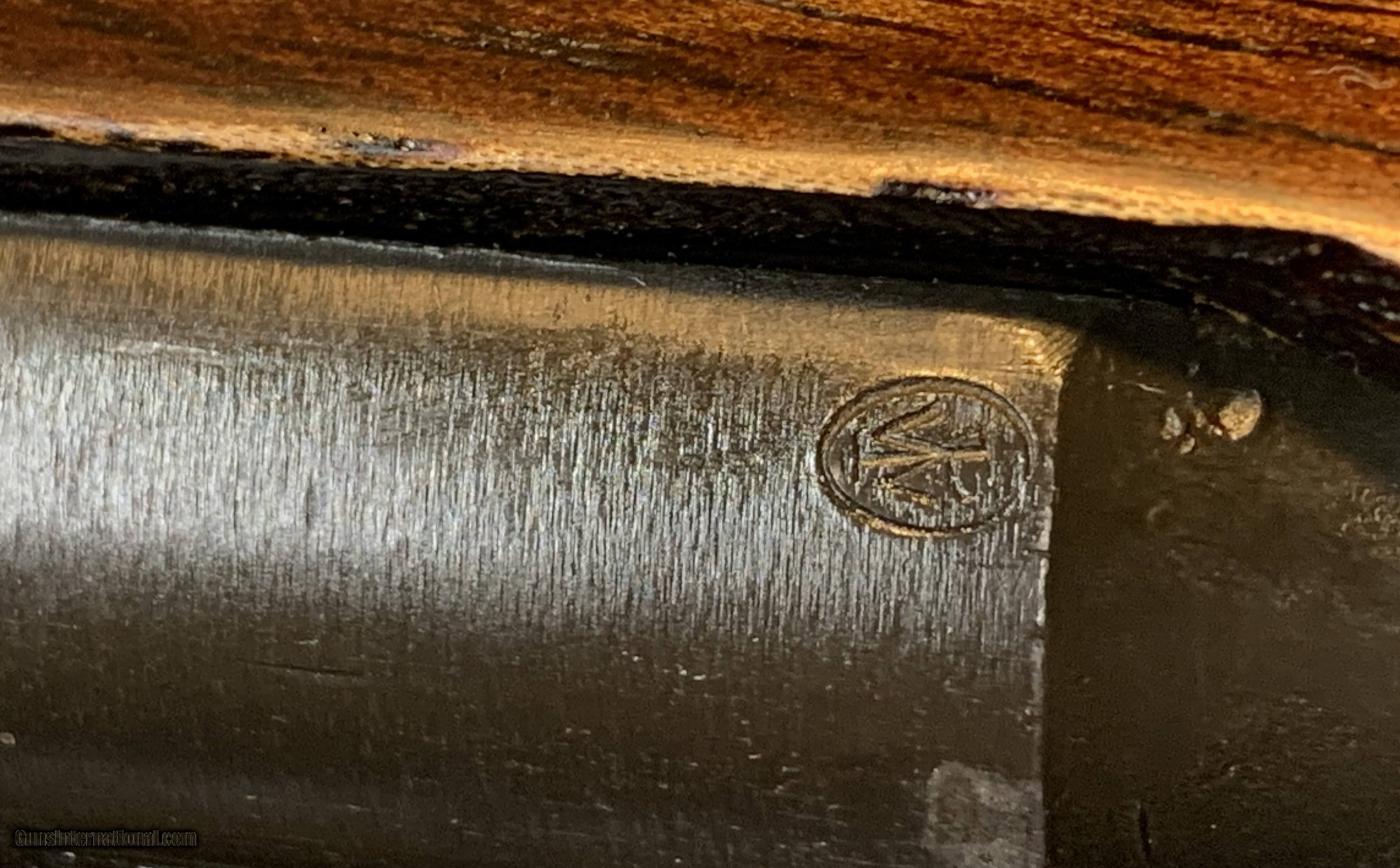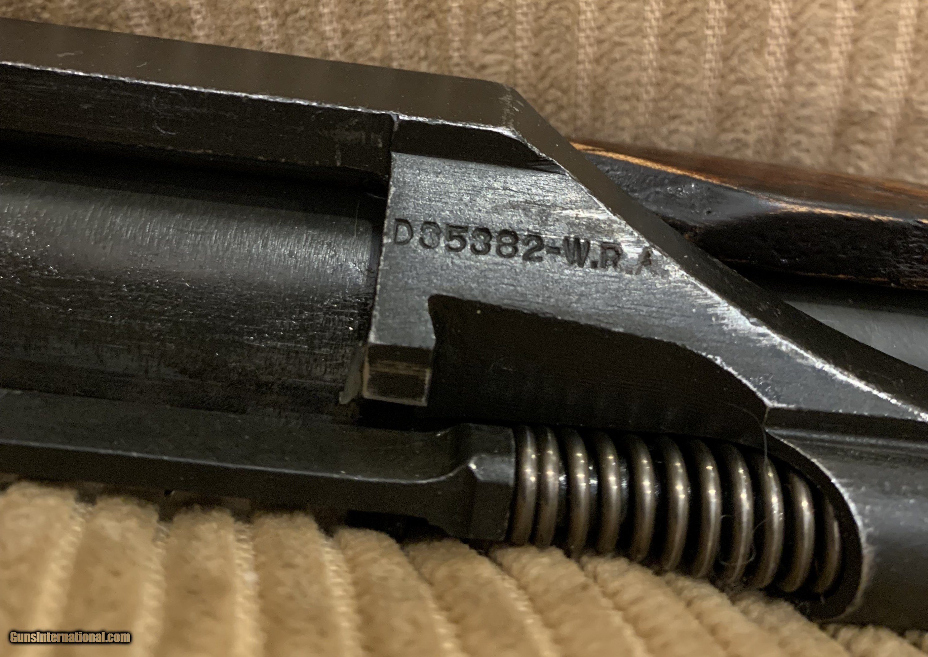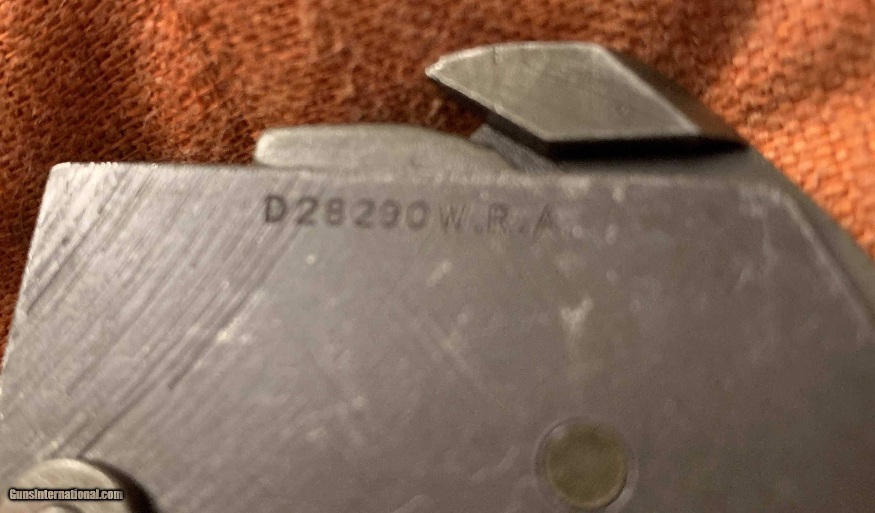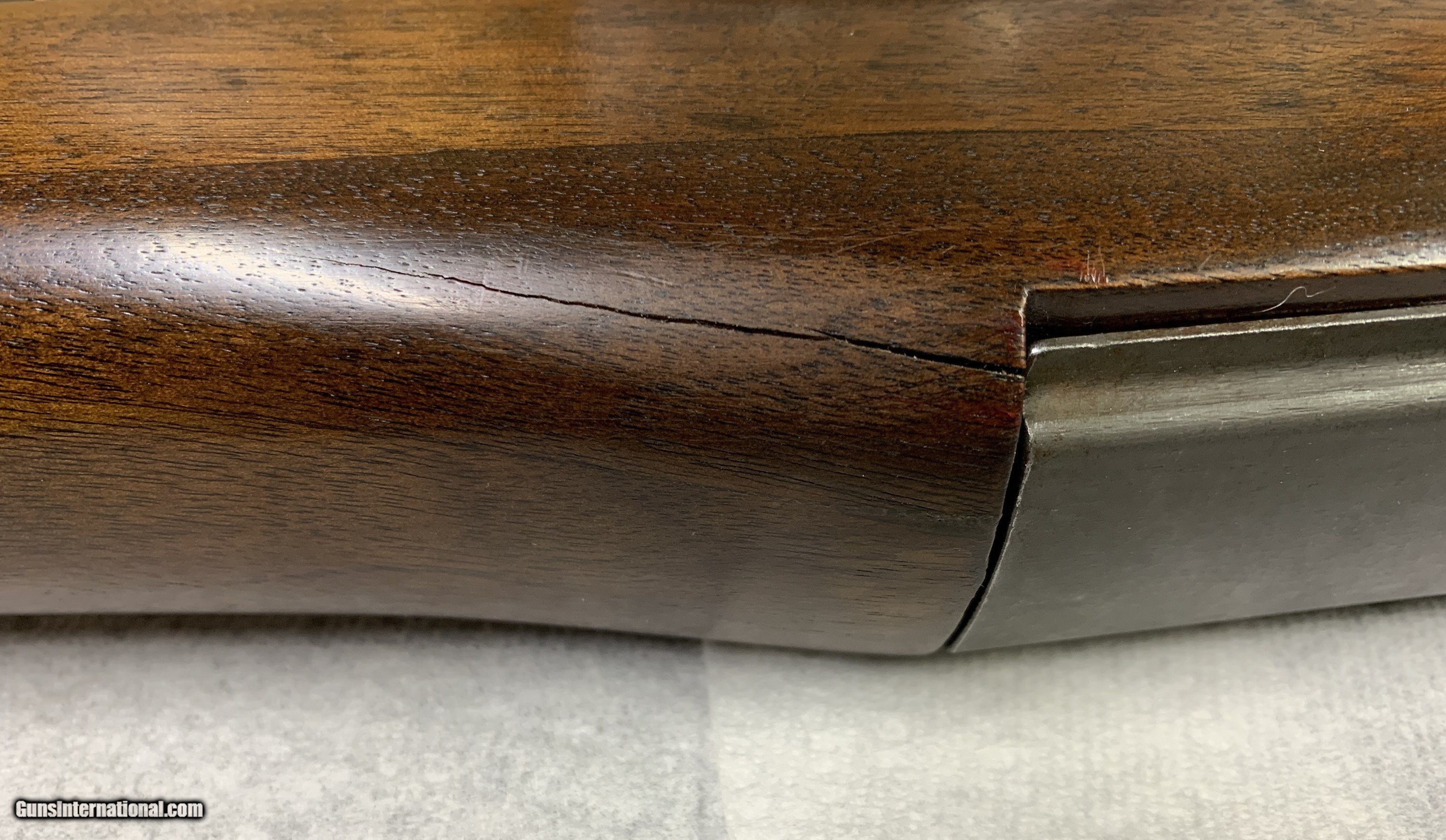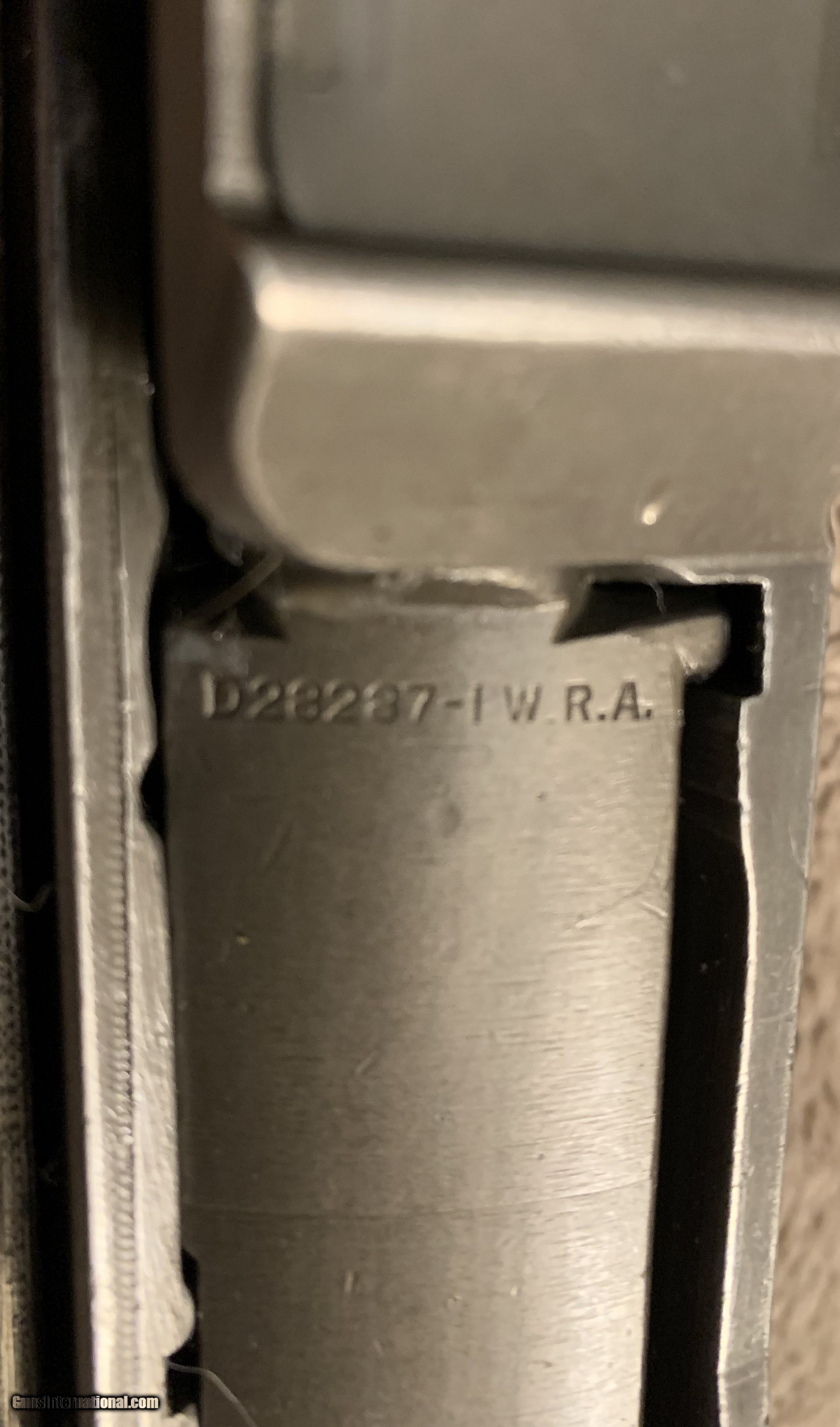Description: M1 Garand by Winchester Serial #2535439 MFR date: Jan 1945 The rifle has been restored, but remains 100% Winchester. Including the barrel and stock. In order to maintain the originality of having it's original Winchester stock, it needed some repairs (which were nicely done) but still has one that needs repair. (see pics lower left forward of floor plate) The Winchester barrel has been gauged for erosion showing 2 1/2 throat, 1 1/2 muzzle. (pics available) It has the milled (WRA) trigger guard and the Lock Bar rear sight has been retained Additional pictures of all the internal parts are avaiable upon request. A very nice rifle offered under market value at $2600. Payment by postal money order or certified check only Buyer pays actual shipping cost SOLD Curio/Relic: Yes Rifle Caliber: .30-06 Springfield Manufacturer: Winchester Model: M1 Garand Barrel Length: 24 Condition: Very Good Metal Condition: very good Wood Condition: good Bore Condition: very good Action: semi auto Manufacture Date: Jan 1945 Item Location: Colorado |