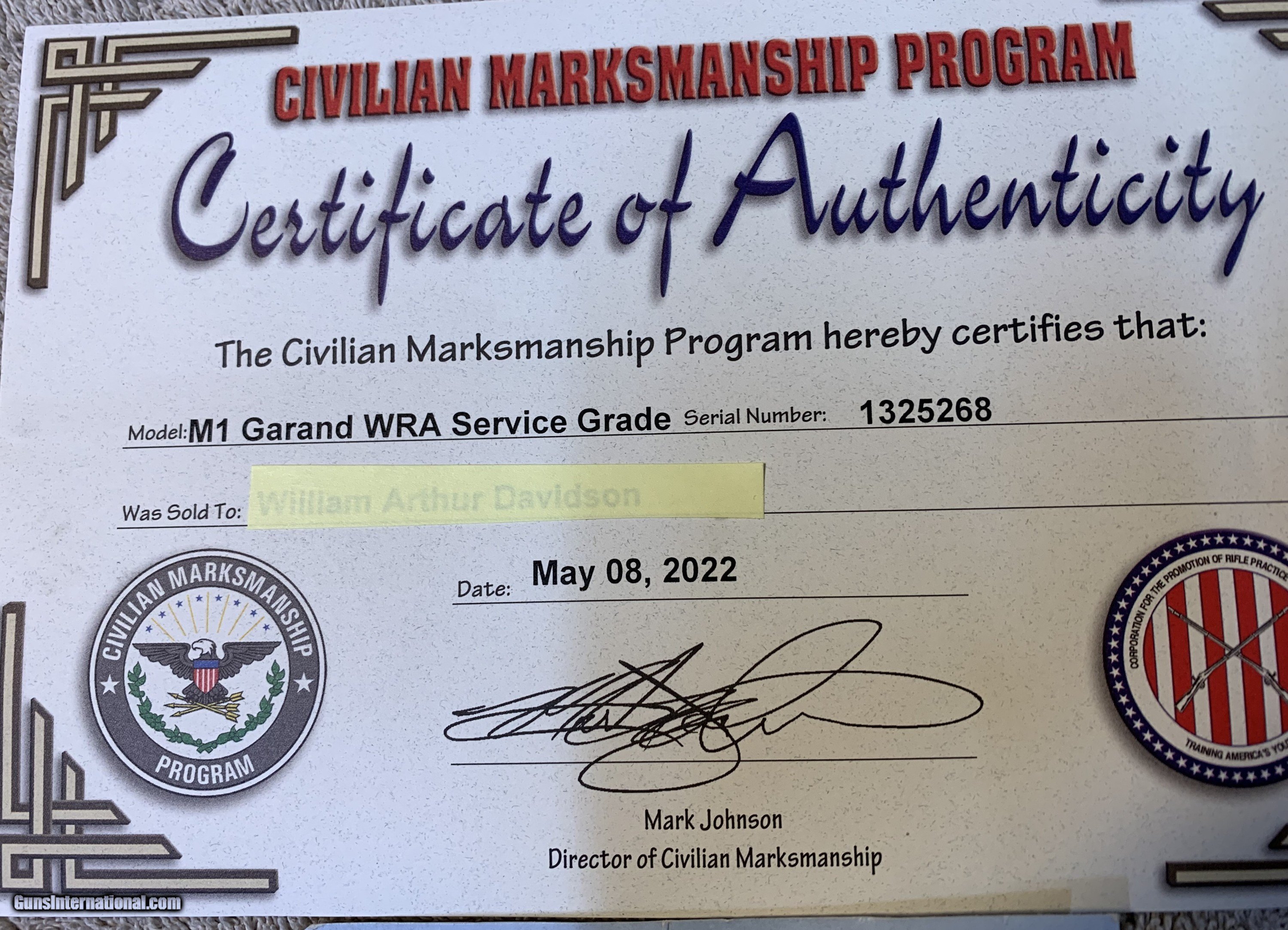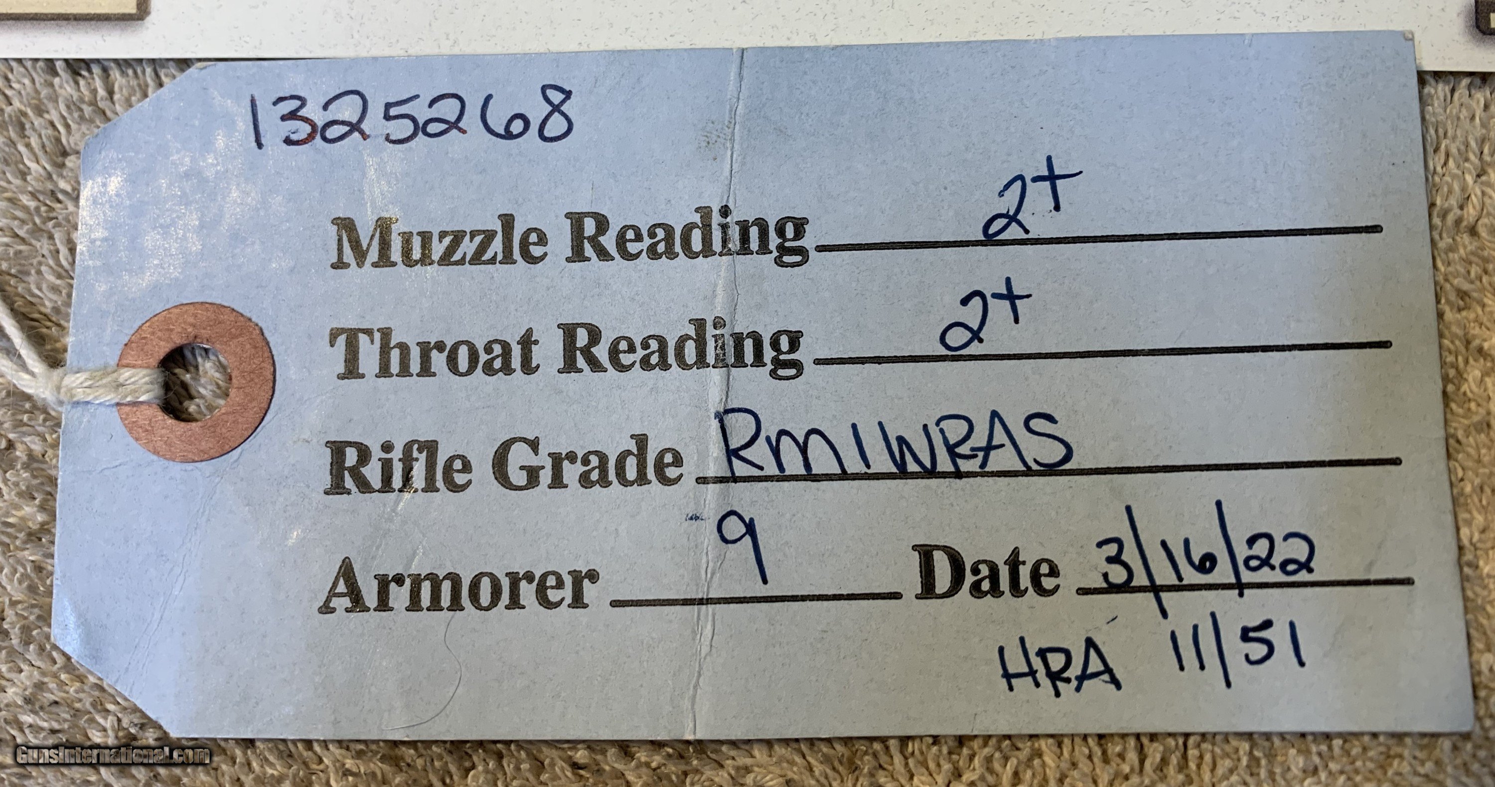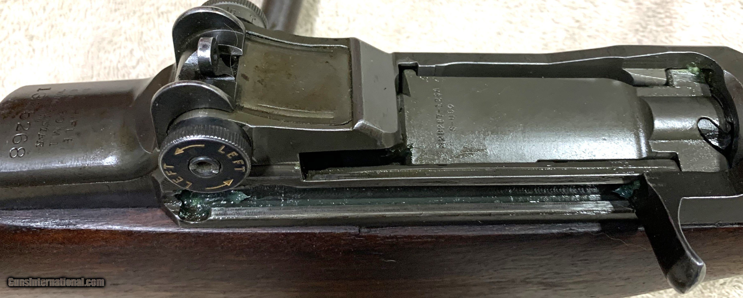 Description: Winchester Service Grade M1 Garand Manufacture date May1943. Reconditioned after WWII with a new HRA 11-51 barrel and many new parts, Still retaining the original milled trigger guard. Rifle has been inspected throughout and Certified by CMP whom also gauged the barrel erosion. Which still remains at: Throat {TE) 2+ Muzzle (ME) 2+ It has a very nice WWII walnut stock with all of the stock parts matching in color. More pics available. It may have seen a lot of action during WWII, but very little since then. Buyer pays actual shipping cost. Payment by Postal Money Order or Cashiers check. SOLD Curio/Relic: Yes Rifle Caliber: .30-06 Springfield Manufacturer: Winchester Model: M1 Garand Serial Number: 1325268 Barrel Length: 24 Condition: very good Metal Condition: good Wood Condition: good Bore Condition: very good Barrels: good Action: Semi Auto Stock: GI Walnut Butt Pad: steel Finish: original Manufacture Date: May=June 1943 Item Location: Colorado |