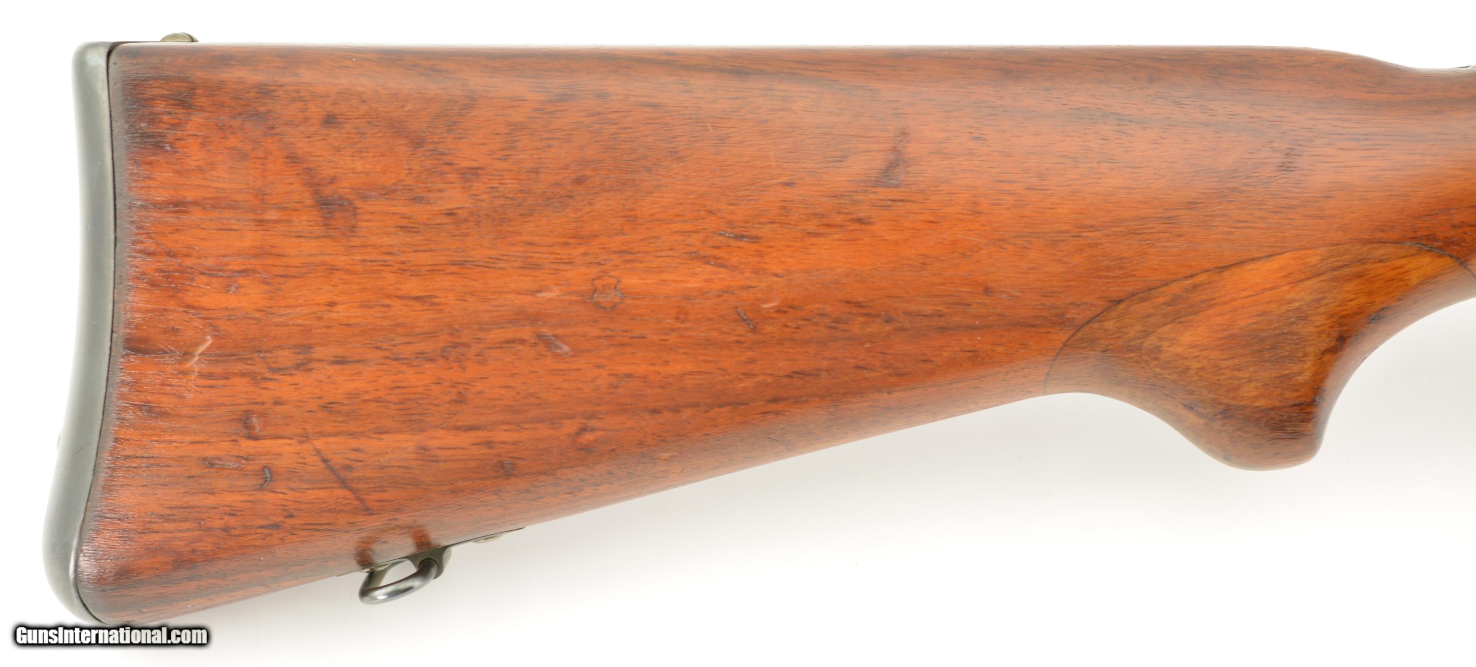 Description: Serial #226388, 7.5mm Swiss, 30 3/4" barrel with an excellent, bright bore. This is a very nice rifle that has matching numbers on the receiver, barrel, bolt, and magazine with the metal retaining 97-98% of the original blue finish that has silvered slightly at the muzzle, as well as some of the high edges. The bolt still has its armory bright finish with some light wear marks on the bearing surfaces, a few spots of mild freckling, and the ruddy-brown resin handle is intact. The wooden stock is numbered to a different gun on the comb, and it and the handguard have small handling marks and minor blemishes in the armory-reapplied finish, but the "BERN" stamp is still crisp and clear on the comb of the butt, and the buttplate is matching numbered. An original muzzle-cover is also included. This is a fine-near excellent example of a non-import marked Schmidt-Rubin rifle, and would make a great addition to a collection. FFL or C&R SOLD Curio/Relic: Yes Manufacturer: Swiss Model: Schmidt-Rubin Serial Number: 226388 Caliber Info: 7.5mm Gauge Info: 7.5mm |