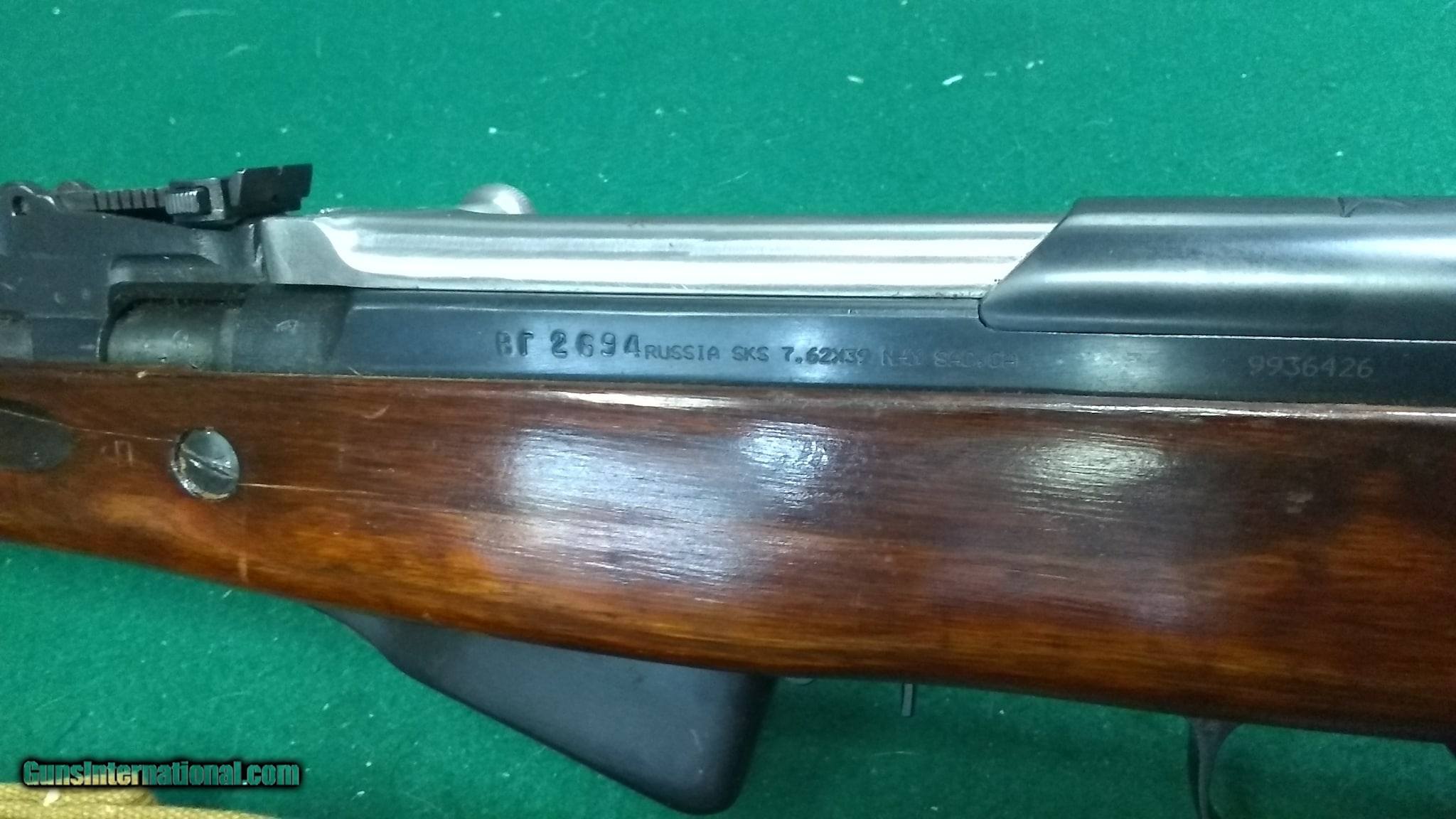 Description: Guns Listing ID: 494875 1953 Tula made Russian SKS – All numbers matching - 7.62X39mm – 20” barrel – 10rd. Fixed mag. Comes with sling, bayonet, and cleaning rod, and cleaning kit. Gun is in excellent condition. SOLD Manufacturer: TULA ARMS PLANT Model: SKS Caliber Info: 7.62 X 39 MM Condition: Used - Non-Certified Barrels: 20 BARREL Finish: BLUE STEEL |
