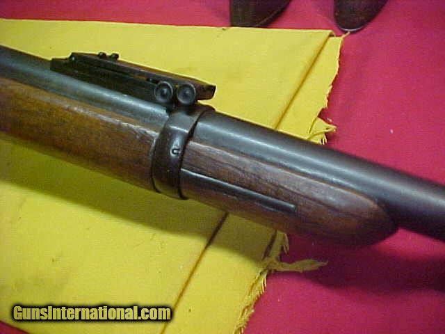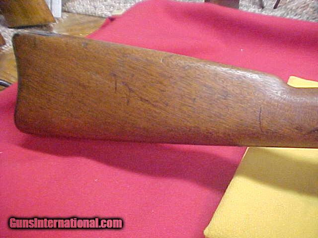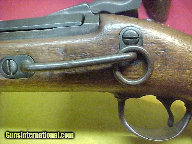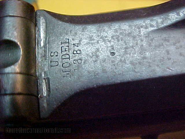Description: #1437 Springfield 1884 Trapdoor Carbine, 45/70 with very decent bore (8+ on a scale of 10), tight action, 416XXX range (1889 manufacture). This little Cavalry carbine is a standard 1884 variation and does have the correct serrated trigger, barrel, lockplate, breechblock, buttplate, etc. It also has the correct and very desirable Buffington windage adjustable rear sight. The metal is smooth plum blue-brown with no pitting of mention and very good markings. The wood is fine and has almost no dings or bruises but has no visible cartouche on the left wrist ….although it does have a dim “circle P” proof mark behind the trigger guard. The bore is FAR better, especially for the carbine version as these saw such hard action in comparison to the Infantry rifle configuration. A really decent and nice appearance veteran of the Indian Wars. VG/VG+ overall. $1795 SOLD Antique: Yes |