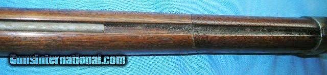 Description: 1861 WILLIAM MASON, TAUNTON, MA. PERCUSSION CIVIL WAR CONTRACT MUSKET. 1863 DATED 40" BARREL, NEAR EXCLLENT BRIGHT STRONG BORE. METAL A BRIGHT GUNMETAL WITH A FEW MINOR STAINS AND VIRTUALLY NO PITTING. 1863 DATED LOCKPLATE MARKED "U.S. Wm. MASON" "TAUNTON." WALNUT STOCK IN VERY GOOD CONDITION WITH DEEPLY CARVED "DOM" ON RIGHT SIDE BUTT & 10 1/2" FRONT OF STOCK PIECED ALONG WITH 2 VACANT SPOTS ON COMB WHICH LIKELY HELD SOME SORT OF INLAY. THIS IS A NICE CLEAN, SOLID CONTRACT RIFLE THAT APPEARS TO BE IN SHOOTABLE CONDITION, AS PICTURED. A $2500. EXAMPLE IF IT HAD NO ISSUES, AS MENTIONED. $50.00 S&H DIRECT TO BUYER EAST OF THE BIG RIVER $55.00 BEYOND. INSURANCE AT POSTAL RATES IF WANTED. SEE ALL "ESTATE ANTIQUES" LISTINGS FOR MORE GOOD ITEMS AT AFFORDABLE PRICES FROM OLD TIME COLLECTIONS. SOLD Antique: Yes Manufacturer: WILLIAM MASON Model: 1861 Barrel Length: 40 Caliber Info: .58 Bore: BRIGHT STRONG RIFLING Condition: VERY GOOD AS PICTURED Metal Condition: BRIGHT Wood Condition: AS PICTURED Bore Condition: NEAR EXCELLENT Barrels: 40 Barrel Type: ROUND Action: CRISP & TIGHT Stock: WALNUT Finish: AGED |