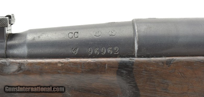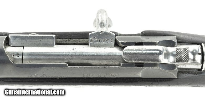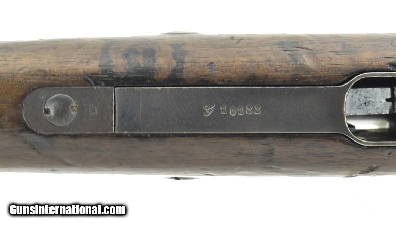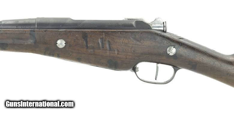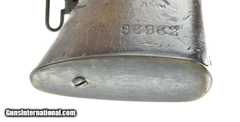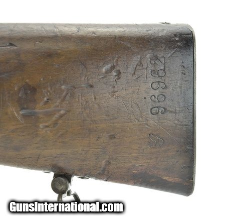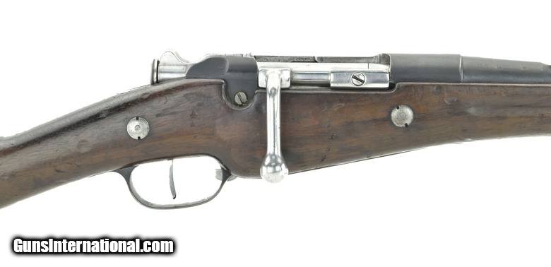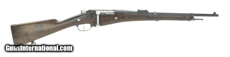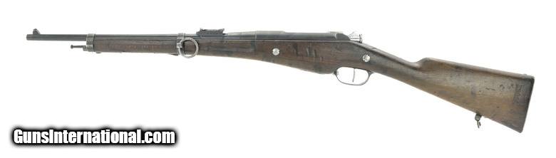 Description: French Model 1892 Berthier 8mm caliber carbine. Made in 1896 at the St. Etienne Arsenal. Serial numbers are matching, except magazine shell. Bore has strong rifling with an area of pitting. Wood has an arsenal repair at the toe very good overall condition. SOLD |