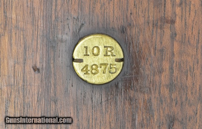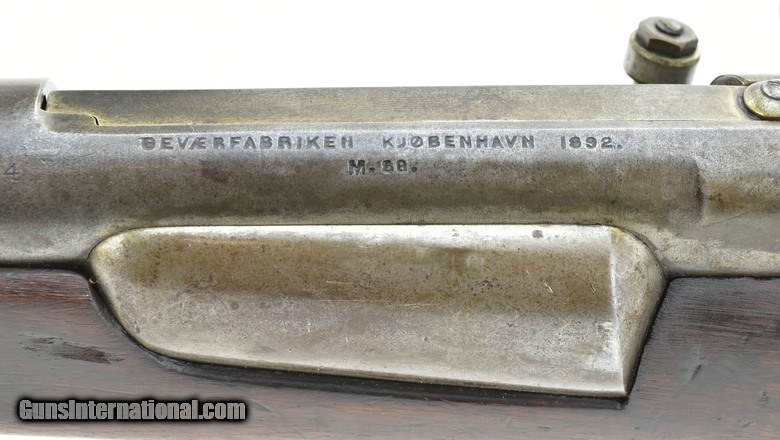 Danish Model 1889 Krag 8x58mmR Made in 1892. 33” Round barrel with outer sleeve. The sleeve is tinned, possible Naval use. Fine bore. Barrel has approximately 90% tin plate with the remainder of the metal being a smooth blue/brown patina. Stock is very good with no cracks or chips. The magazine latch is a replacement. Stock has a brass disk with “10R” over “4875”, right-side of butt. The serial numbers are matching. The stacking and sling swivels are present. This model 1889 was made in Copenhagen in 1892, two years prior to the first U.S. Krag.
