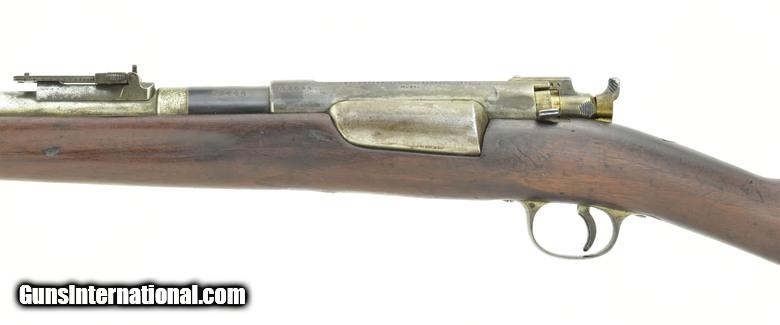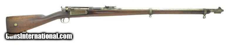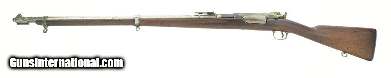 Description: " Danish Model 1889 Krag 8x58mmR Made in 1892. 33” Round barrel with outer sleeve. The sleeve is tinned, possible Naval use. Fine bore. Barrel has approximately 90% tin plate with the remainder of the metal being a smooth blue/brown patina. Stock is very good with no cracks or chips. The magazine latch is a replacement. Stock has a brass disk with “10R” over “4875”, right-side of butt. The serial numbers are matching. The stacking and sling swivels are present. This model 1889 was made in Copenhagen in 1892, two years prior to the first U.S. Krag. SOLD Antique: Yes |