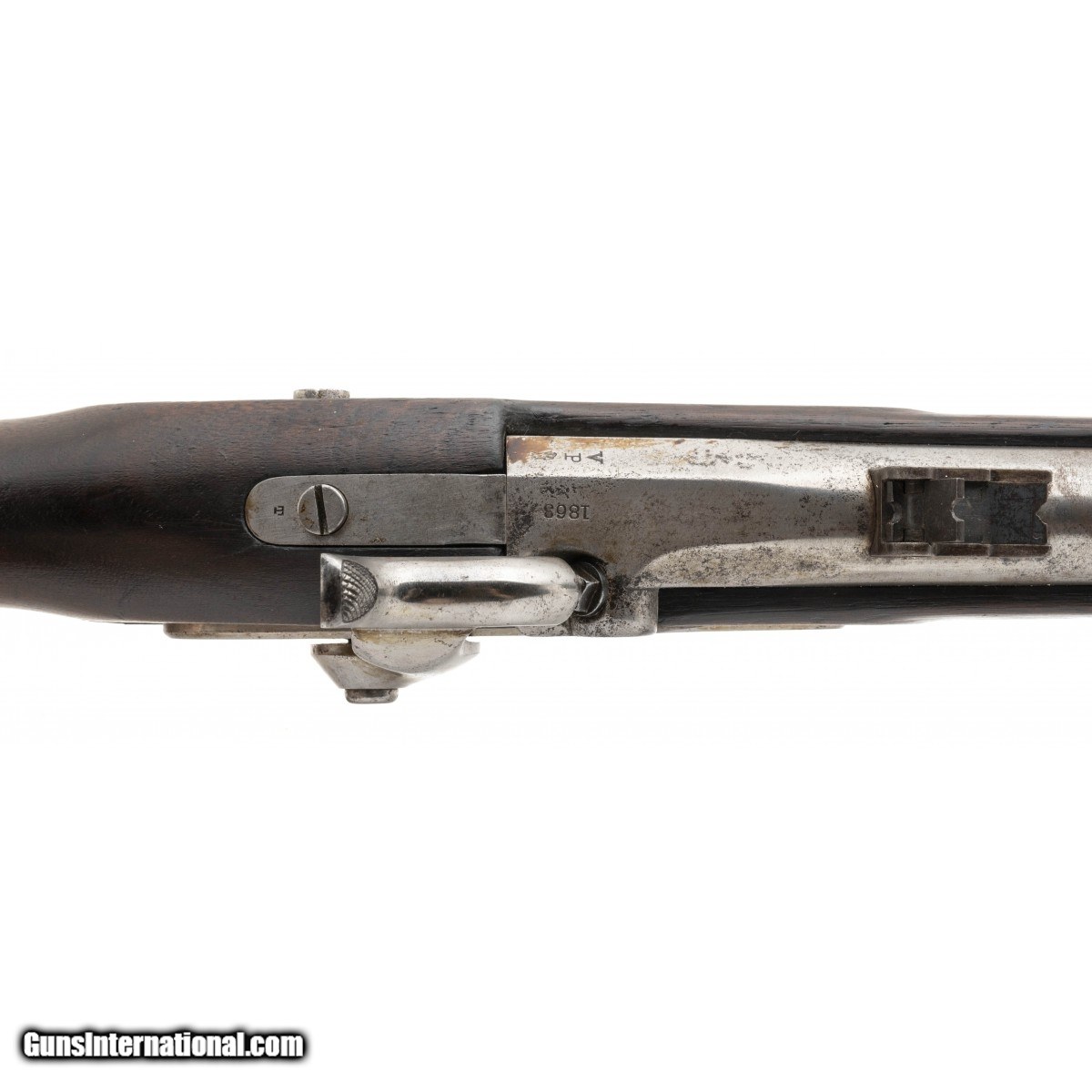 Description: " NSN, made in 1863, .58 caliber, 40"" in armory bright finish with scattered pin-prick oxidation. Lock plate is marked US/L.G-&Y/Windsor VT and dated 1864. Stock shows dings, nicks and minor scratches, a small avulsion is visible rear of the lock plate. Butt-plate is marked ""US/98 Co. I 5th U.S.C.T., The 5th U.S.C.T. was formed out of Ohio in 1863 and was composed of freed-men. Most noticeable battles of the 5th were Petersburg (Battle of the Crater) and the battles at Fort Fisher. SOLD Antique: Yes |