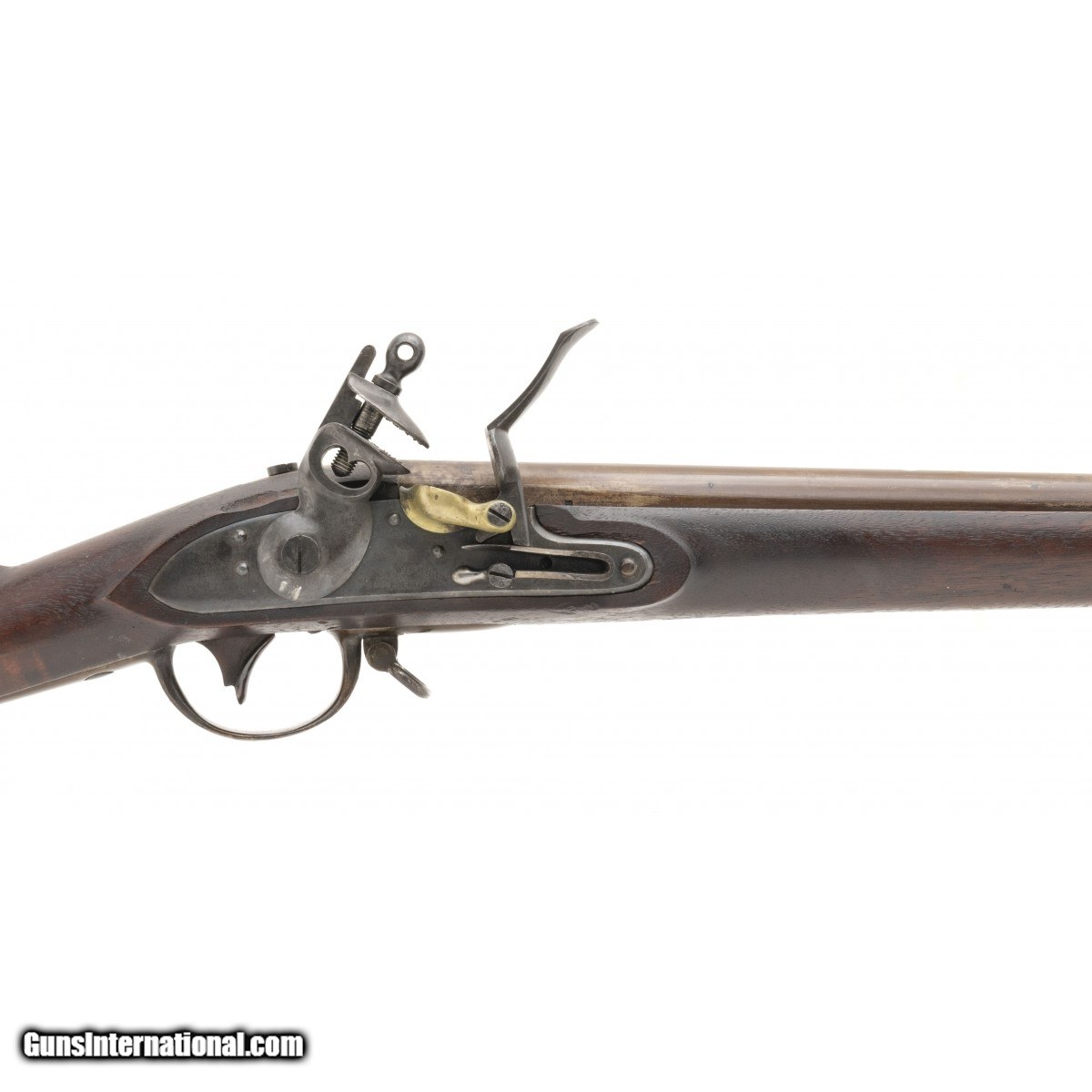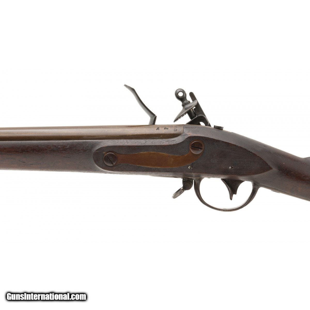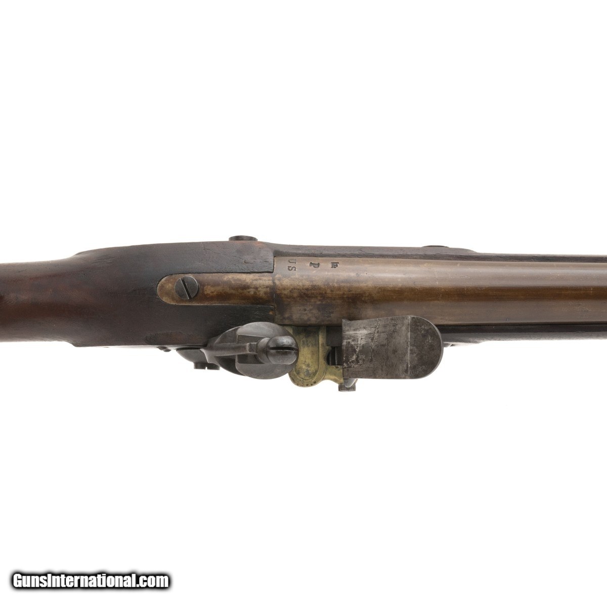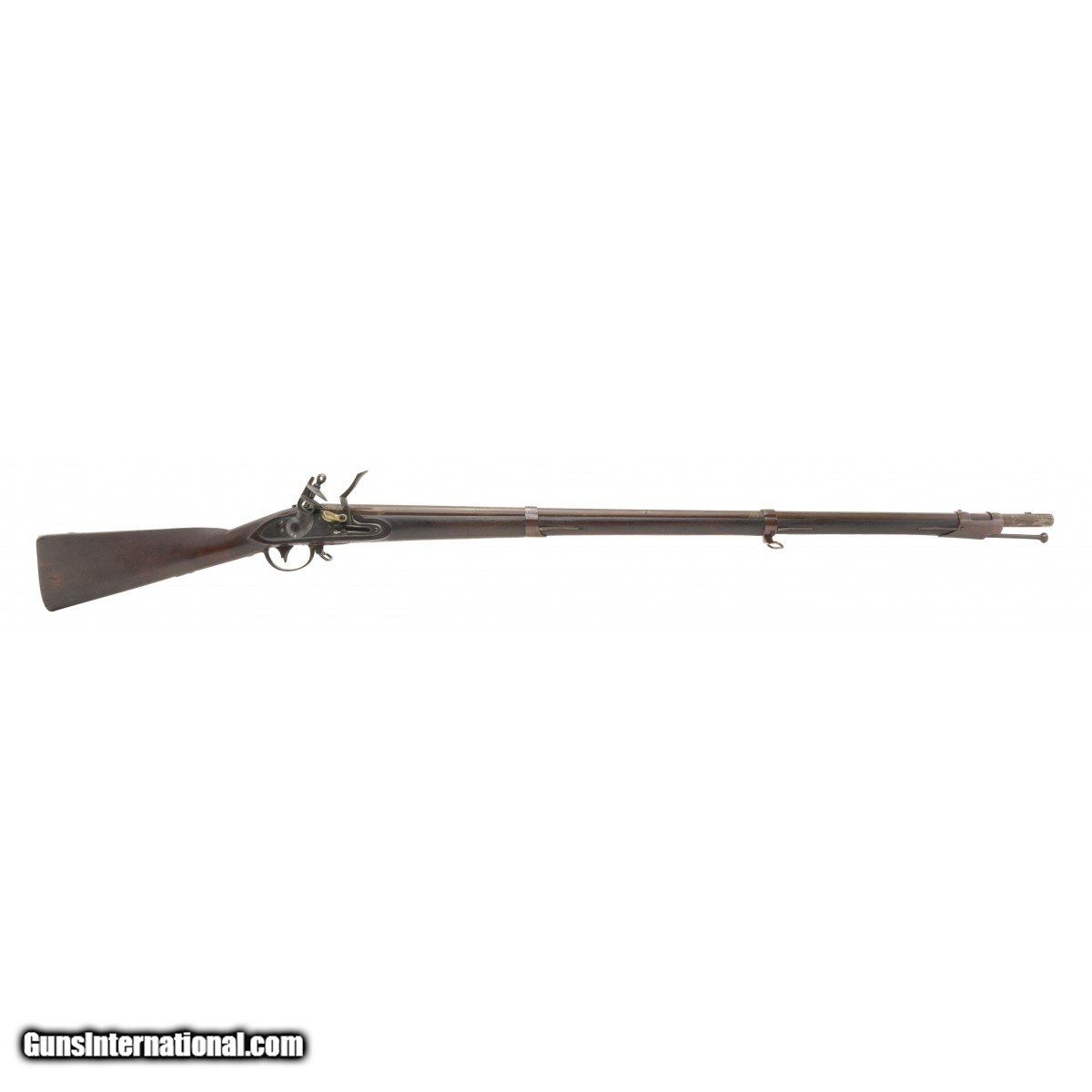 Description: " This fine U.S. Model 1816 flintlock musket was made by Marine T. Wickham circa 1822 to 1831. It is finished in ""National Armory Brown"" and is known as a Type II Model 1816. The overall length is approx. 58"". The 42"" round 69 caliber smooth bore barrel has an excellent bore. The barrel retains approx. 95% of its original brown finish with loss at the muzzle from bayonet attachment. The barrel has a P over US with an unreadable letter in front at the breech. The lock, cock, and frizzen have all their original dark hardened finish. The lock is marked at the center M.T. WICKHAM in an arc with PHILa below. This is the early style Wickham marking. The trigger guard and butt plate are brown. The bands and side plate are brown. The ramrod and swivels are present. The stock is excellent with no cracks or chips and light wear. There is a dented area behind the cock where the backside interfered with the wood upon cocking. The stocker's initials, PS, are to the rear of the trigger guard tang and a crisp V over GF inspection stamp is on the left flat. The action functions correctly. An excellent, correct Model 1816 bayonet with a P on the shank and half bright, half brown finish accompanies this fine musket. The Model 1816 is a must for any U.S. martial musket collection and you won't find one much better than this one. SOLD |