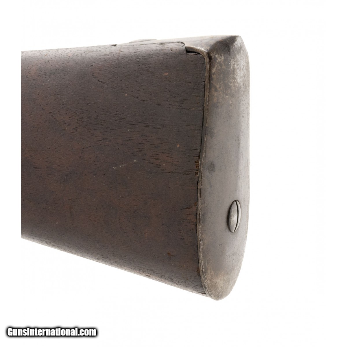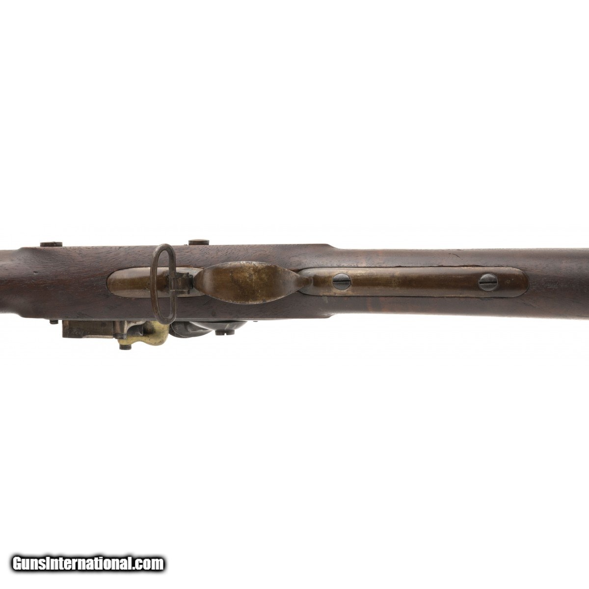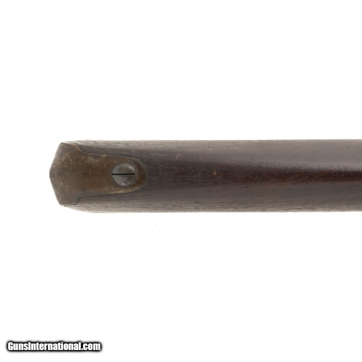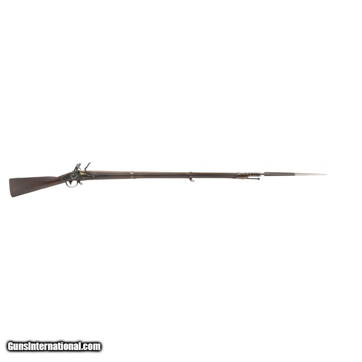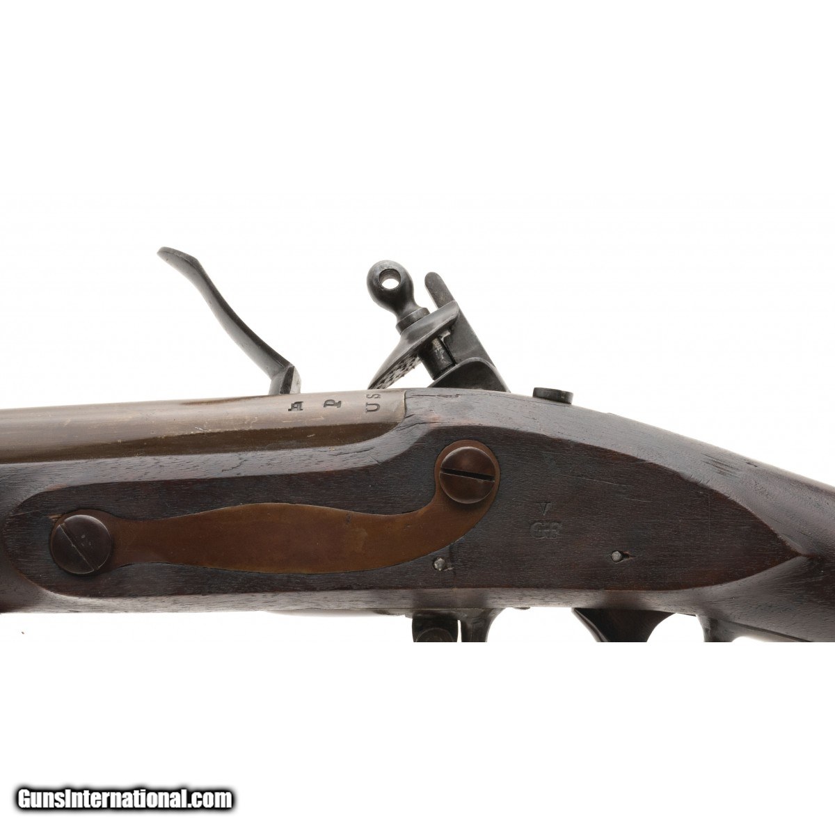 Description: " This fine U.S. Model 1816 flintlock musket was made by Marine T. Wickham circa 1822 to 1831. It is finished in ""National Armory Brown"" and is known as a Type II Model 1816. The overall length is approx. 58"". The 42"" round 69 caliber smooth bore barrel has an excellent bore. The barrel retains approx. 95% of its original brown finish with loss at the muzzle from bayonet attachment. The barrel has a P over US with an unreadable letter in front at the breech. The lock, cock, and frizzen have all their original dark hardened finish. The lock is marked at the center M.T. WICKHAM in an arc with PHILa below. This is the early style Wickham marking. The trigger guard and butt plate are brown. The bands and side plate are brown. The ramrod and swivels are present. The stock is excellent with no cracks or chips and light wear. There is a dented area behind the cock where the backside interfered with the wood upon cocking. The stocker's initials, PS, are to the rear of the trigger guard tang and a crisp V over GF inspection stamp is on the left flat. The action functions correctly. An excellent, correct Model 1816 bayonet with a P on the shank and half bright, half brown finish accompanies this fine musket. The Model 1816 is a must for any U.S. martial musket collection and you won't find one much better than this one. SOLD |
