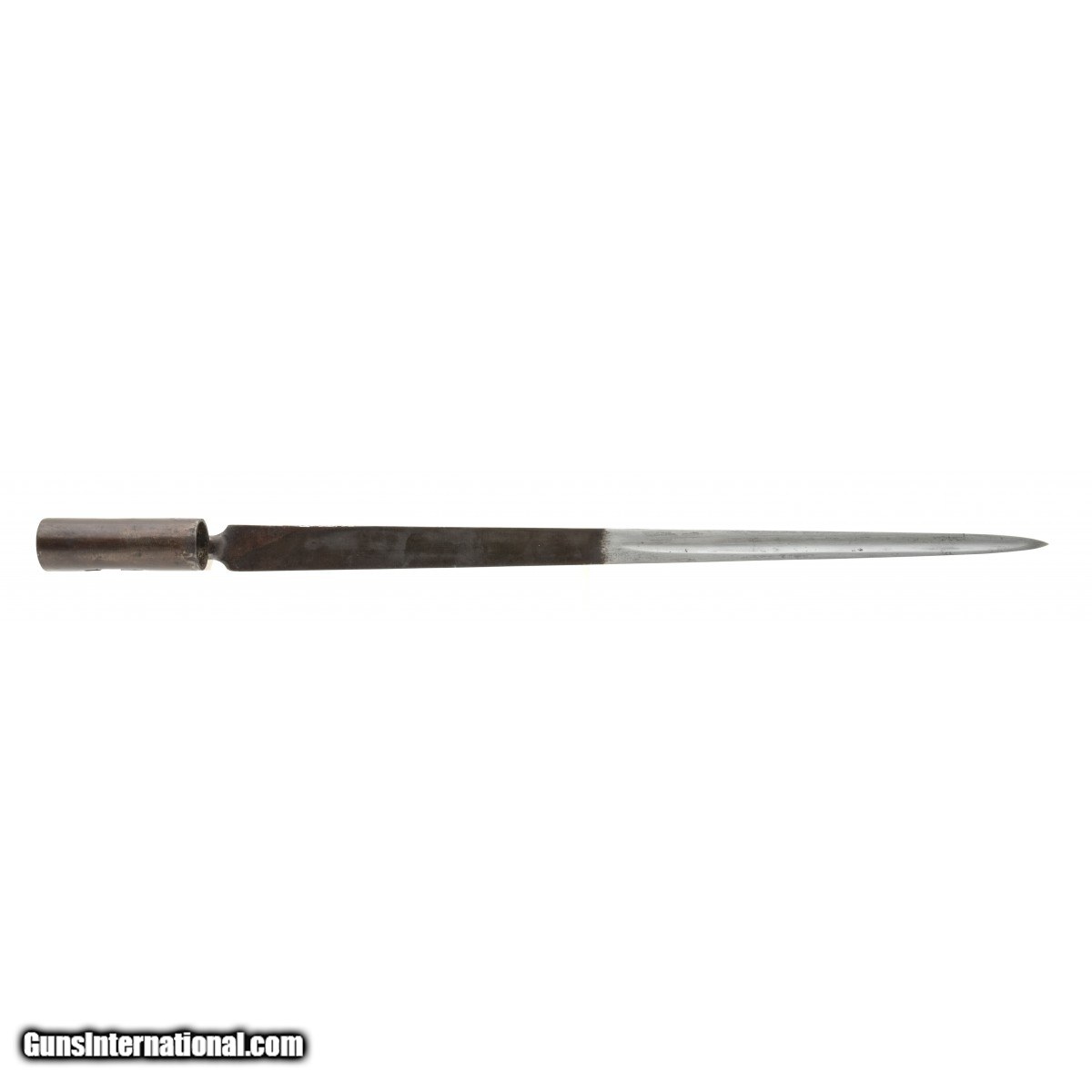 This fine U.S. Model 1816 flintlock musket was made by Marine T. Wickham circa 1822 to 1831. It is finished in ""National Armory Brown"" and is known as a Type II Model 1816. The overall length is approx. 58"". The 42"" round 69 caliber smooth bore barrel has an excellent bore. The barrel retains approx. 95% of its original brown finish with loss at the muzzle from bayonet attachment. The barrel has a P over US with an unreadable letter in front at the breech. The lock, cock, and frizzen have all their original dark hardened finish. The lock is marked at the center M.T. WICKHAM in an arc with PHILa below. This is the early style Wickham marking. The trigger guard and butt plate are brown. The bands and side plate are brown. The ramrod and swivels are present. The stock is excellent with no cracks or chips and light wear. There is a dented area behind the cock where the backside interfered with the wood upon cocking. The stocker's initials, PS, are to the rear of the trigger guard tang and a crisp V over GF inspection stamp is on the left flat. The action functions correctly. An excellent, correct Model 1816 bayonet with a P on the shank and half bright, half brown finish accompanies this fine musket. The Model 1816 is a must for any U.S. martial musket collection and you won't find one much better than this one.