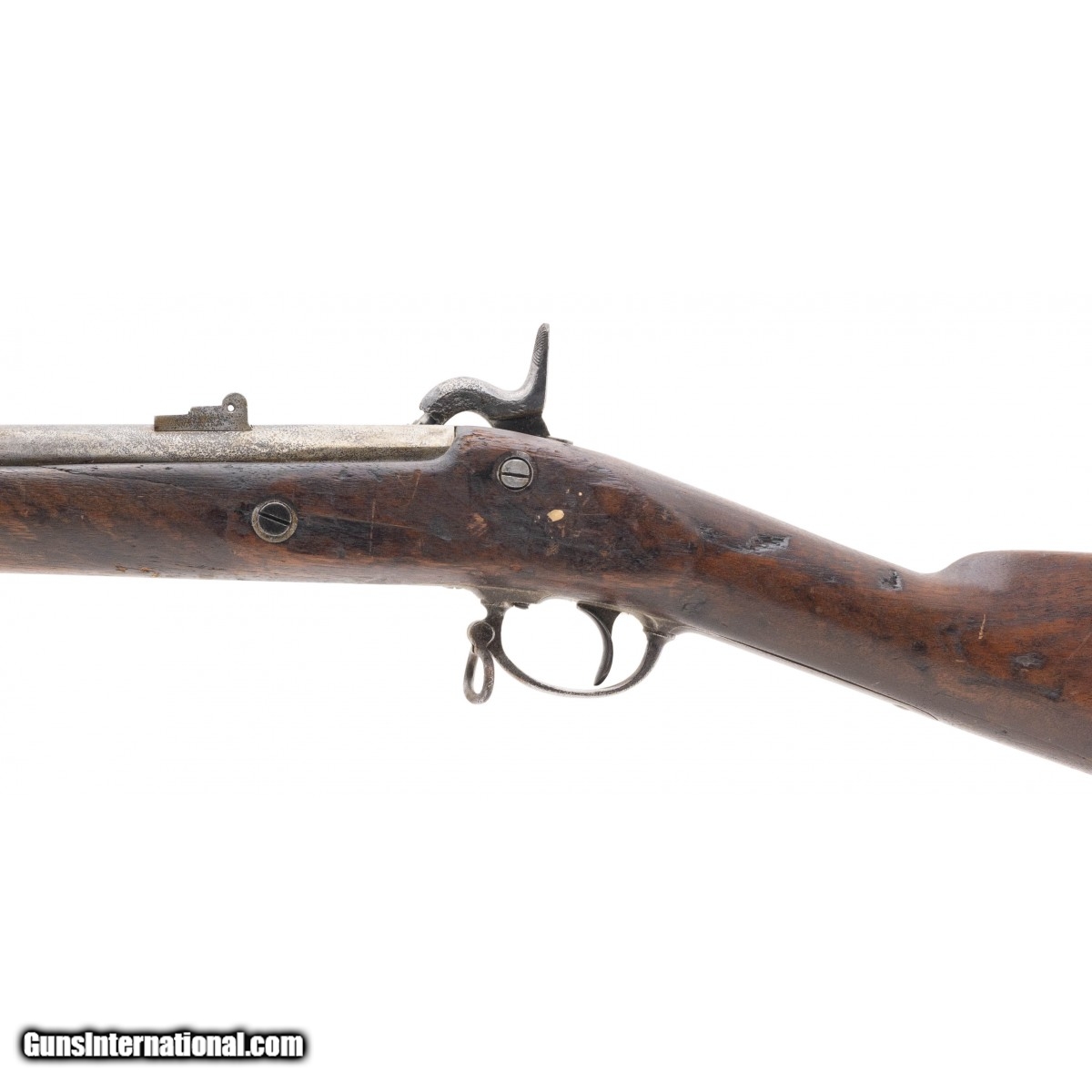 Description: " This 58 caliber percussion contract Model 1861 rifle-musket was one of approx. 15,000 manufactured by Parkers Snow & Co. of Meriden, CT, circa 1863-64. The 40"" round barrel has a very good bore with its original rifling. The rear sight leaves are absent. The gun has a freckled brown patina over bright with a dent in the barrel near the top band and scattered areas of light pitting. The lock is marked PARKERS' SNOW & CO. over MERIDEN, CONN. to the right of the hammer and with the date of 1863 at the tail. The 1863 dated rifle muskets are believed to be the products of the 1861 James Mulholland contract of which only 5,502 were delivered. This was the first firearms endeavour of Charles Parker, who would go on to form the famous Parker Brothers shotgun company. The stock is good with a crack at the trigger guard and issue dents and dings. The ramrod is absent. The action functions. Solve its issues and you will have a good example of one of Charle Parker's earliest guns. SOLD Antique: Yes |