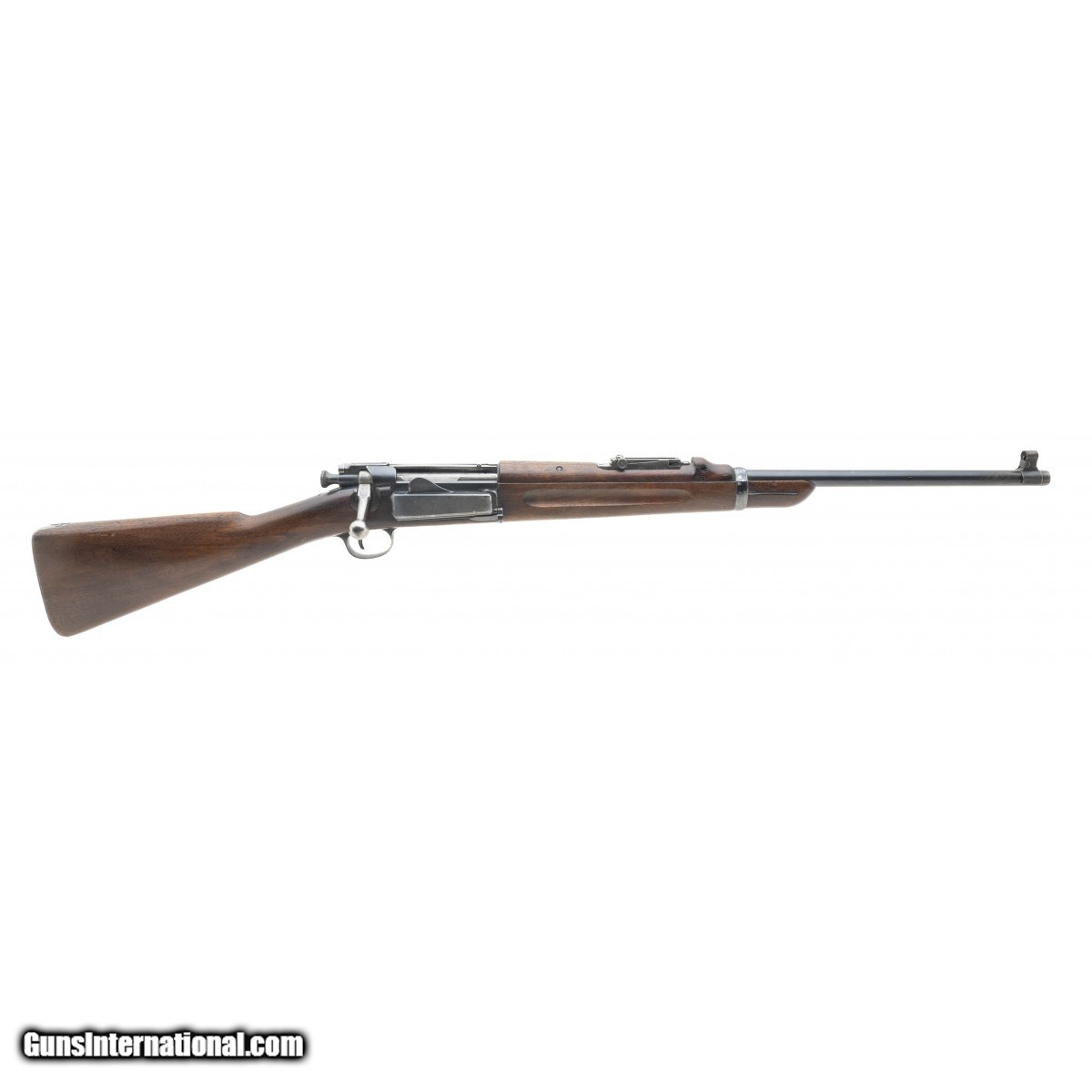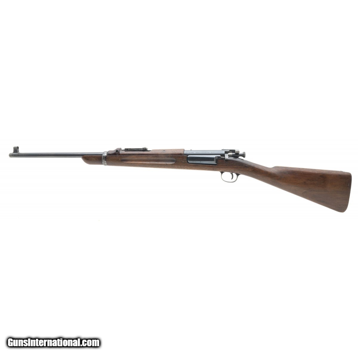 Description: " SN: 71663. Circa 1897. Bore is very good. 30-40 Krag with a 20"" barrel. Bolt action rifle that has been later converted to the 1899 carbine configuration, 5rd capacity side loading gate mechanism, adjustable windage rear sights, longer forearm and buttstock with a round compartment for 3 piece cleaning rod. Overall in very good condition. (Consignment) SOLD Antique: Yes |