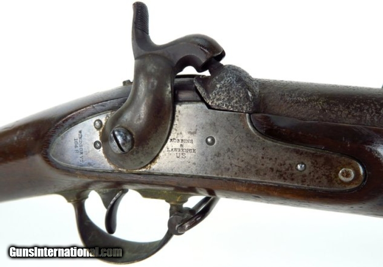 U.S. Model 1841 Mississippi Rifle by Robins & Lawrence. Lock is dated 1848. Barrel has pitting throughout. Stock is very good with sharp cartouches. Very attractive gun where the gun was poorly stored.