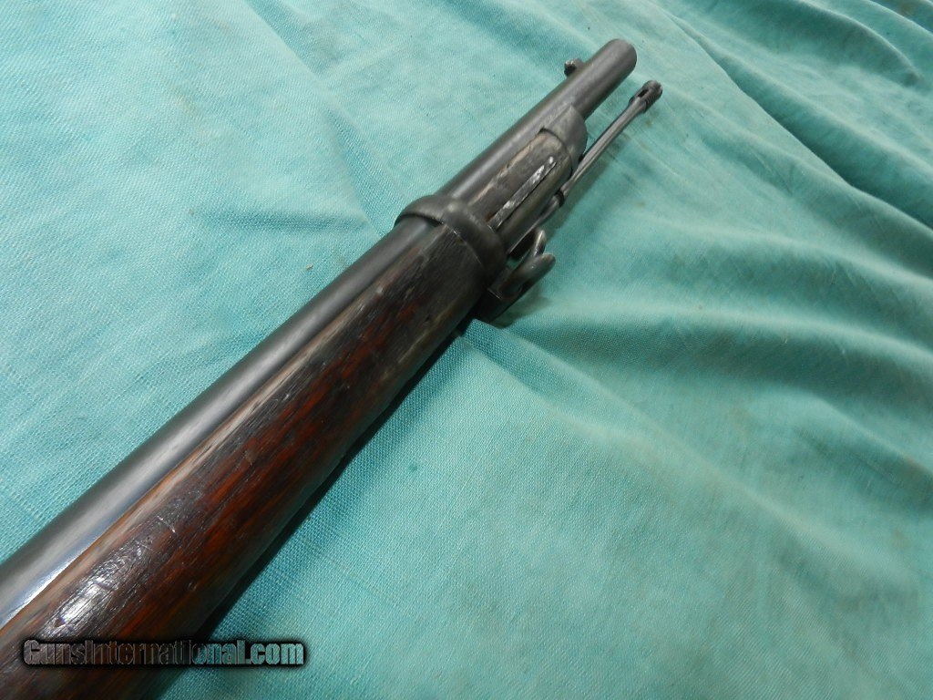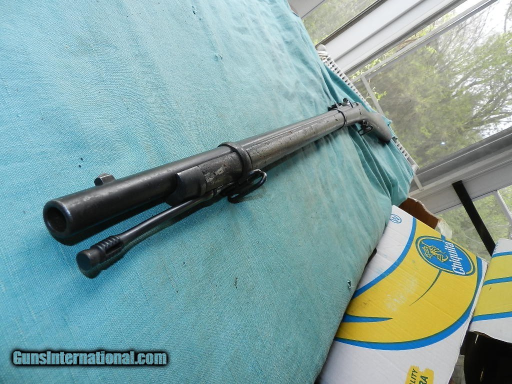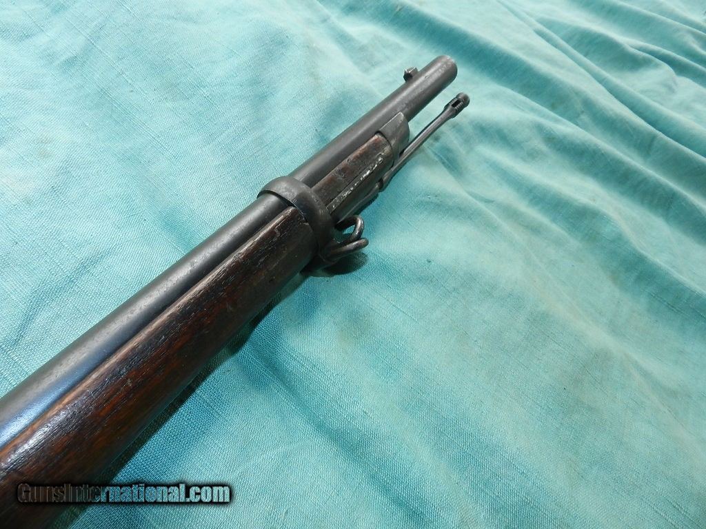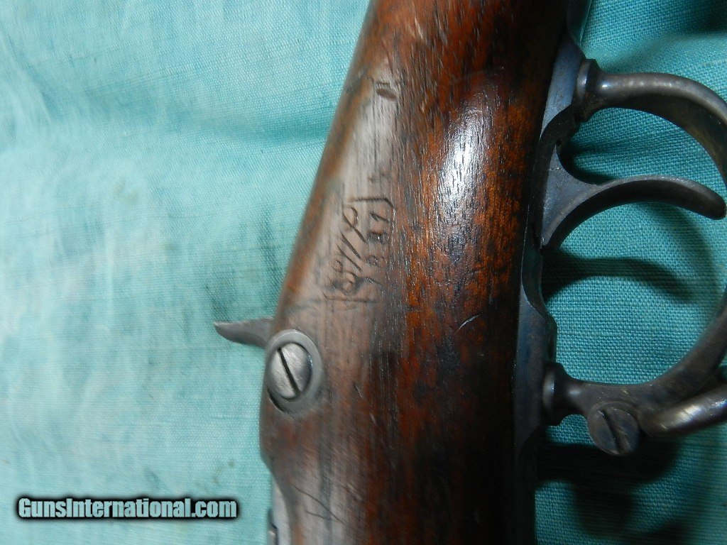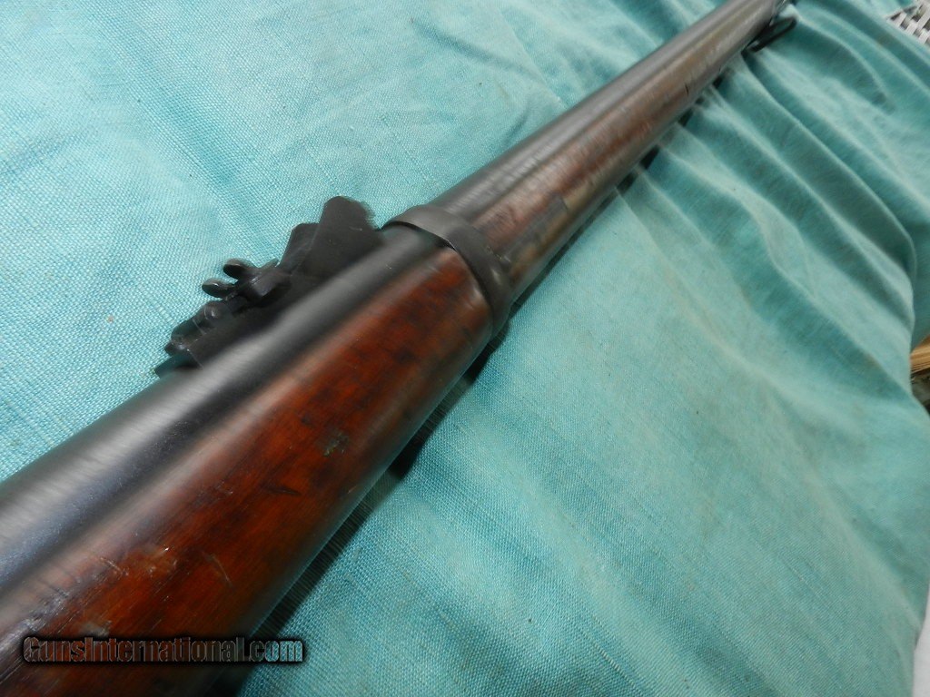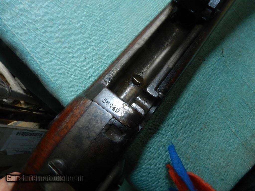 Description: SOLD With a serial #56749, 45-70 Govt., 32 5/8'' barrel with a mostly bright very good bore showing some scattered areas of fine pitting in the rifling. The barrel, bands, receiver and lock have aged to a dark gray-brown patina with some light silvering at the muzzle, some scattered light handling marks toning to gray and old light oxidation overall. There are remnants of arsenal blue along the wood lines with a nice amount of the same remaining on the upper band and forend cap and protected areas of the finely-checkered hammer. The triggerguard displays a blue-gray patina with some pinprick pitting on the tang and scattered small spots of old light oxidation and generous remnants of arsenal blue throughout. The breechblock retains about 90% arsenal blue with loss due to tiny speckles of old light oxidation. The barrel features the correct small ''V / P / (eagle head)'' proof mark which wasn't used until approximately serial #50,000 and the breechblock is properly stamped ''MODEL / 1873 / (eagle head) / (crossed arrows) / US''. The lockplate displays a crisp Federal Eagle ahead of the hammer and ''U.S. / SPRINGFIELD'' below the thumbpiece. The American black walnut long-comb stock rates good as lightly cleaned with a worn coat of added finish, long ago, and a thin narrow but closed stress crack on each side of the lockplate and ahead of the upper lockplate screw, a narrow abrasion on the right side of the toe and numerous tiny chips, minor handling marks and splotches of paint transfer overall. There is a strong visible 1881 cartouches The stacking and sling swivels and front sight are intact, a correct slotted and grooved cleaning rod is stored beneath the barrel, the rear sight is a Model 1879, the lower band is from a Model 1884 and the three-position tumbler and lock are strong and crisp. A good example of a Western Era trapdoor.When buying a gun always have it examined by a competent gunsmith before shooting. To buy a gun from me you must get a direct email for me, with details, and shipping cost. We don’t have a web site .I prefer money orders or a check. Item ships when funds come in. I try to keep guns affordable, which means I make less money than most dealers. You won’t get altitude sickness, or nose bleed, with my prices! I consistently have the best selection of older guns If you attempt to buy, you must still contact us for details . Best to email to buy. Sometimes a local person can stop buy and purchase before the gun is removed. Sometimes not home to get calls. Some guns are required shipment to a gun dealer near you for a transfer to you when it arrives. Otherwise many older or black powder guns ship to your door. With the widest selection of older guns at great prices, We don’t have a store, and sell on the internet only. I’m easy to get along with. Thank You SOLD |
