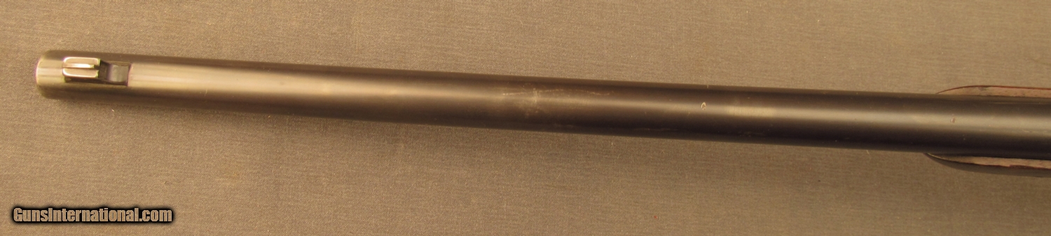 Description: Serial #78215, .30-40 Krag, 22” barrel with an excellent, bright bore. This is Spanish-American War era carbine, and retains about 80-85% of the original blue on the barrel with silvering and gray on the muzzle, as well as some graying along the right side of the barrel with dark spots of freckling present in a few areas. The receiver has a mottled, smooth gray patina with a few scattereed specks of freckling, mostly on the rear of the magazine hump on the left side. The bolt has a fairly bright gray patina with darker freckling on the handle, and a few faint traces of the original fire blue still on the extractor spring. A correct, “C” marked Model 1896 rear sight is fitted behind the humped barrel band. The walnut stock has an armory added military oil finish over scattered light handling marks and minor surface blemishes. The left side of the wrist has a slightly dull area where the sling bar was removed, and no inspector cartouche is present. The mottled gray metal buttplate has numerous small marks and blemishes. This is a very nice Span-Am Krag carbine that is in about very good plus condition overall. Antique SOLD Antique: Yes Manufacturer: Spfld Model: Krag Serial Number: 78215 Caliber Info: .30-40 Krag Gauge Info: .30-40 Krag |
