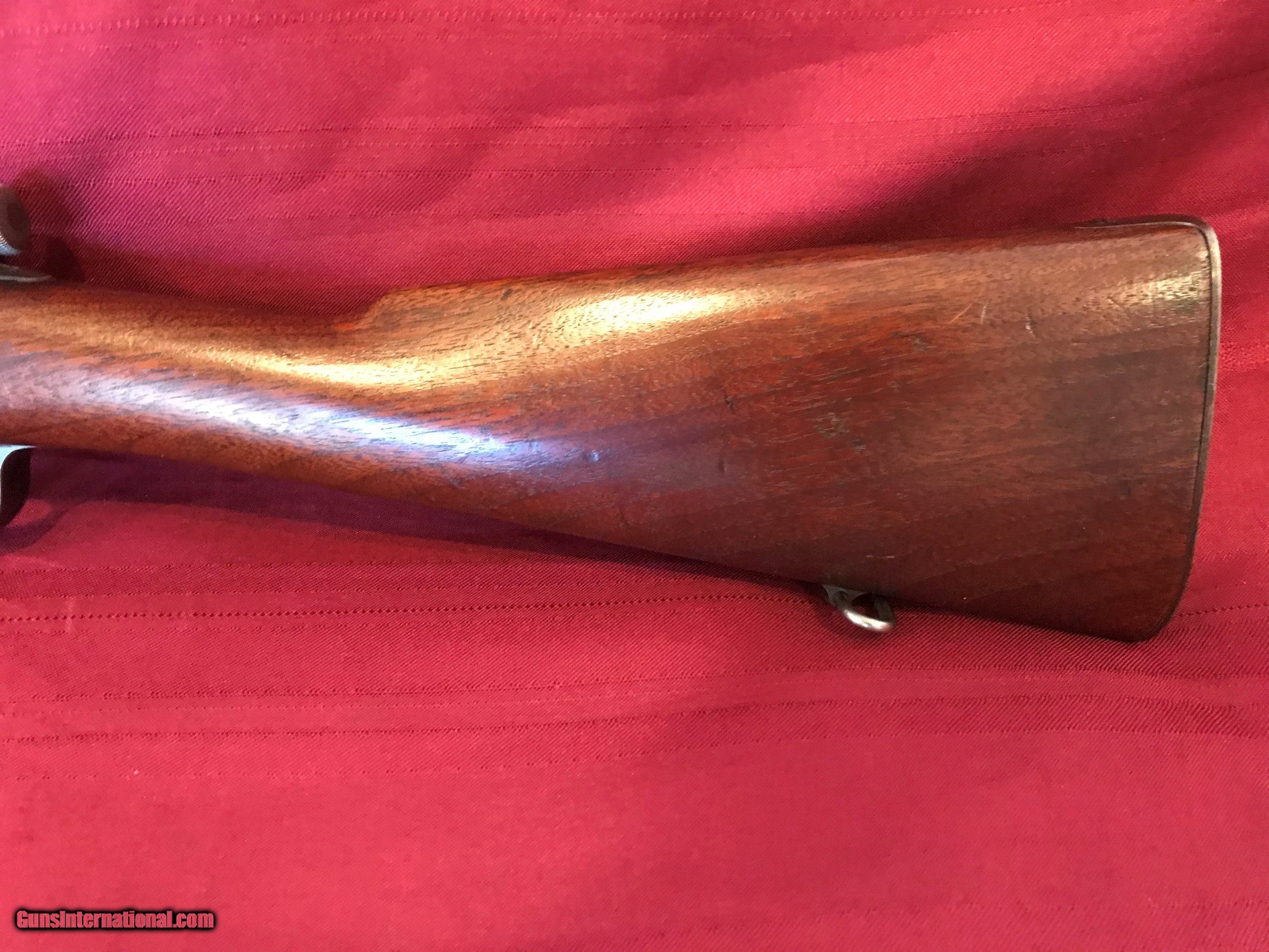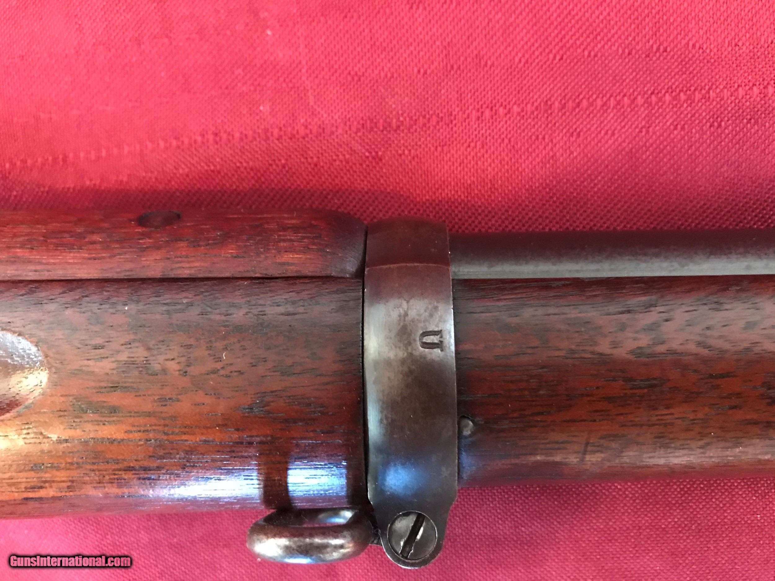 Description: Model 1898 Krag Rifle, 30-40. Manufactured in 1898. Correct 1898 rear sight. 30" barrel (excellent bore), sharp cartouche, "JLA" Inspector mark. Trap steel butt plate. Excellent original condition. Antique no FFL required. SOLD Antique: Yes |