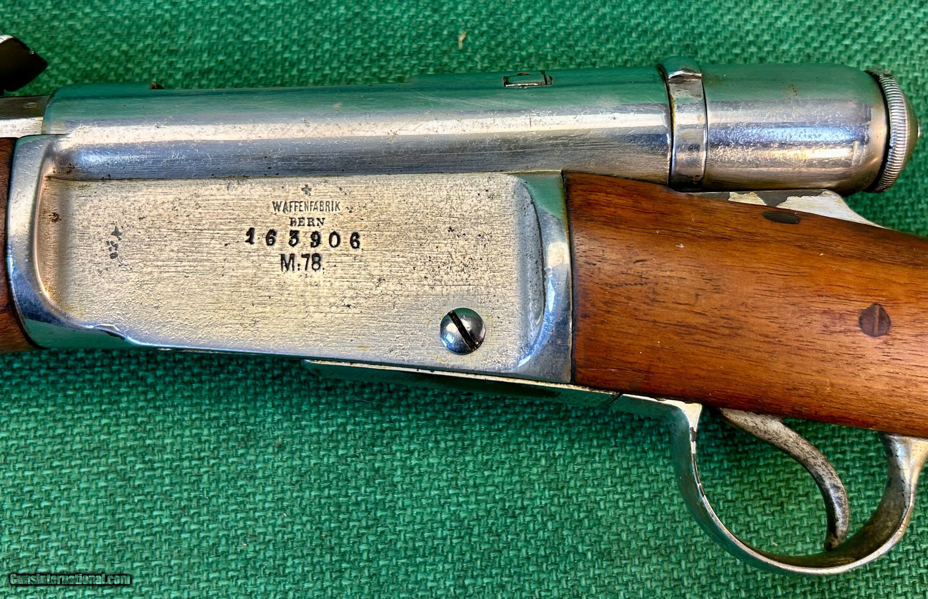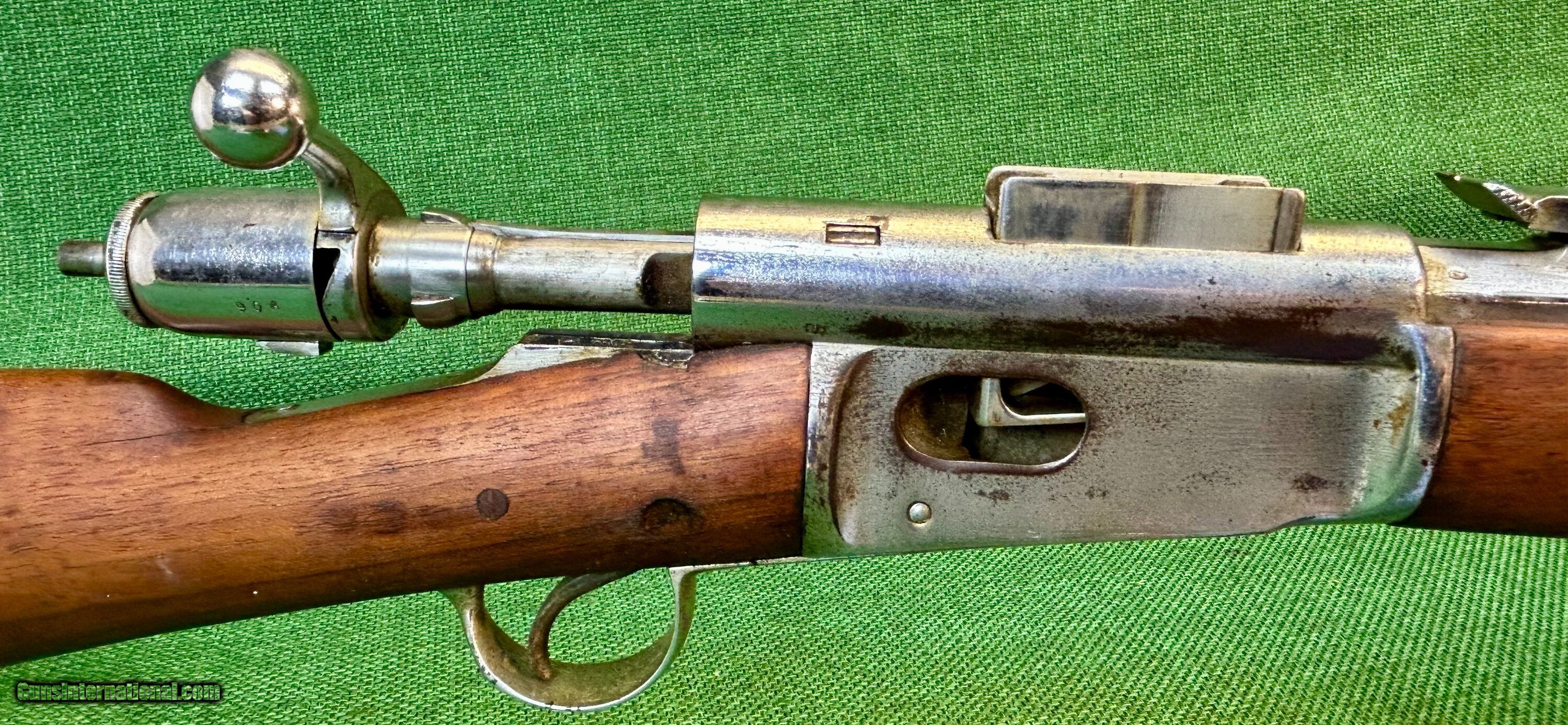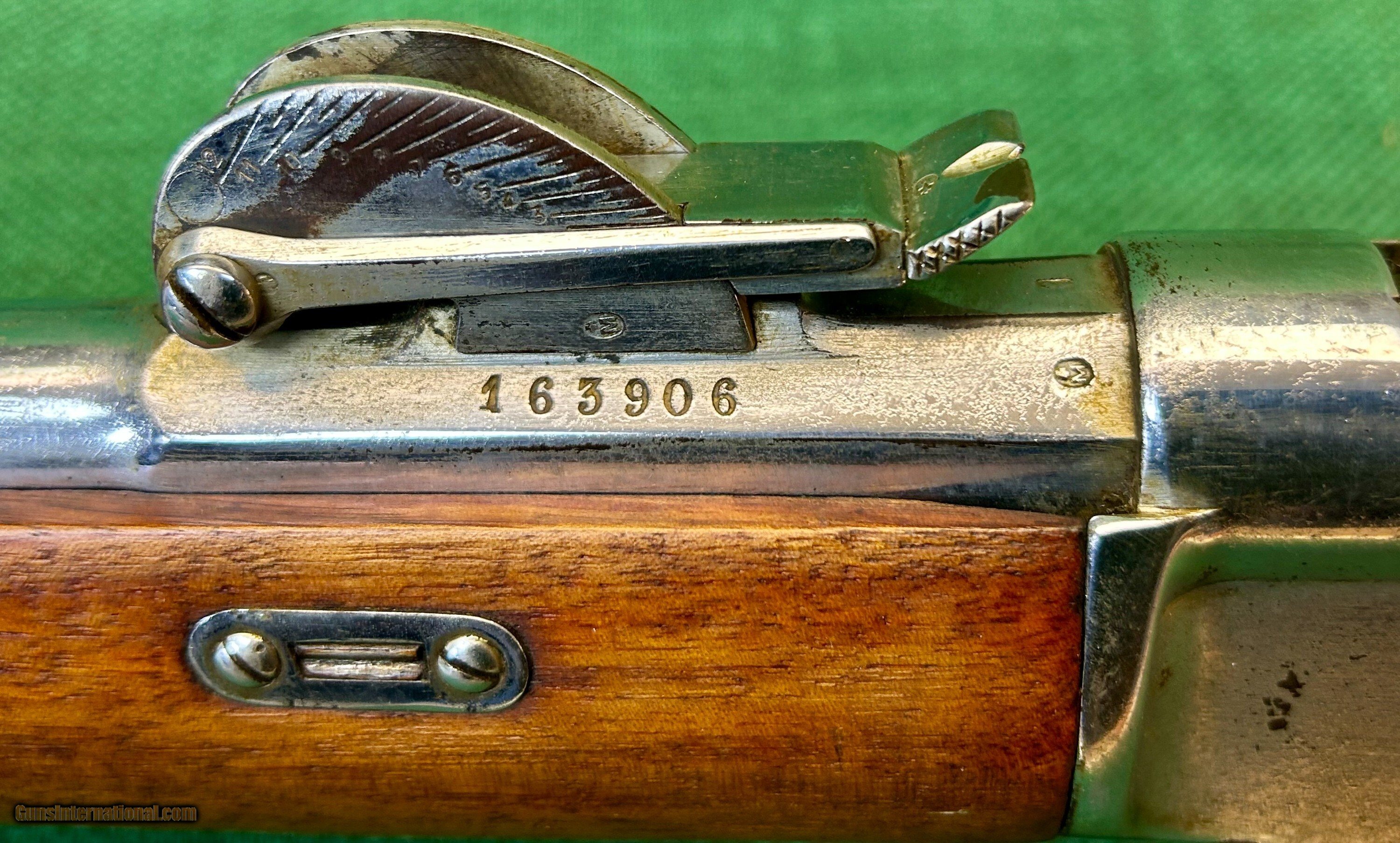 Description: This is a Swiss Made Vetterli M78 in 10.4x38mm This particular rifle was manufactured at Waffenfabrik Bern and is all numbers matching with an excellent bore and excellent wood condition. As seen it is completely nickel plated less the bore. We have seen other such examples of nickel plated m78s illustrated in the arsenal racks of the Swiss guard at the Vatican. While we are not claiming that this is where this rifle came from that is where we have seen other examples. This rifle is an antique and can be shipped directly to your location if your state permits. Please know your local laws. Please see pictures for details. We accept USPS Money Order, cashier’s check, or credit card for immediate shipping. Please note credit card sales are subject to an additional 3% fee. US shipping only. Shipping costs are actual postage, with adult signature required. We will pay the insurance for the amount sold. All items are for sale locally, so make contact as soon as you make your decision. Inquiries will be handled in chronological order. All postings will remain active until funds are received. We appreciate funds to arrive within 10 days of verbal agreement. After such time we will entertain other inquiries in the order they were received. Antique: Yes Rifle Caliber: 10.4x38mmR Swiss Manufacturer: Swiss Model: Vetterli M78 Price: $459.00 Contact Seller |