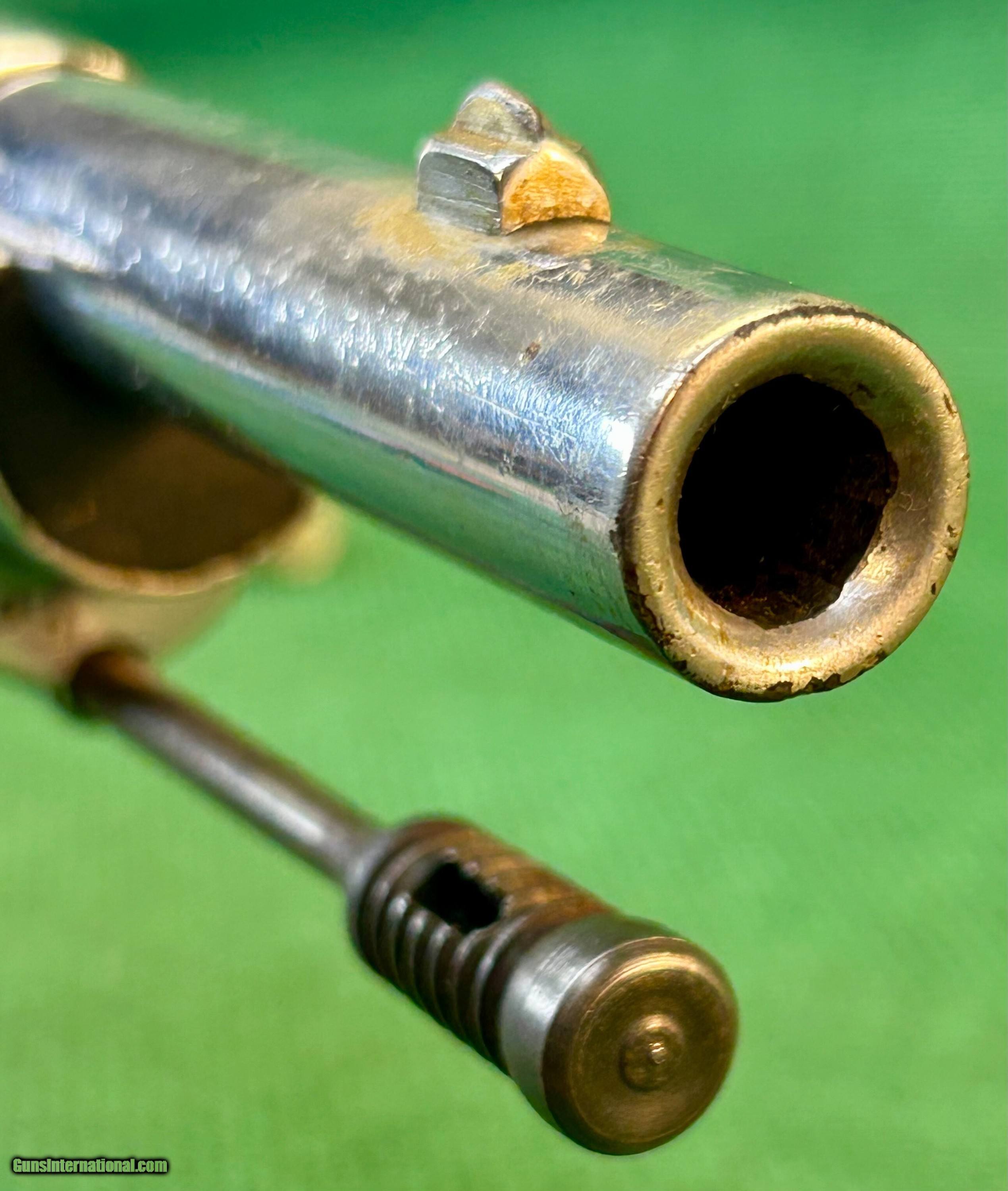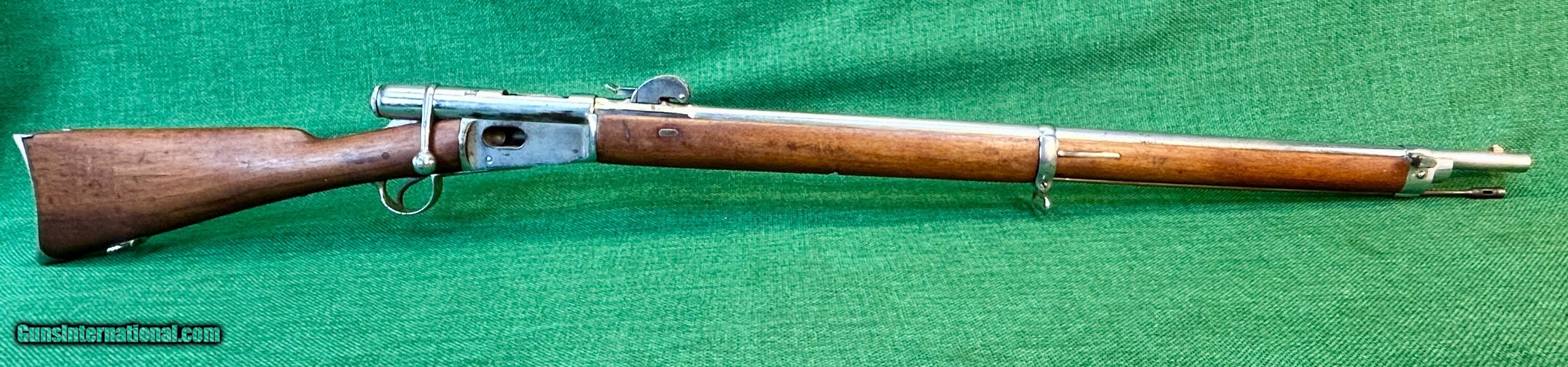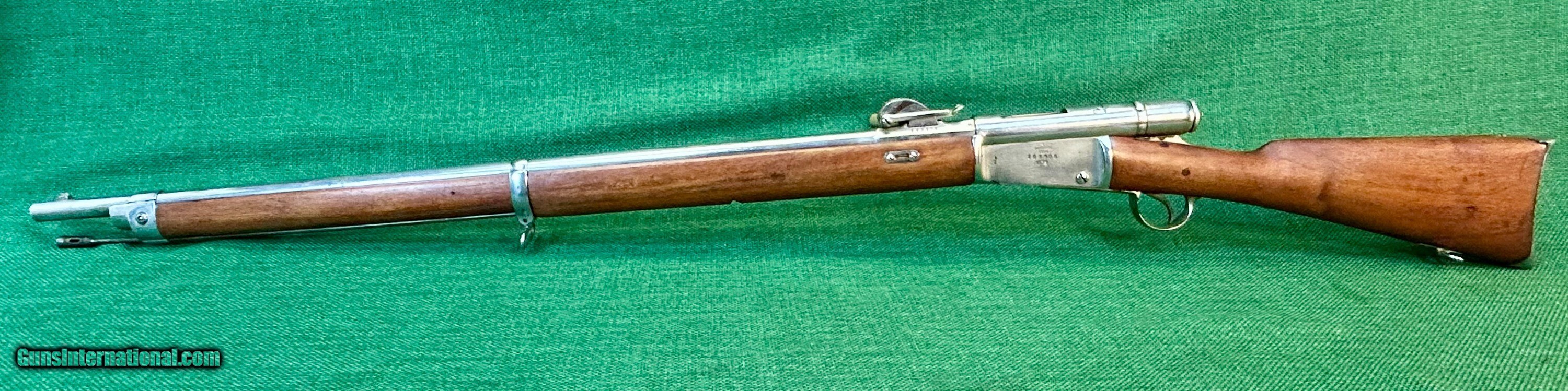 Description: This is a Swiss Made Vetterli M78 in 10.4x38mm This particular rifle was manufactured at Waffenfabrik Bern and is all numbers matching with an excellent bore and excellent wood condition. As seen it is completely nickel plated less the bore. We have seen other such examples of nickel plated m78s illustrated in the arsenal racks of the Swiss guard at the Vatican. While we are not claiming that this is where this rifle came from that is where we have seen other examples. This rifle is an antique and can be shipped directly to your location if your state permits. Please know your local laws. Please see pictures for details. We accept USPS Money Order, cashier’s check, or credit card for immediate shipping. Please note credit card sales are subject to an additional 3% fee. US shipping only. Shipping costs are actual postage, with adult signature required. We will pay the insurance for the amount sold. All items are for sale locally, so make contact as soon as you make your decision. Inquiries will be handled in chronological order. All postings will remain active until funds are received. We appreciate funds to arrive within 10 days of verbal agreement. After such time we will entertain other inquiries in the order they were received. Antique: Yes Rifle Caliber: 10.4x38mmR Swiss Manufacturer: Swiss Model: Vetterli M78 Price: $459.00 Contact Seller |
